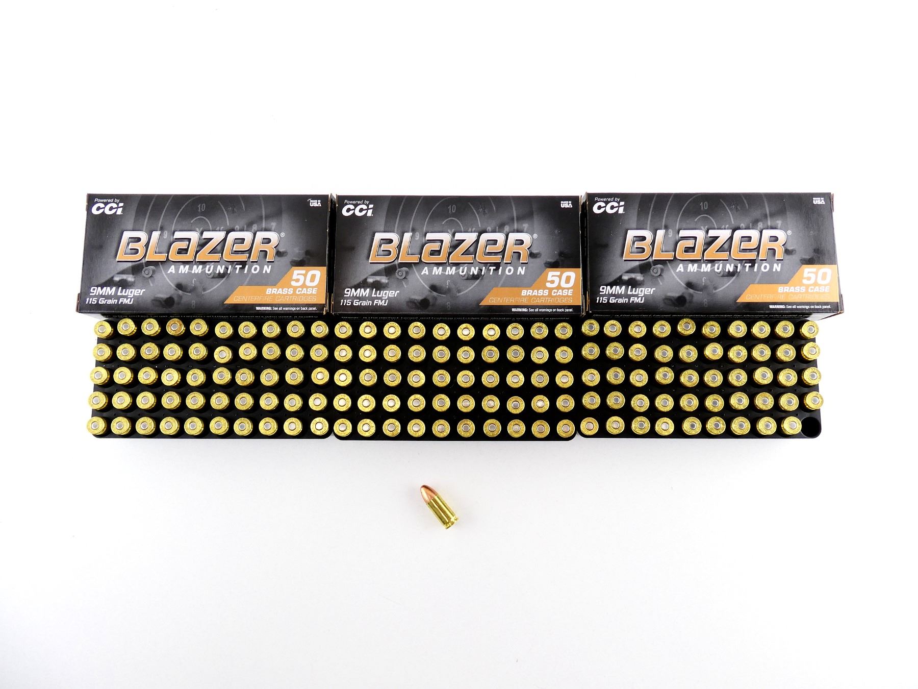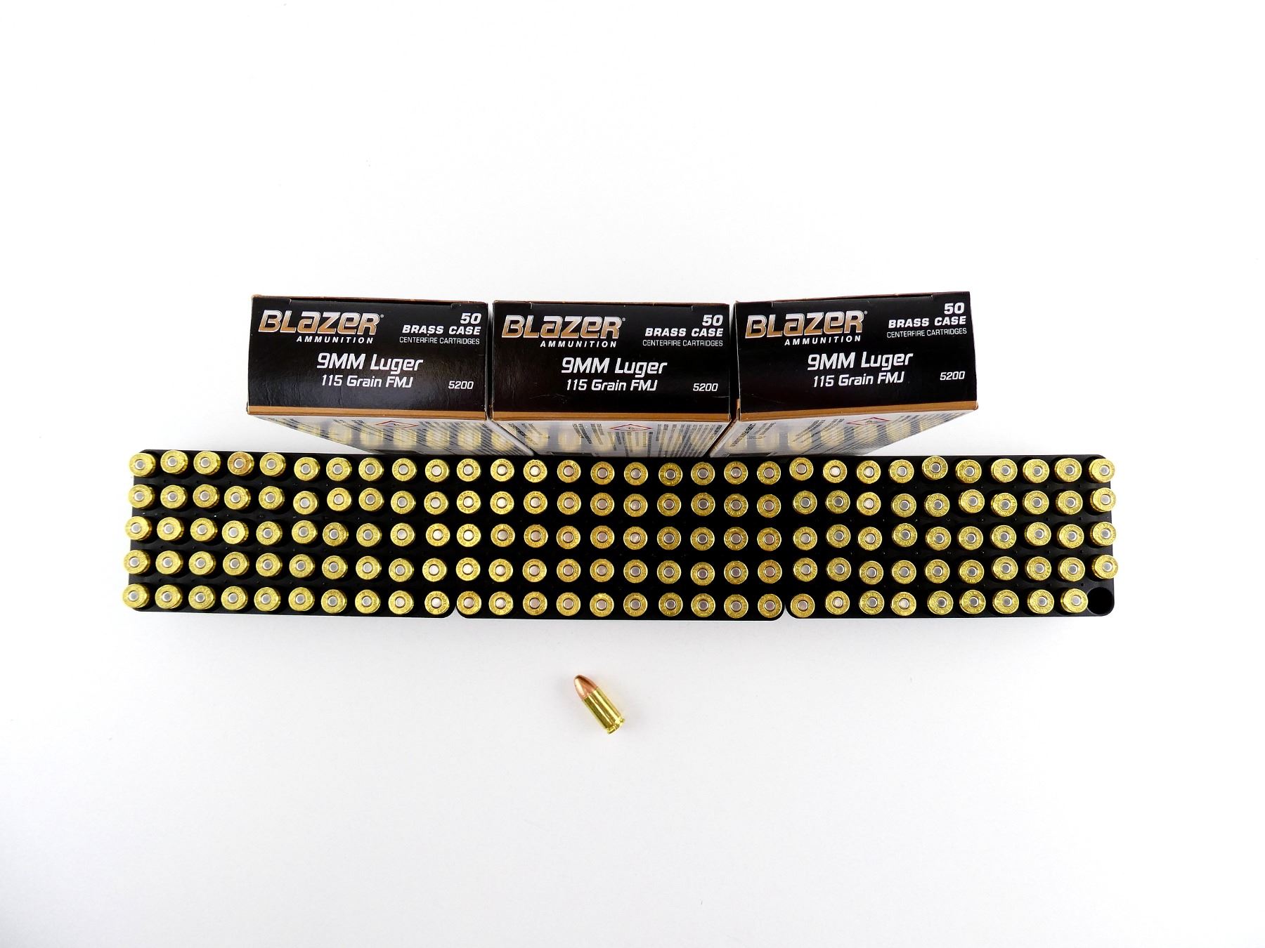 LOT INCLUDES; APPROX. (150) RNDS, 115 GRNS (STATED ON BOXES NOT CONFIRMED), FMJ.