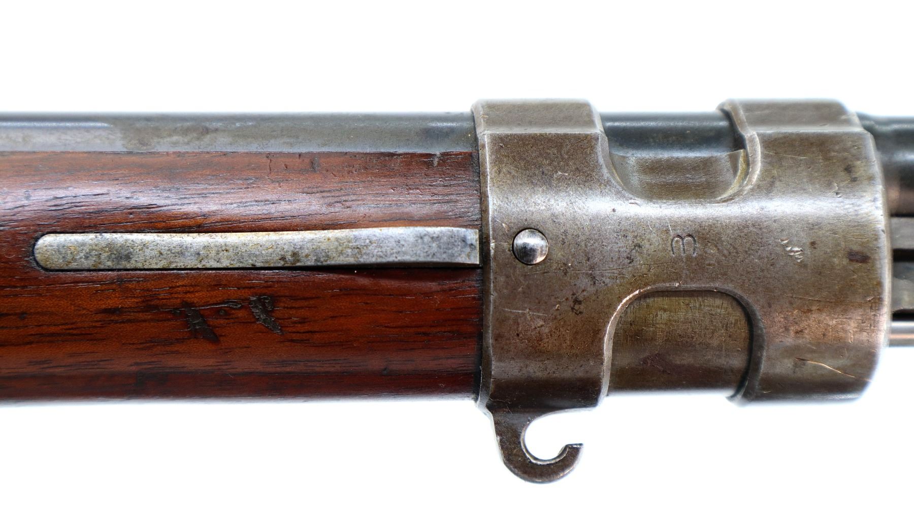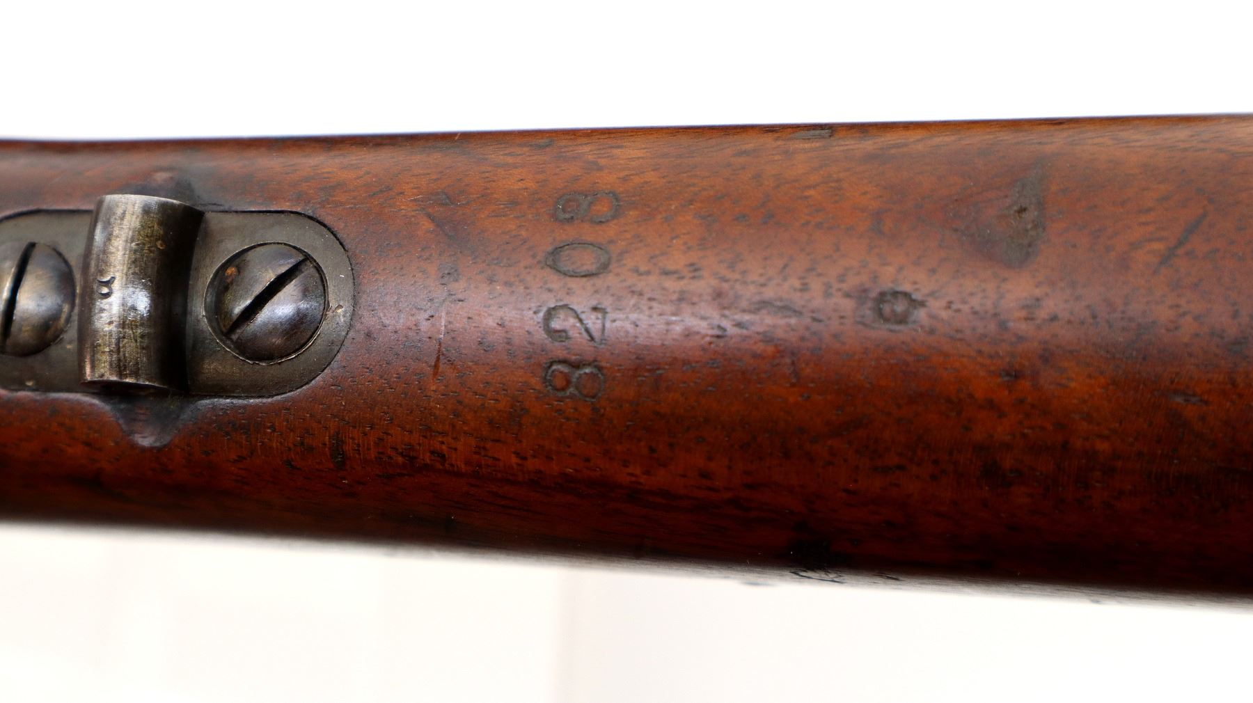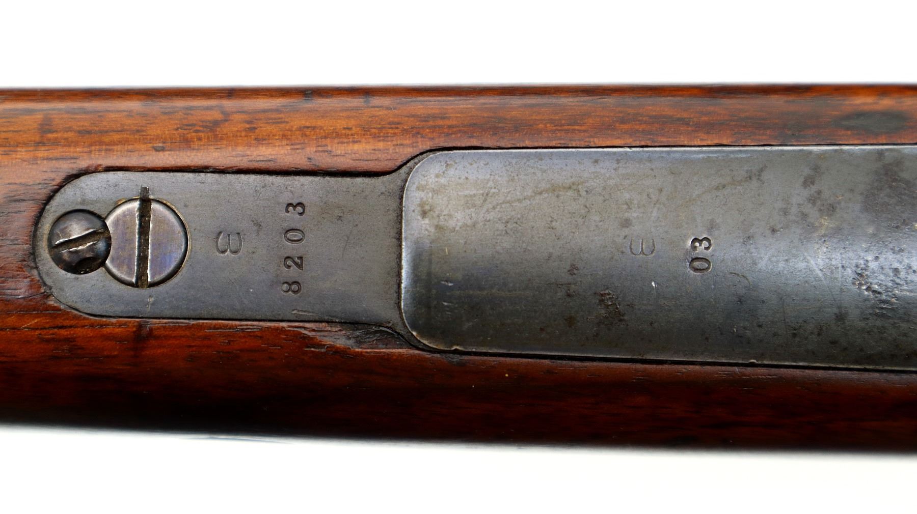 Wear: Metal finish shows some light rust speckles, scratches, handling marks and wear. Stocks show some marks, scratches and wear.