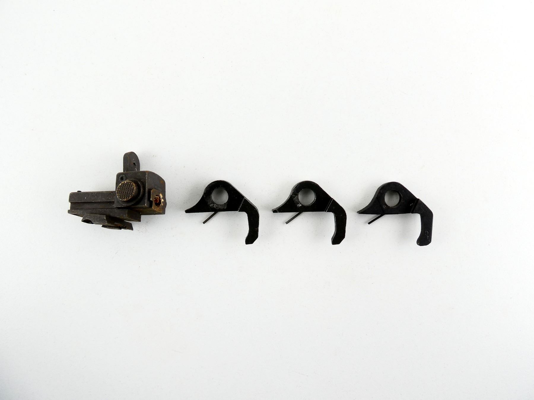 LOT INCLUDES; (1) FOLDING REAR SIGHT, (3) SAFETY SEARS, ETC. MAY REQUIRE FITTING. SEE PHOTOS.