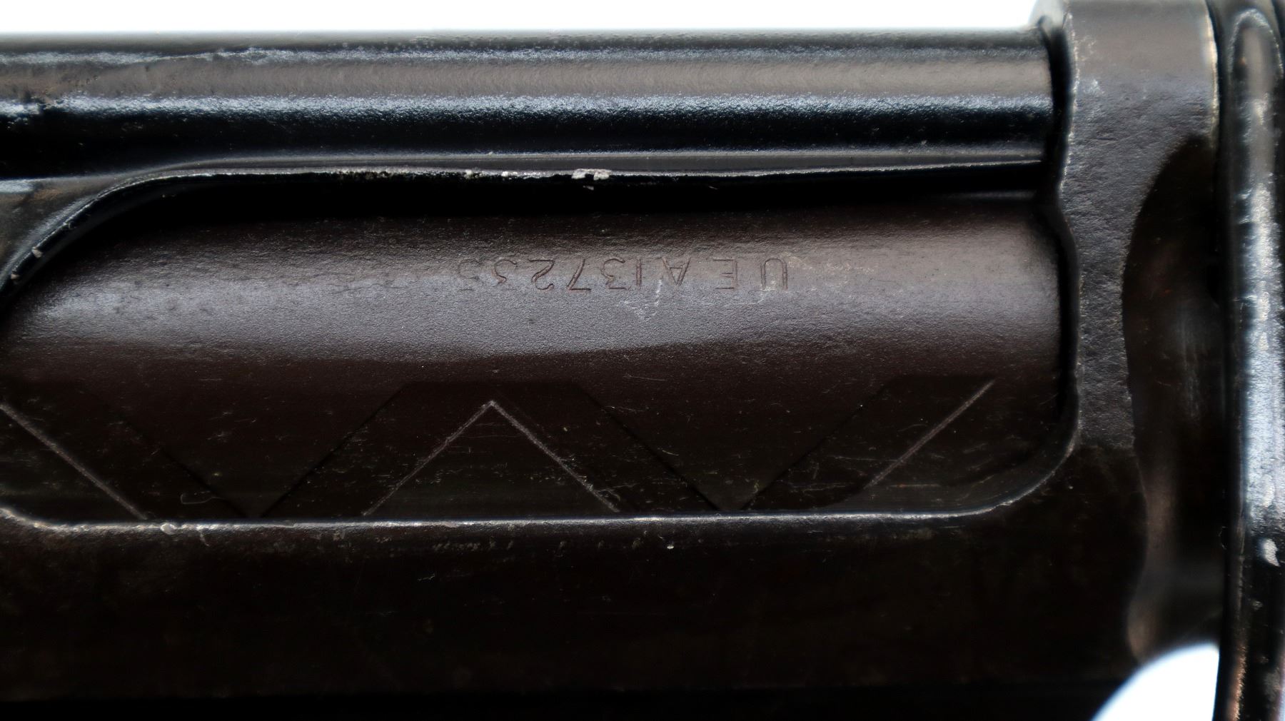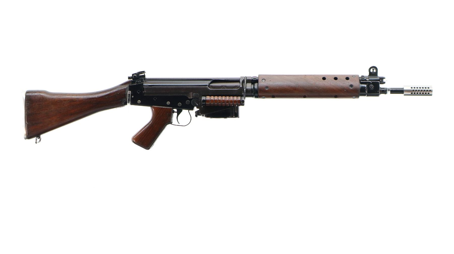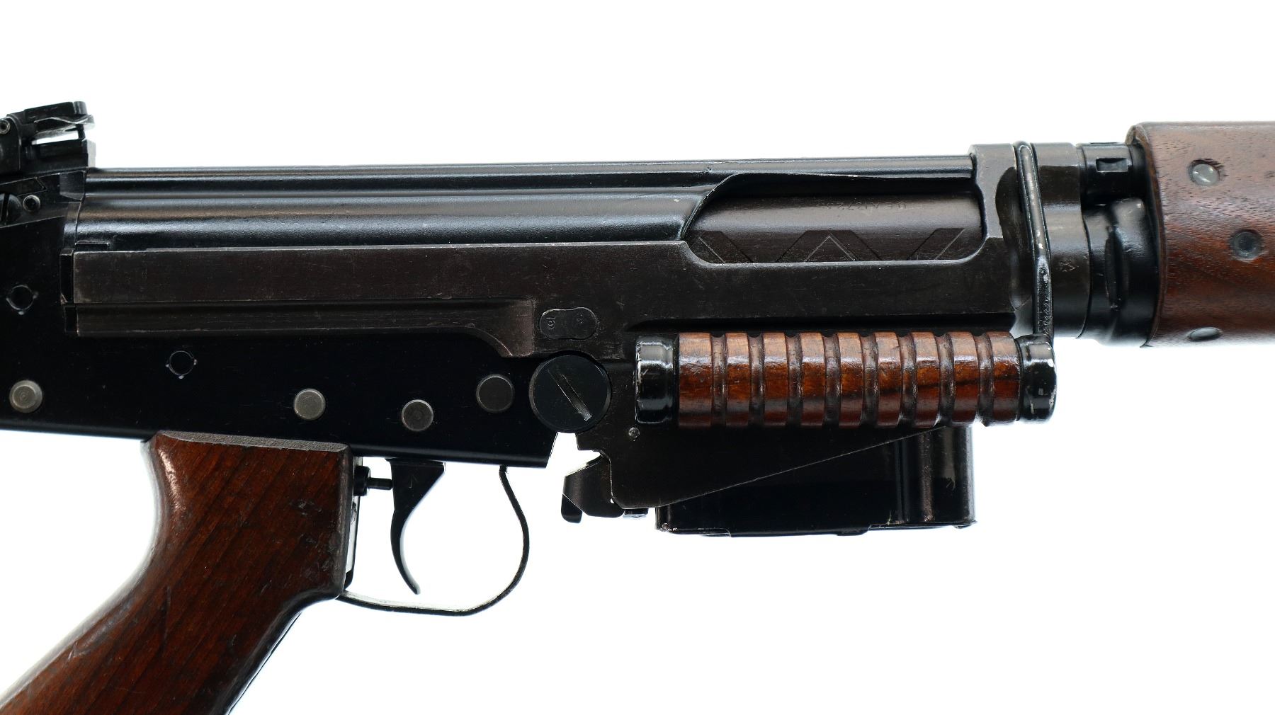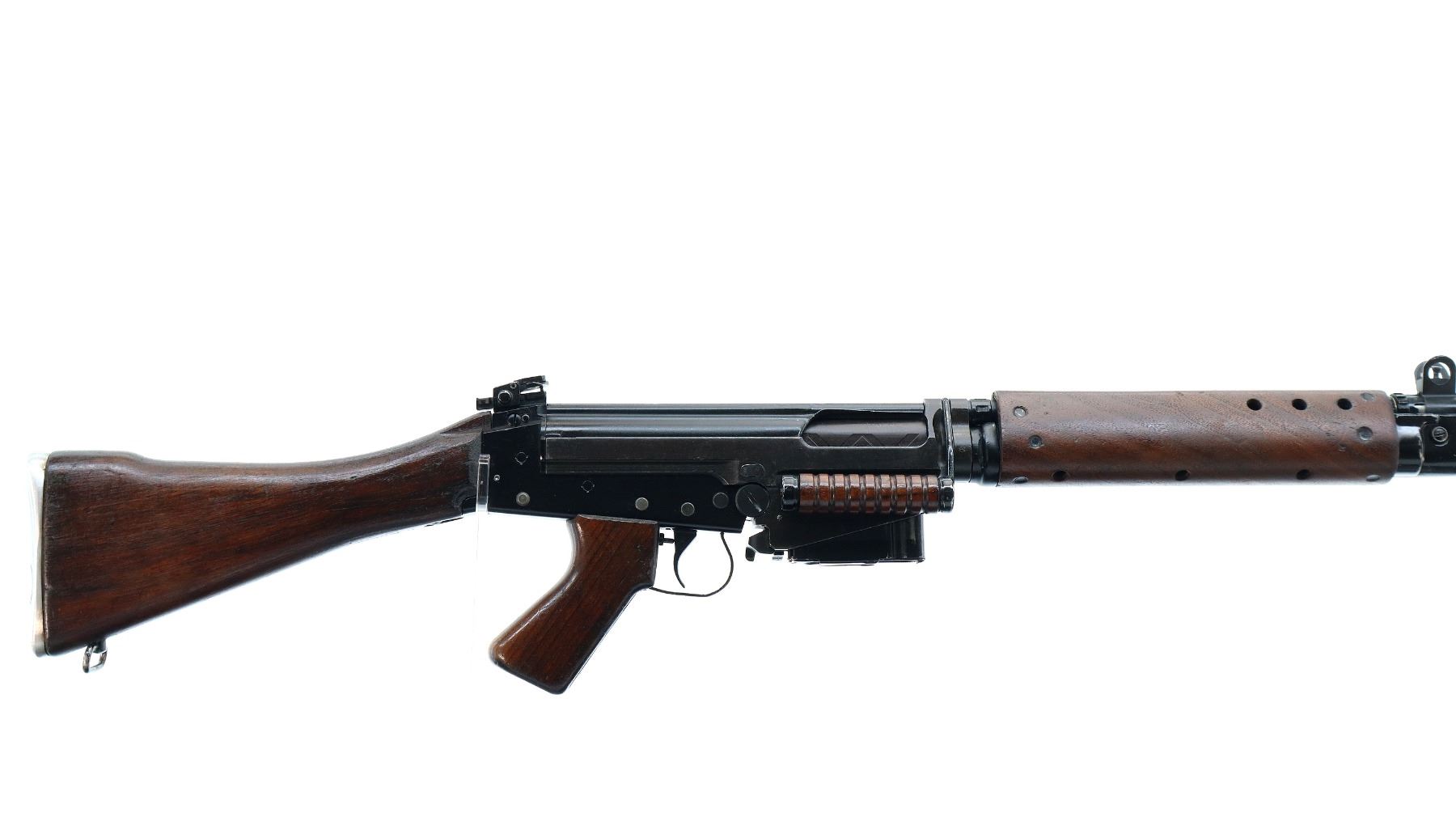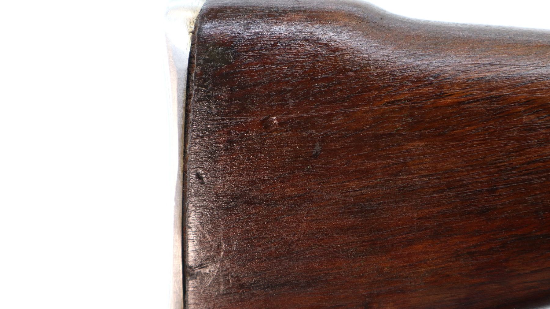 Main Description: Canadian 12-5 Prohibited, PAL with 12-5 Class Required. If you don’t have this class of license and would like this item deactivated, it can be done for an additional fee of $250.00. Manufactured by Enfield 1957, numbers mismatched. Blade front sight with ears and ramp, adjustable folding rear peep sight, black painted metal finish, shortened barrel with attached folding break, left side cocking handle. Four piece full military wood stocks, ventilated handguards, pistol grip, smooth alloy butt plate with trap, rear sling swivel only.