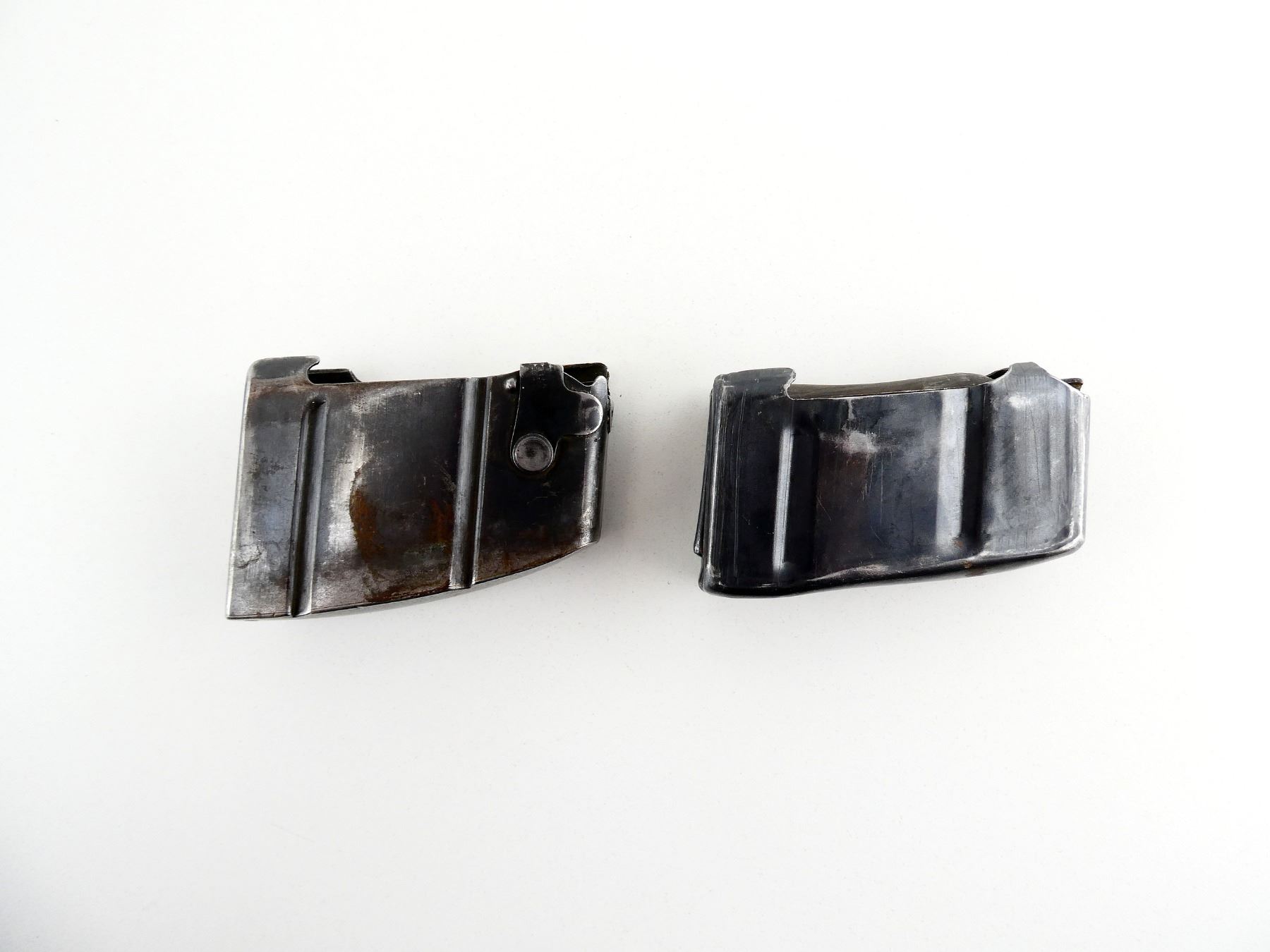 LOT INCLUDES; (1) NO.1 MKI .303 BR MAG, 4 RNDS, BLUED STEEL CONSTRUCTION, FEED LIP BROKEN, UNMARKED & (1) NO.1 MKIII .303 BR SHORTENED MAG, 4 RNDS, BLUED STEEL CONSTRUCTION, MARKED: "MADE IN ENGLAND". SEE PHOTOS. PAL REQUIRED.