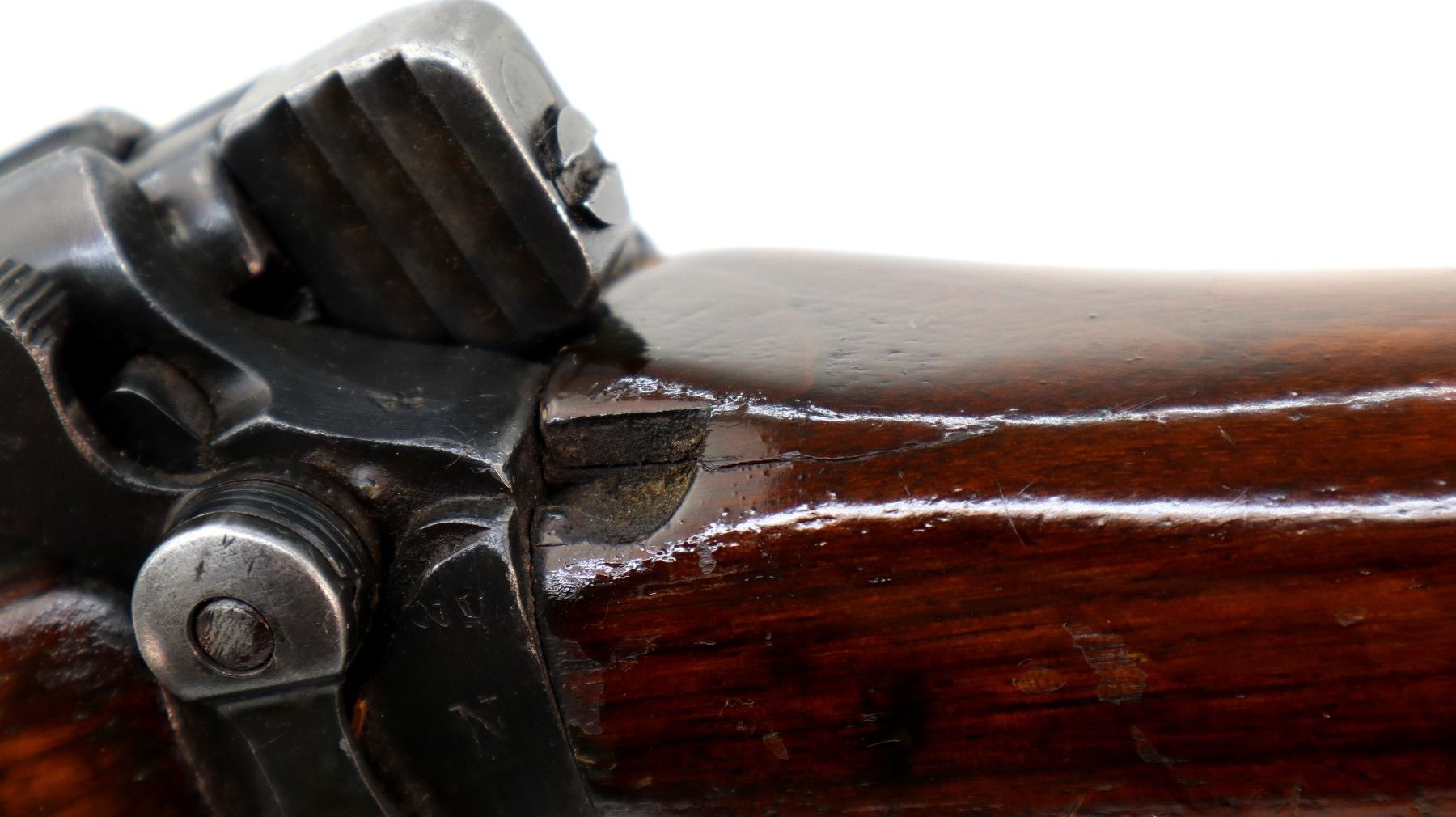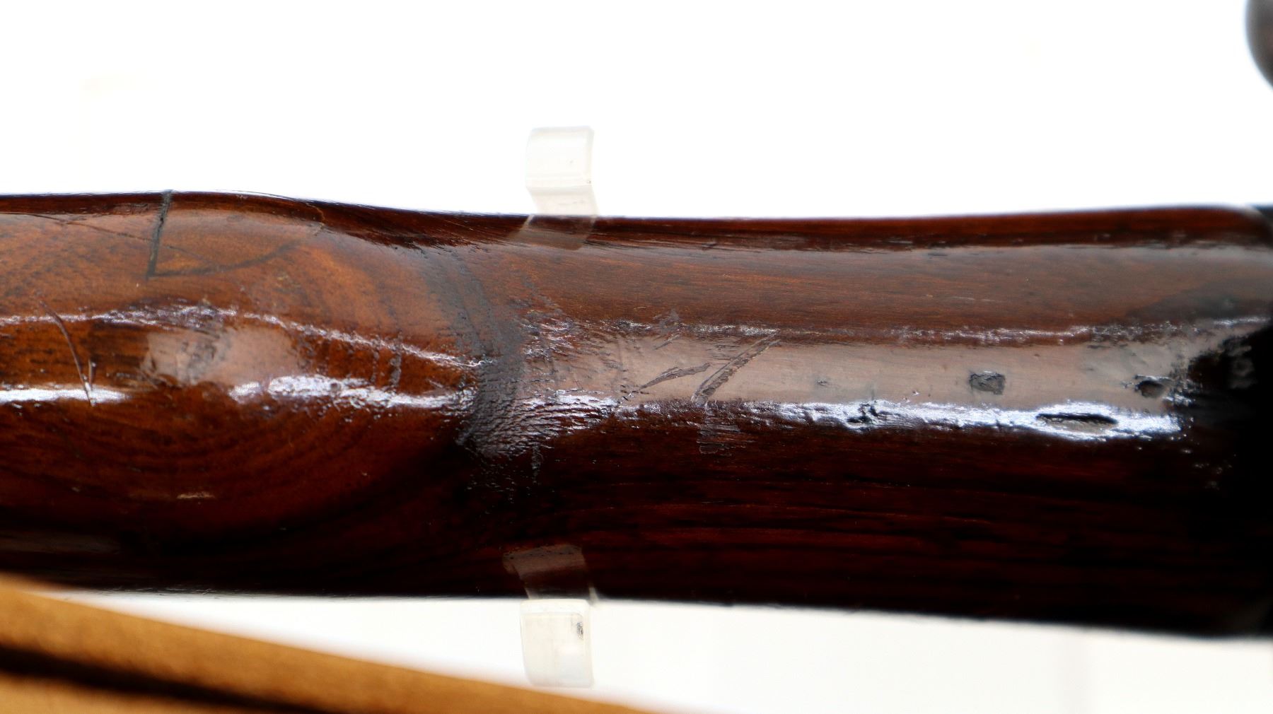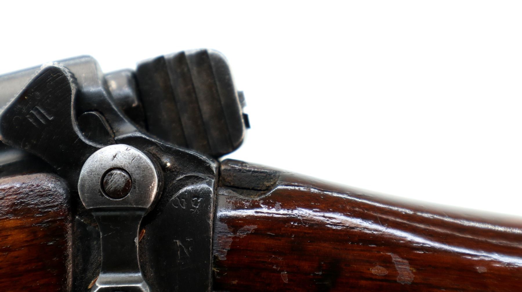 Wear: Metal finish shows some pitted spots, scratches, handling marks and wear. Stocks show some marks, scratches and wear.