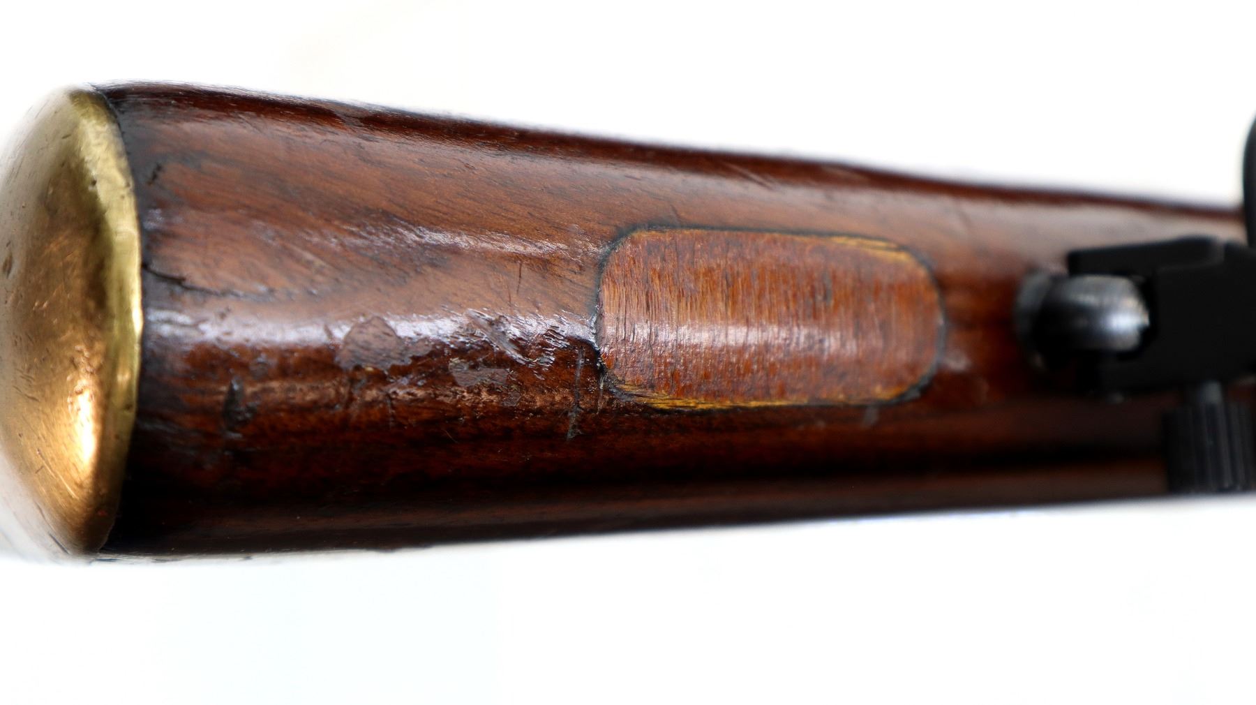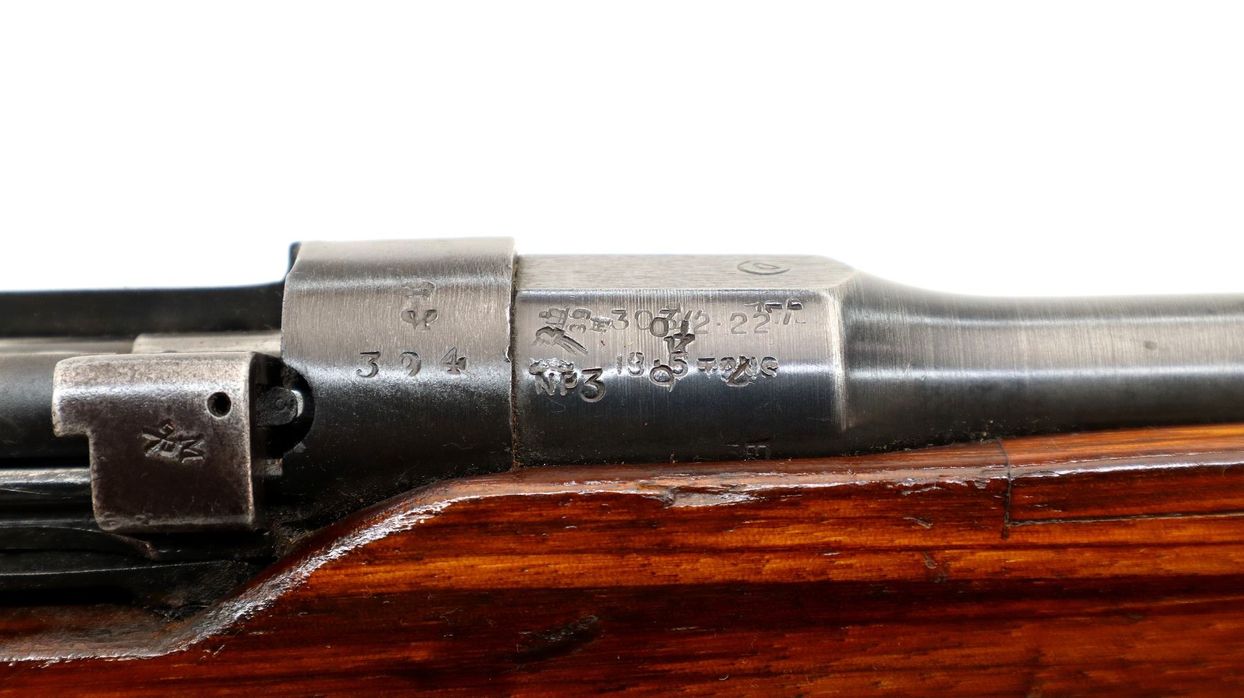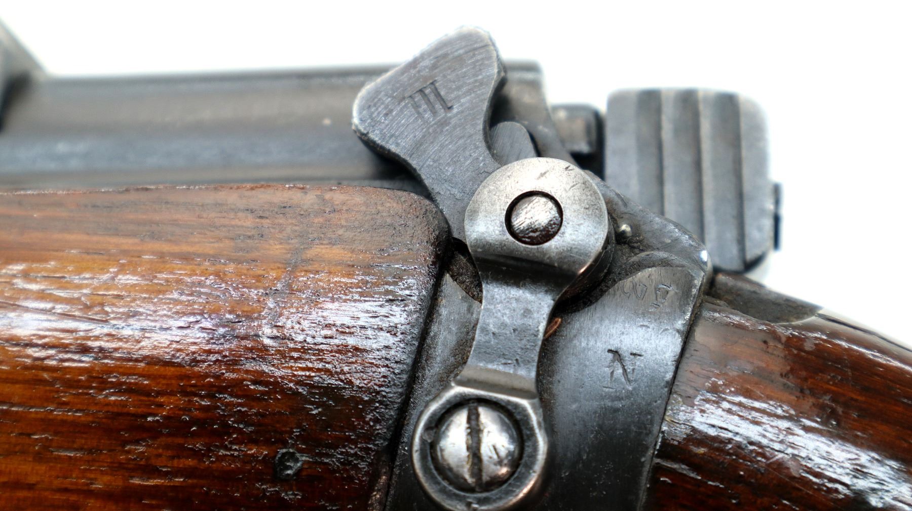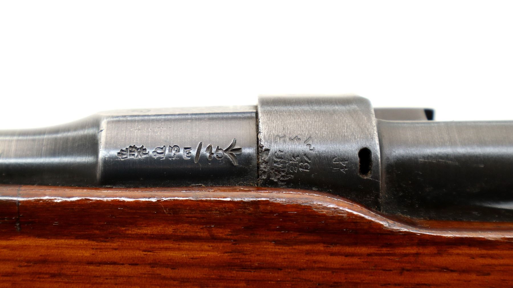 Wear: Metal finish shows some pitted spots, scratches, handling marks and wear. Stocks show some marks, scratches and wear.