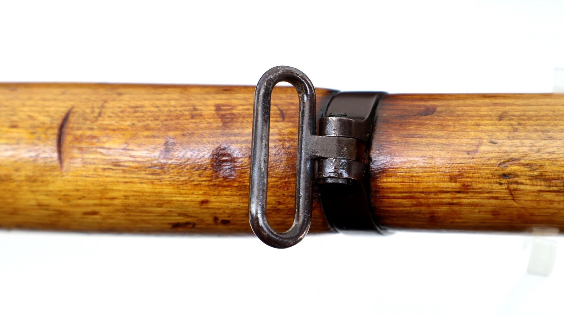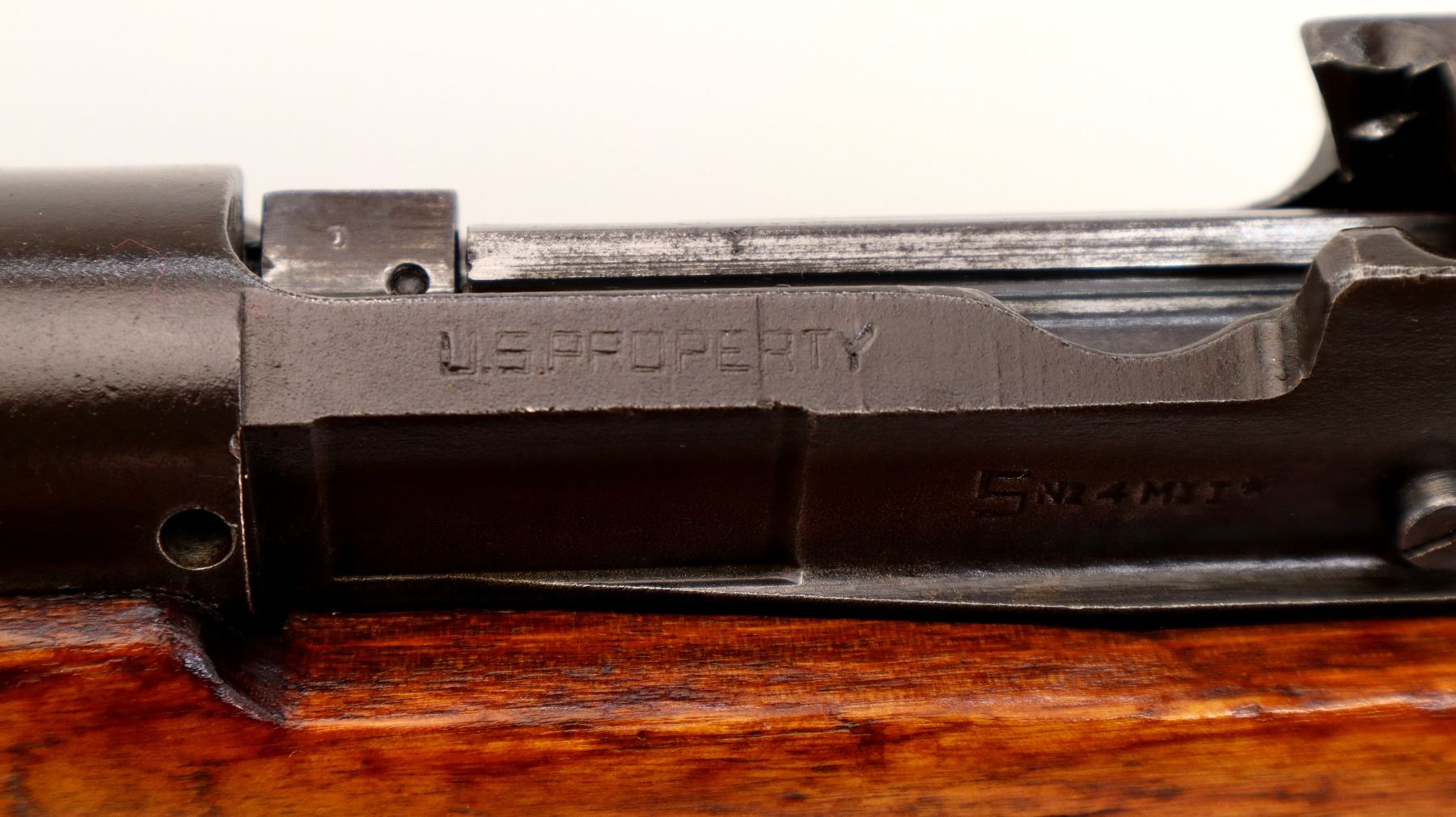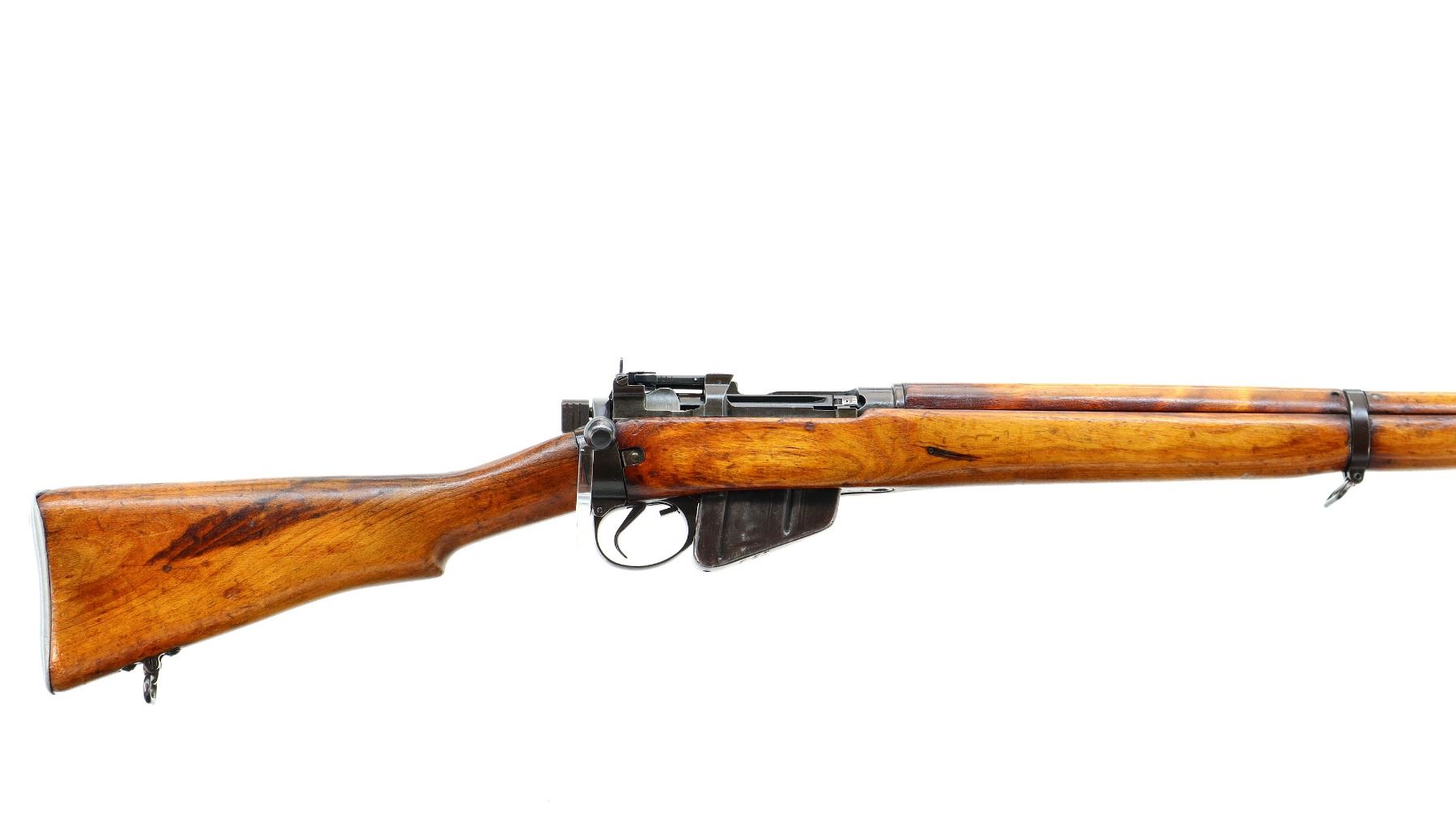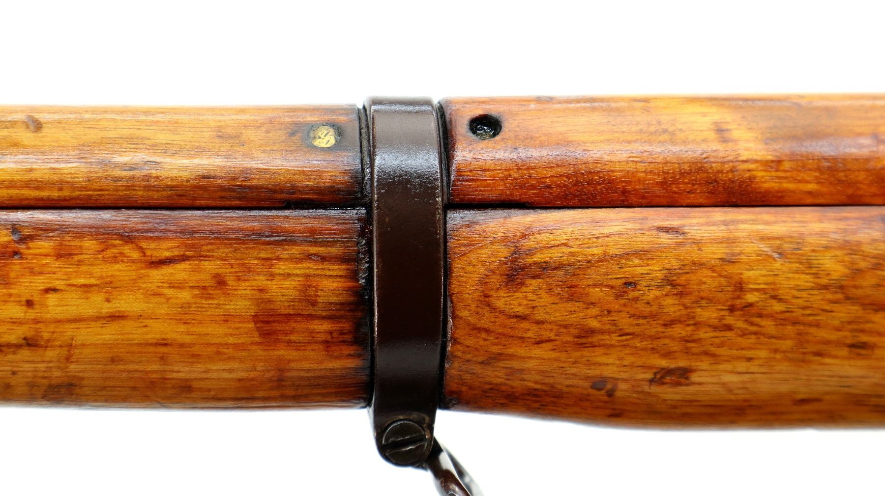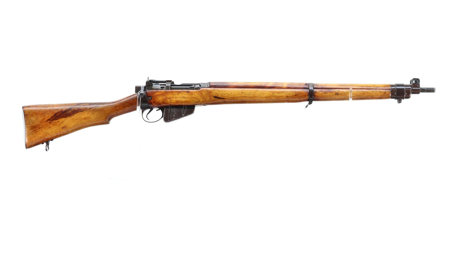 Main Description: Manufactured by Savage, bolt and forend match magazine does not. Blade front sight with ears and ramp, adjustable stamped rear peep sight, receiver marked US Property. Four piece full military wood stocks, forearm has Ishapore screw, pistol grip, smooth grey alloy butt plate with trap, sling swivels, bayonet lug.