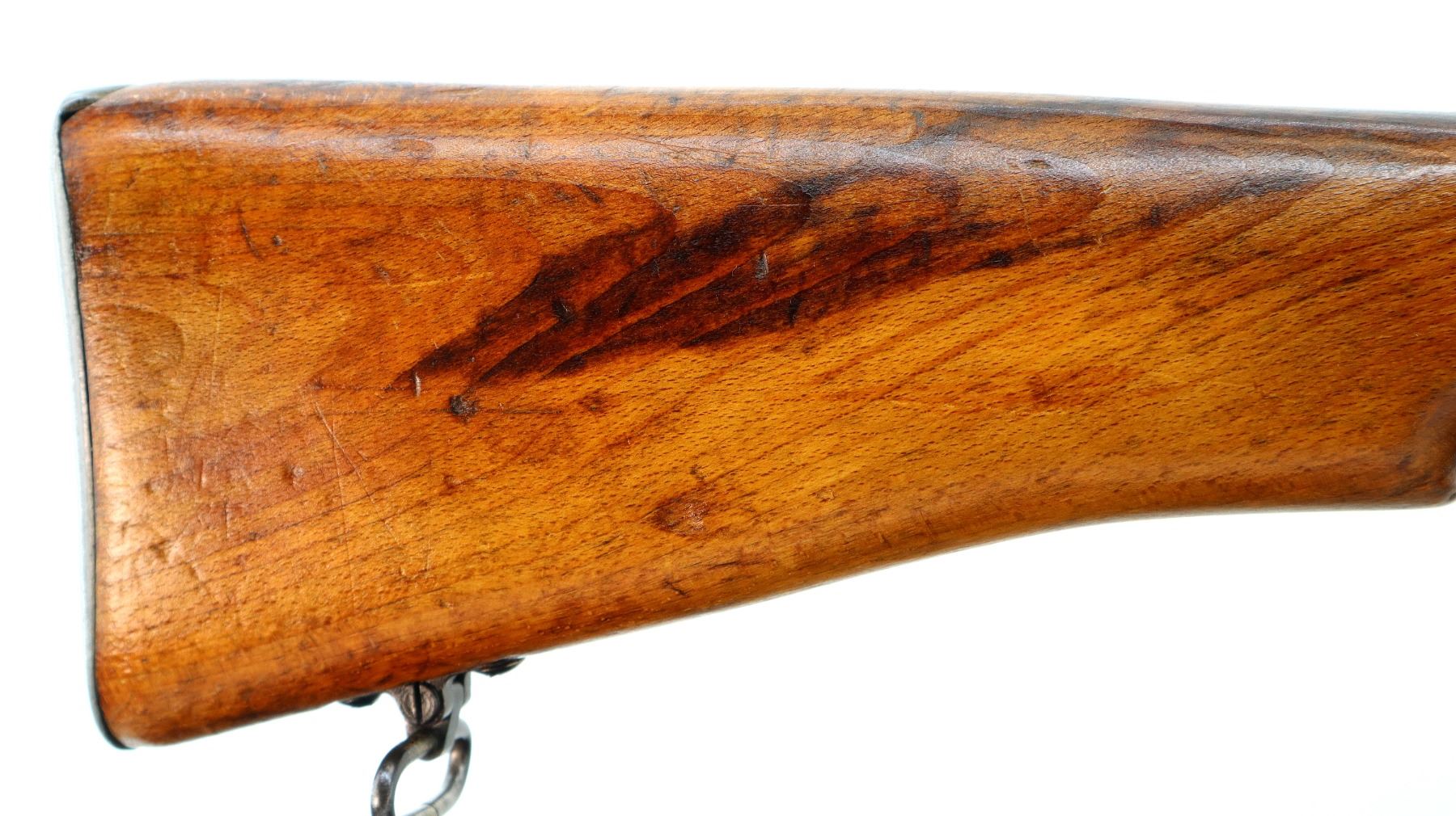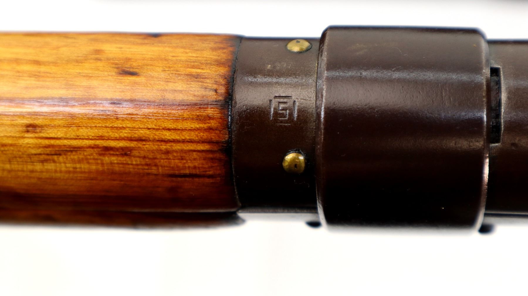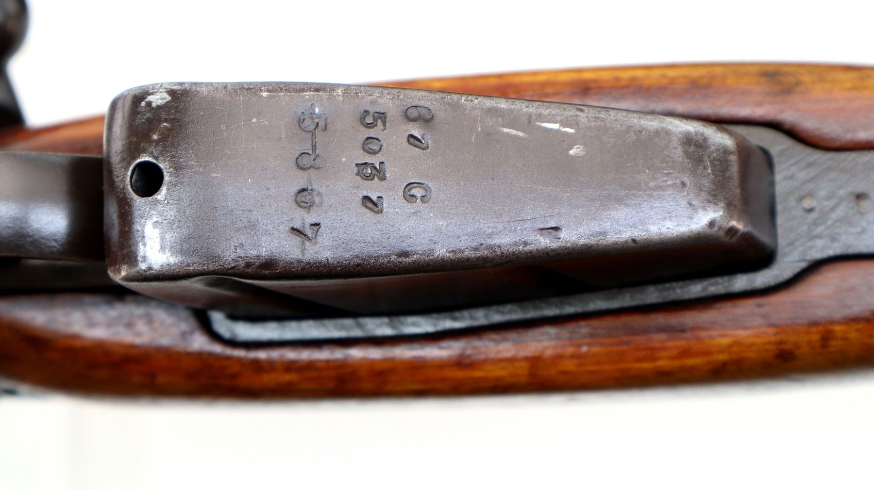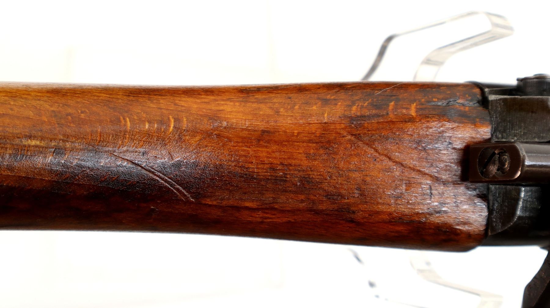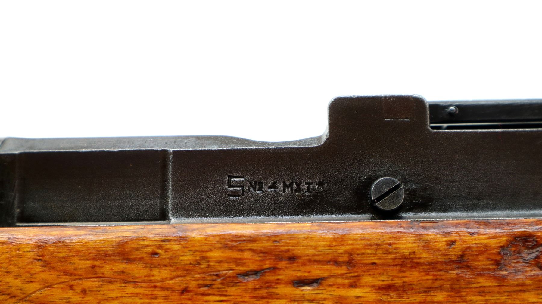 Main Description: Manufactured by Savage, bolt and forend match magazine does not. Blade front sight with ears and ramp, adjustable stamped rear peep sight, receiver marked US Property. Four piece full military wood stocks, forearm has Ishapore screw, pistol grip, smooth grey alloy butt plate with trap, sling swivels, bayonet lug.