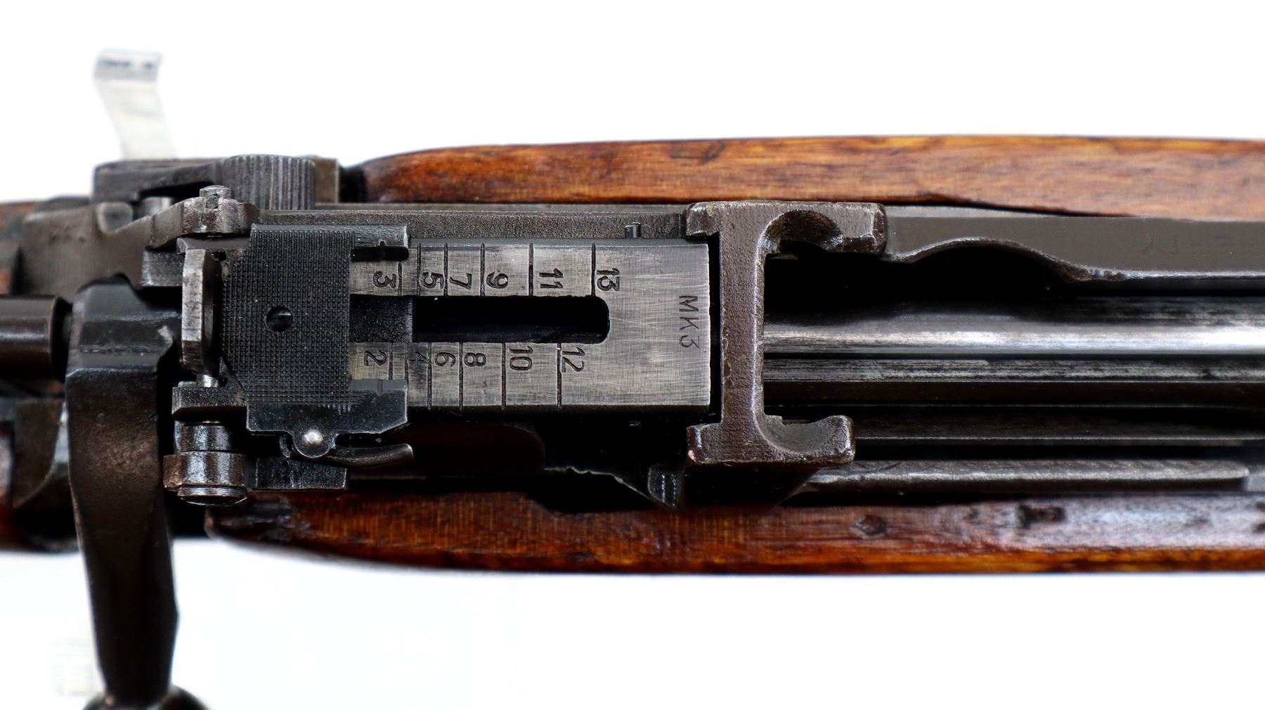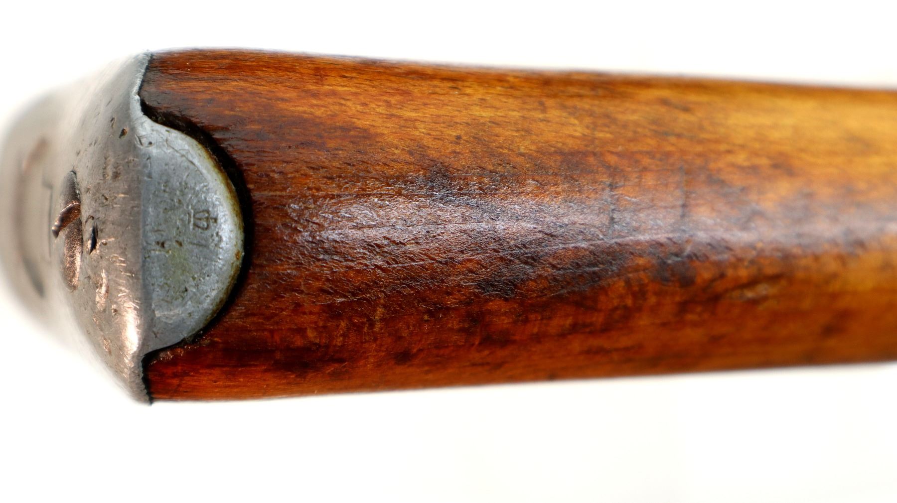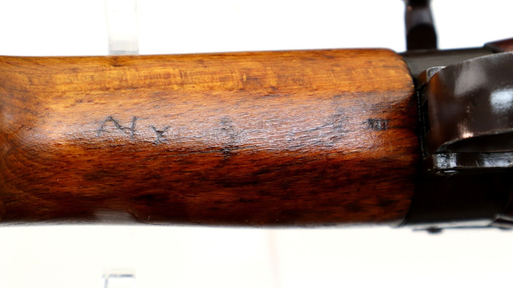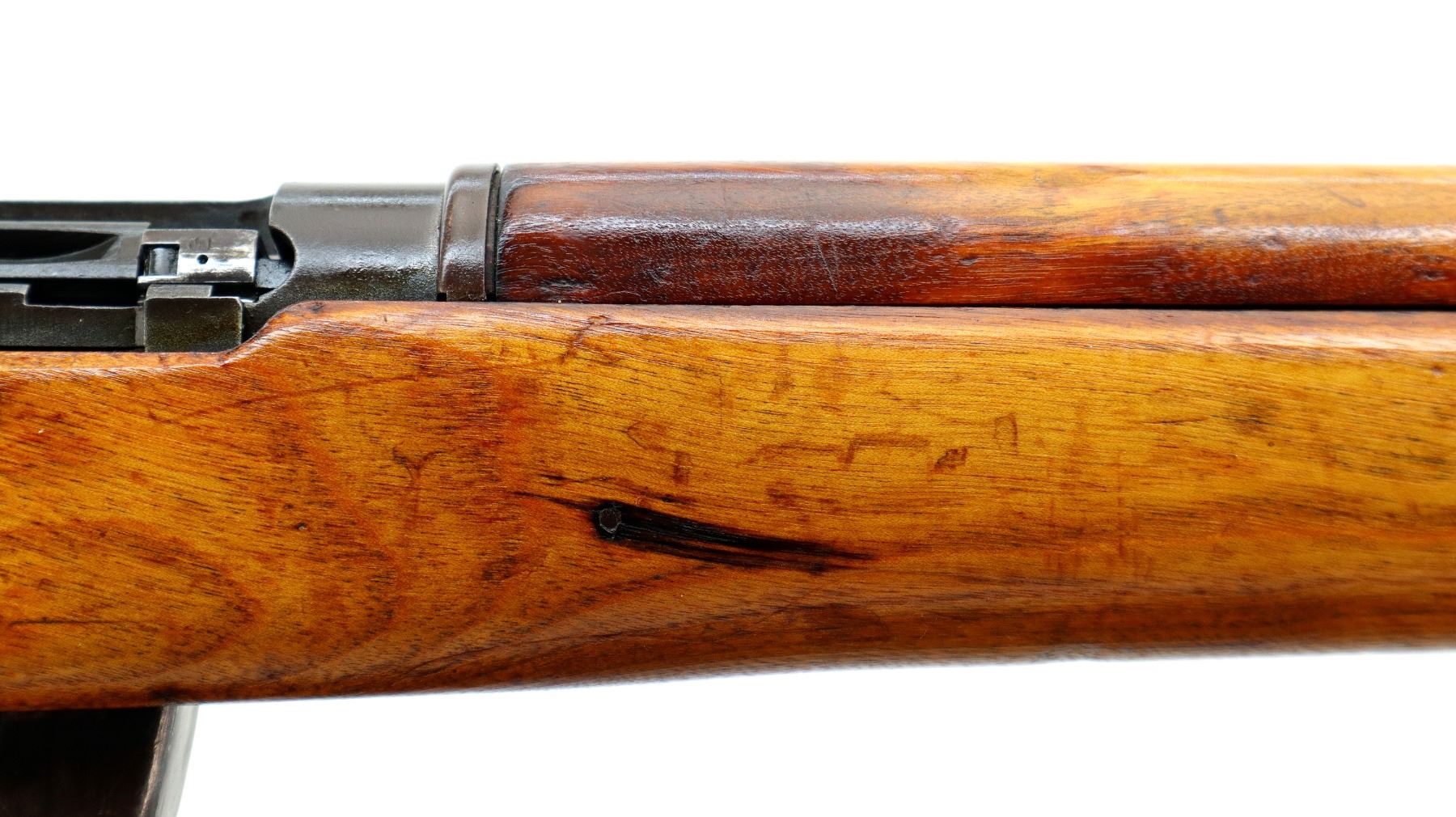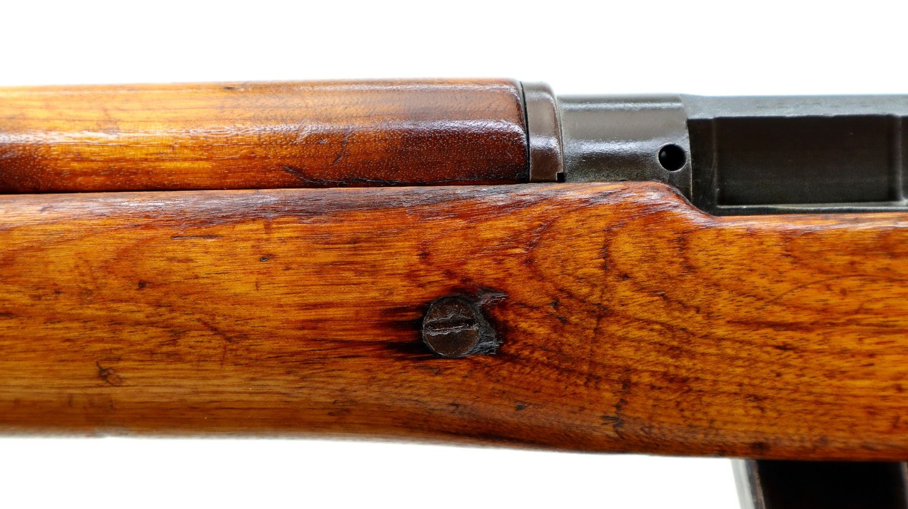 Main Description: Manufactured by Savage, bolt and forend match magazine does not. Blade front sight with ears and ramp, adjustable stamped rear peep sight, receiver marked US Property. Four piece full military wood stocks, forearm has Ishapore screw, pistol grip, smooth grey alloy butt plate with trap, sling swivels, bayonet lug.