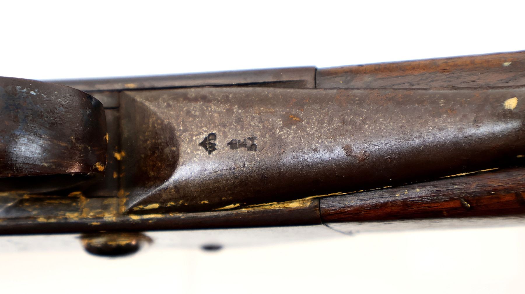 Wear: Metal finish turning brown with pitting, light rust speckles, scratches, handling marks and wear. Stocks show some marks, scratches and wear.