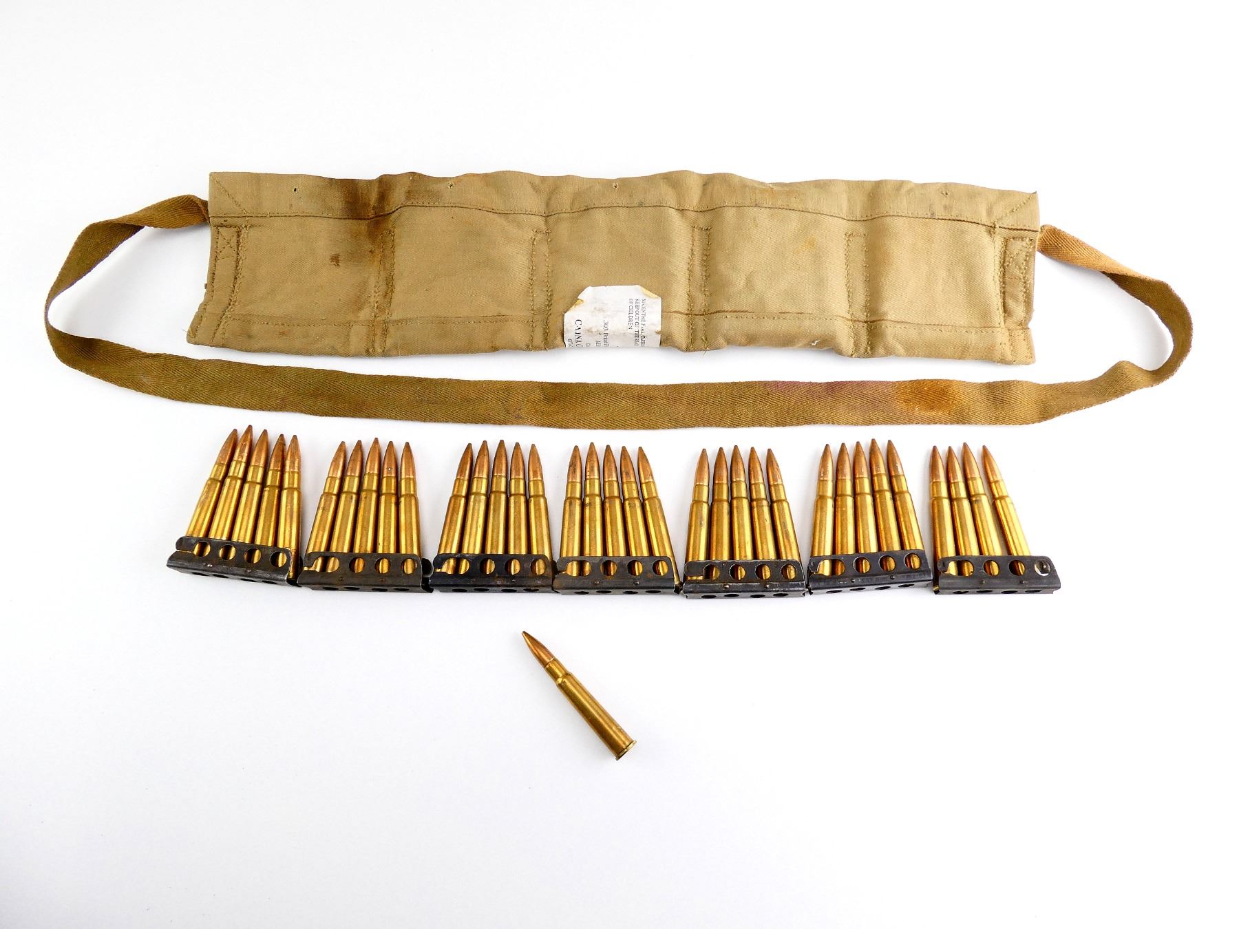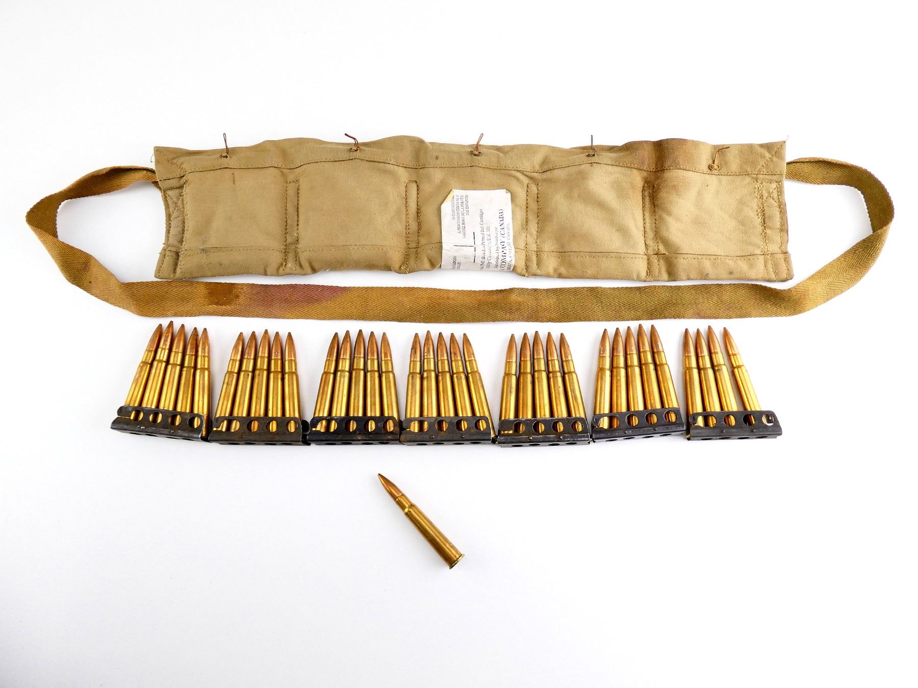 LOT INCLUDES; APPROX. (36) RNDS, FMJ, BERDAN PRIMED, MILDLY CORROSIVE, (7) STRIPPER CLIPS, DATED 7 50, (1) BANDOLIER.
