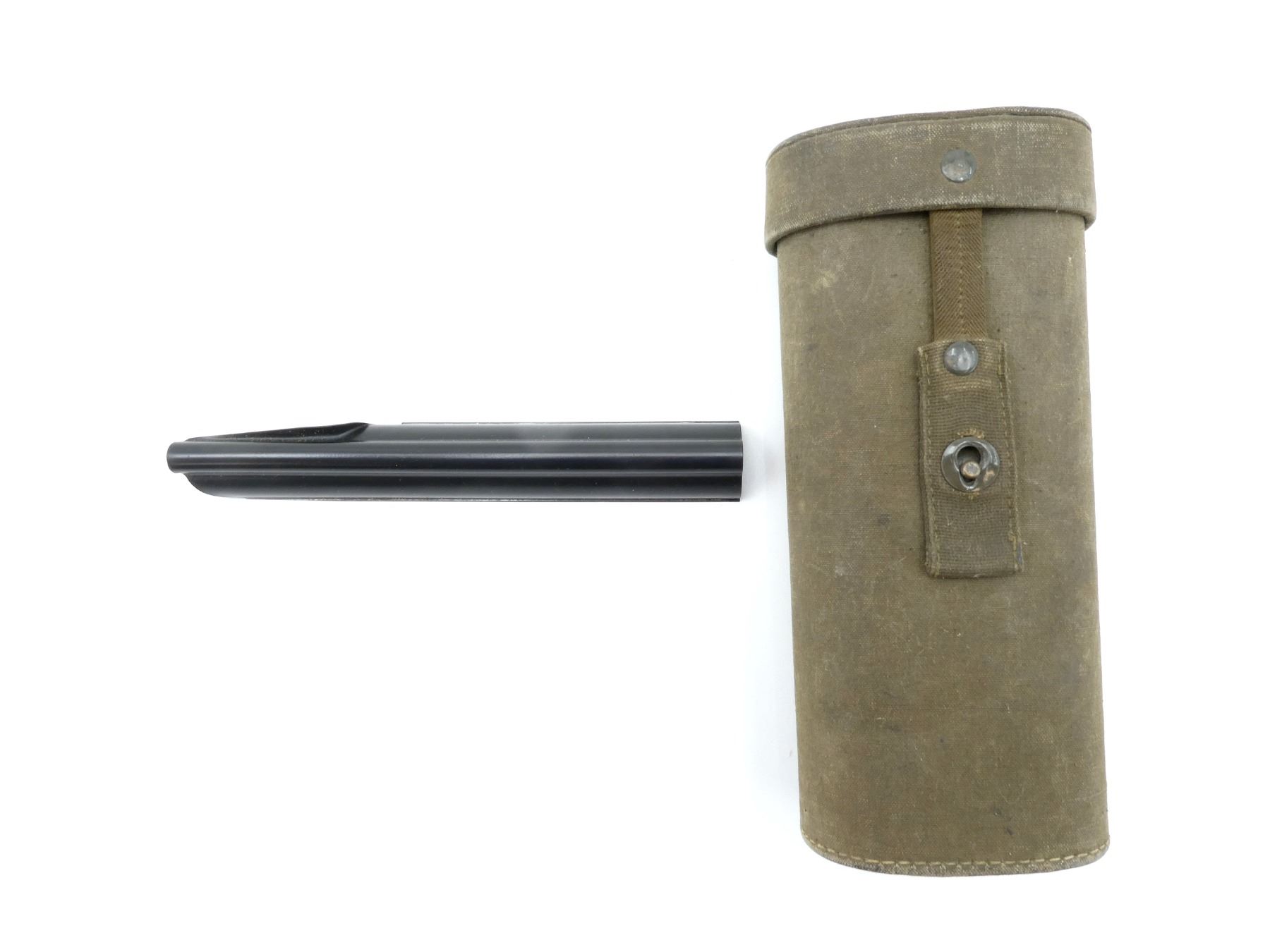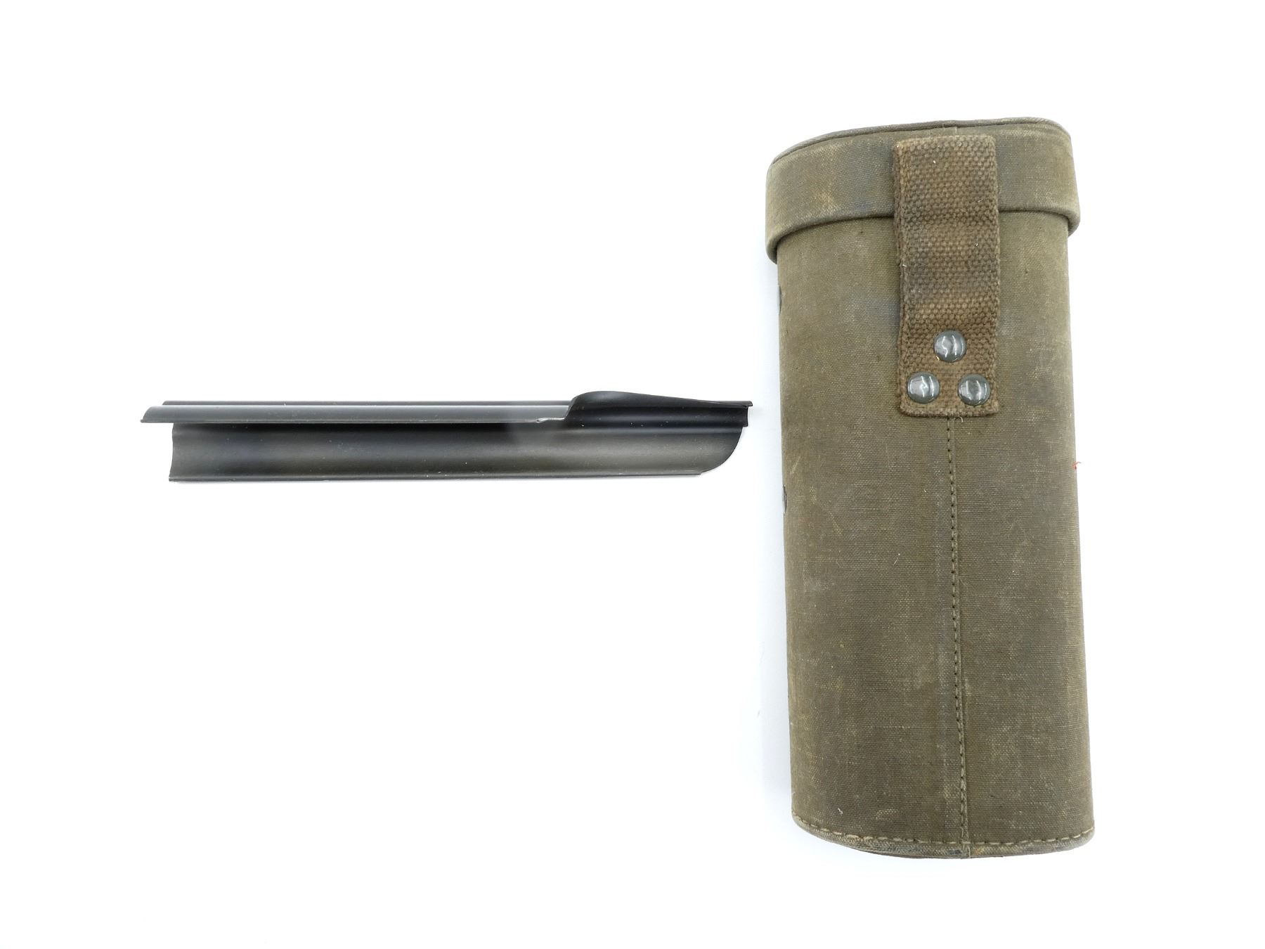 LOT INCLUDES; (1) GREEN CANVAS FN FAL L1A1 SCOPE CASE (NO SCOPE), LID MARKED: "83810", BELT LOOP, STRAP CLOSURE, SHOWS AGE / WEAR, OVERALL LENGTH APPROX. 9.5" & (1) STANDARD FN FAL L1A1 RIFLE COVER, BLACK PAINTED STEEL, NO VISIBLE MARKINGS, OVERALL LENGTH APPROX. 8.75". SEE PHOTOS.