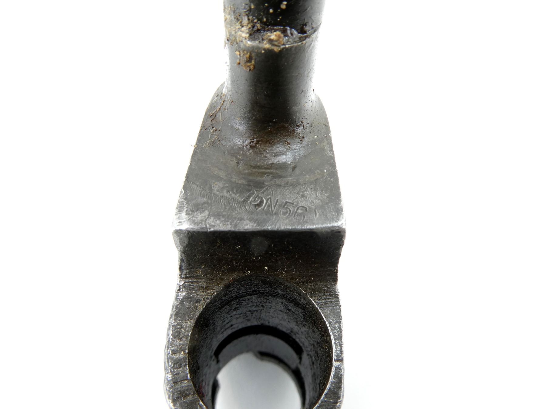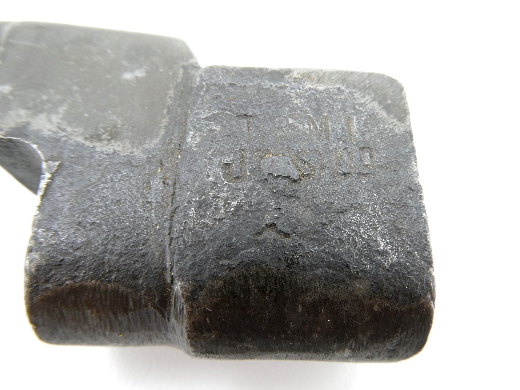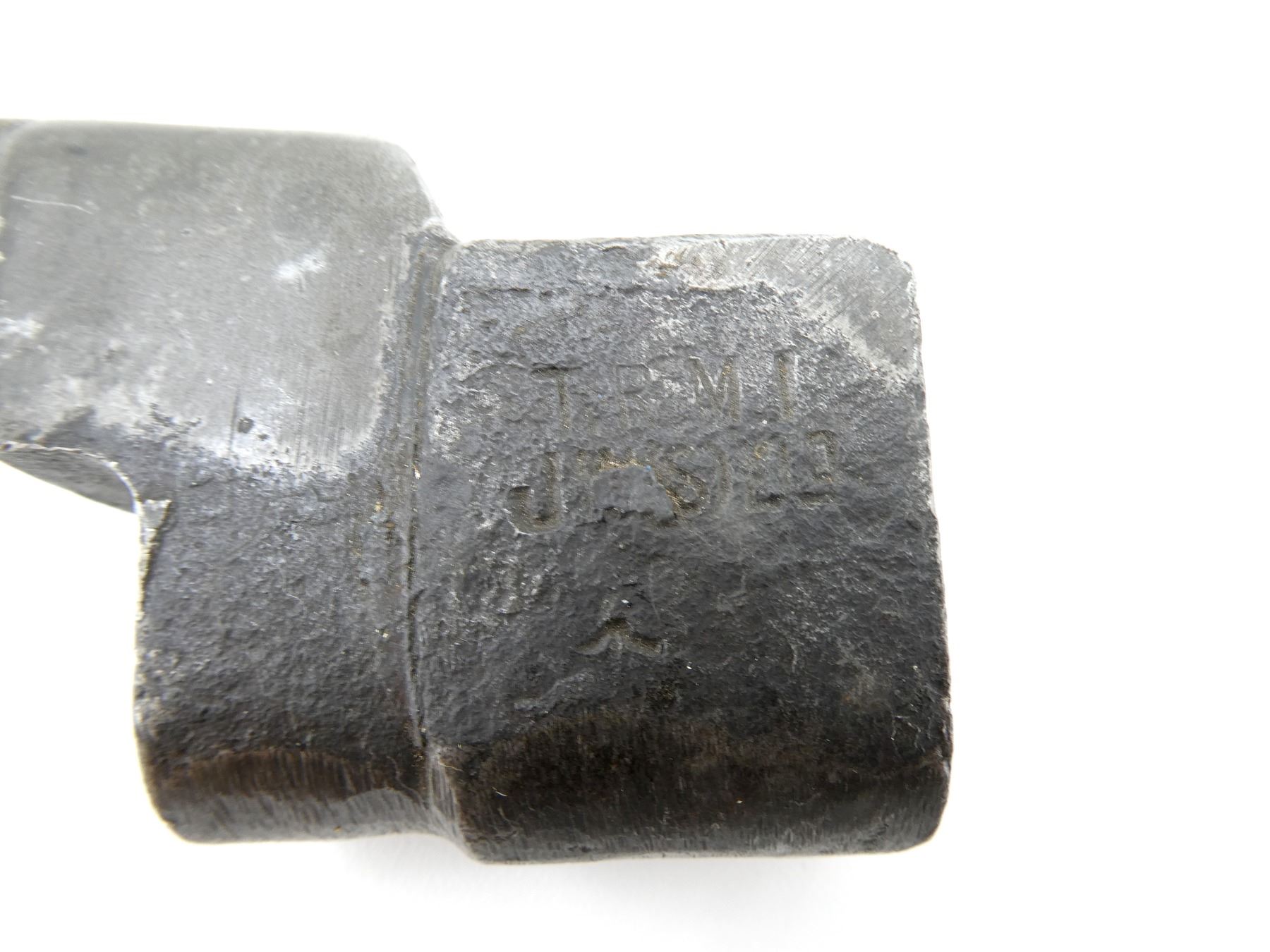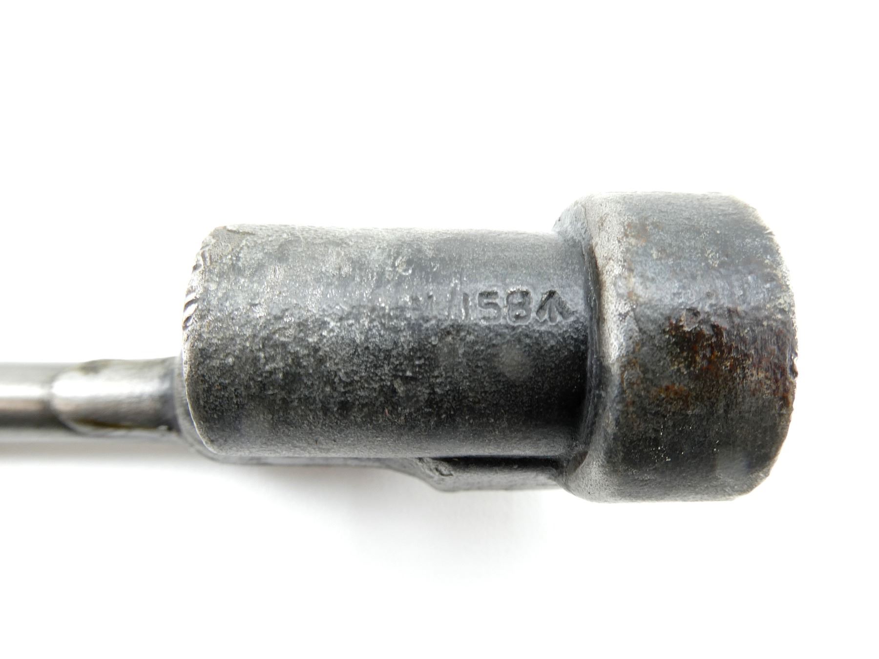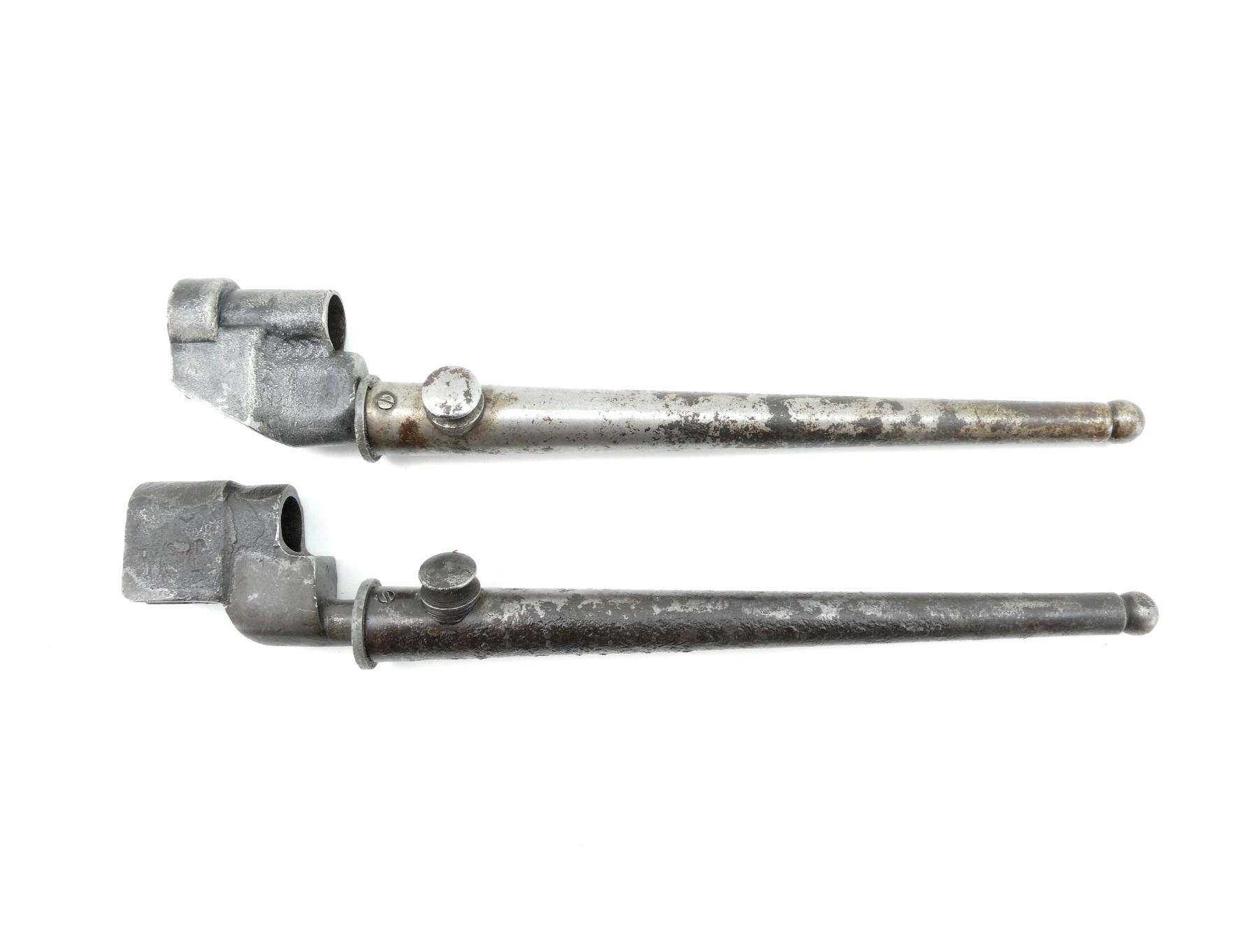 LOT INCLUDES; (1) NO.4 MKII* SPIKE BAYONET, FITS LEE ENFIELD NO.4 MKI & MKII SERIES RIFLES, CATCH RELEASE IS STUCK, SOCKET MARKED: "T.R.M. 1, JW(S) LTD", "?N56" IN A CIRCLE, FAINT BROAD ARROW, "SM, 42", METAL MKI SCABBARD, MARKED: "NO4 MK1. S.286, V" WITH BROAD ARROW, BLADE APPROX. 8", OVERALL LENGTH APPROX. 10" & (1) NO.4 MKIII SPIKE BAYONET, FITS LEE ENFIELD NO.4 MKI & MKII SERIES RIFLES, CATCH RELEASE IS STUCK, SOCKET MARKED: "M/158" WITH BROAD ARROW, PARTIAL MARKING IN A SQUARED SHAPE ON SPIKE, METAL MKI SCABBARD, BALL TIP MARKED WITH BROAD ARROW, BLADE APPROX. 8" & OVERALL LENGTH APPROX. 10". SEE PHOTOS.
