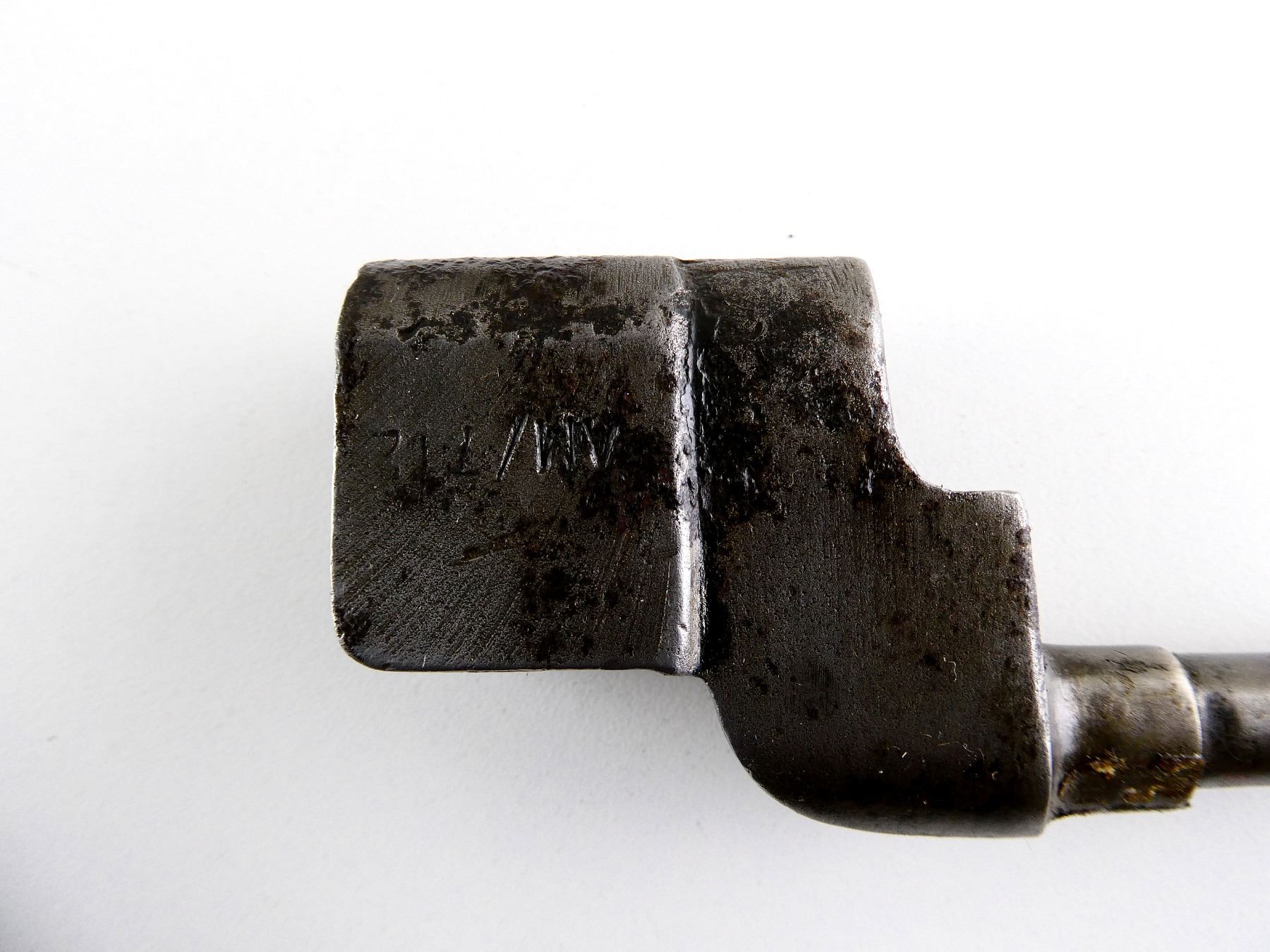 LOT INCLUDES; (1) NO.4 MKII* SPIKE BAYONET, FITS LEE ENFIELD NO.4 MKI & MKII SERIES RIFLES, CATCH RELEASE IS STUCK, SOCKET MARKED: "NO4MK II*, P.S. & S.LTD", BROAD ARROW, "AM/712", "N56" IN A CIRCLE, METAL MKI SCABBARD, THROAT MARKED: "NO 4 MKI", BROAD ARROW, "SSP, 1940", BLADE APPROX. 8", OVERALL LENGTH APPROX. 9 7/8" & (1) NO.4 MKII* SPIKE BAYONET, FITS LEE ENFIELD NO.4 MKI & MKII SERIES RIFLES, CATCH RELEASE IS STUCK, SOCKET MARKED: "NO4MKII*, P.S.K.", BROAD ARROW, "N57", VARIOUS OTHER FAINT PROOF MARKS, METAL MKI SCABBARD, NO VISIBLE MARKINGS, BLADE APPROX. 8" & OVERALL LENGTH APPROX. 9 7/8". SEE PHOTOS.