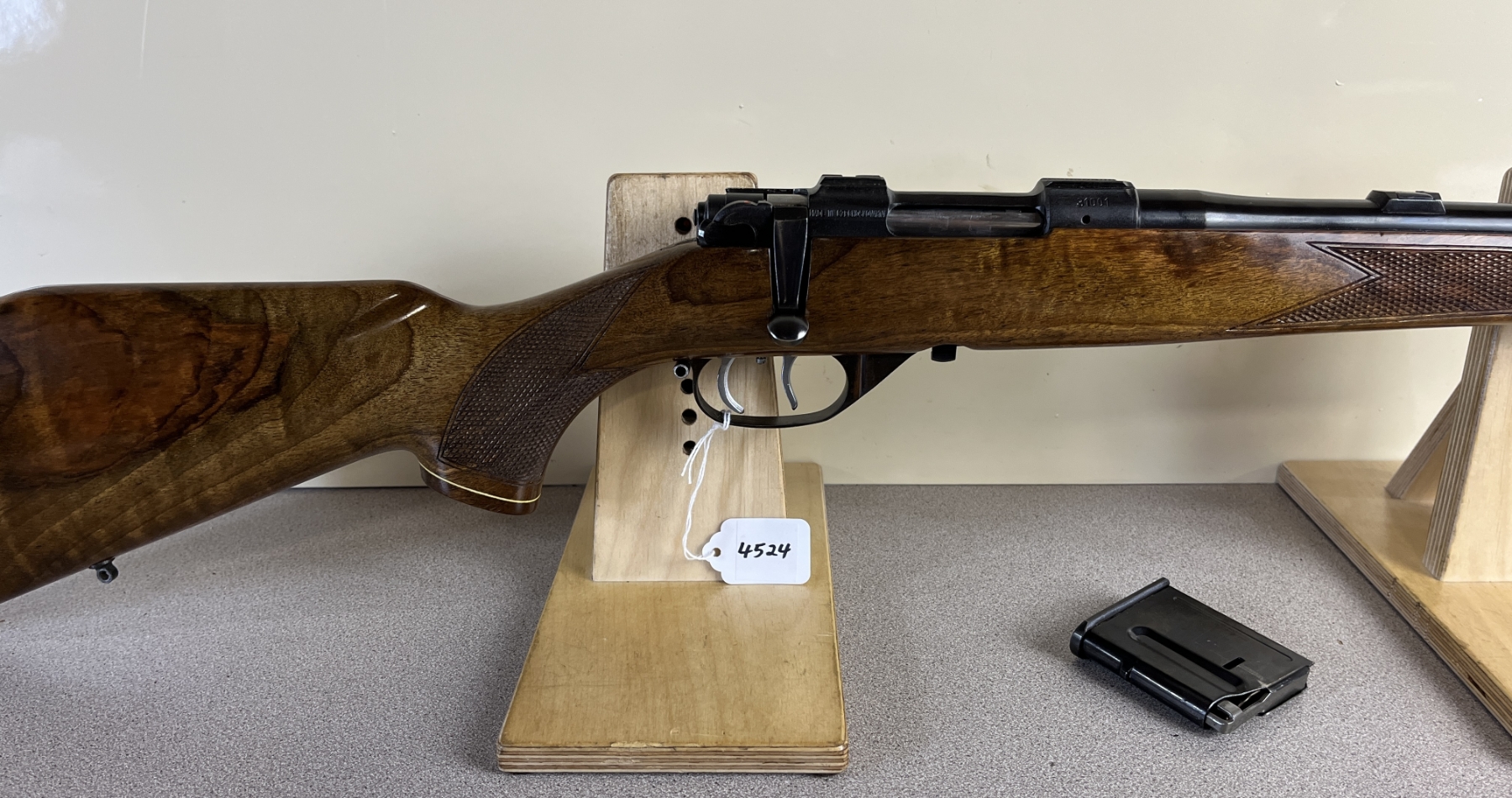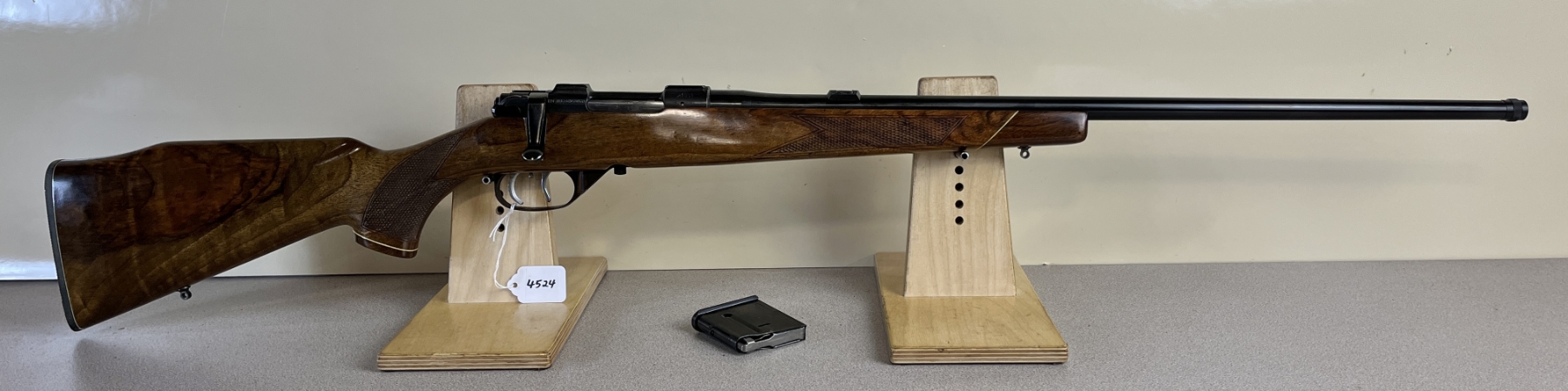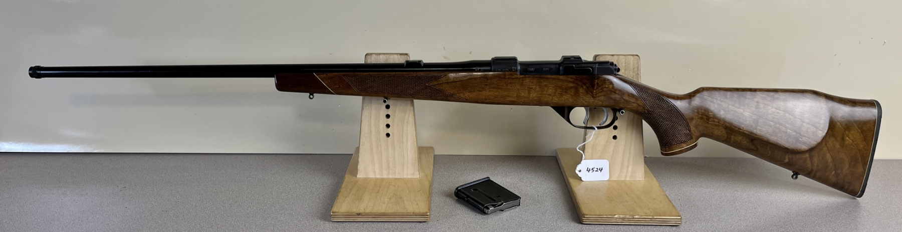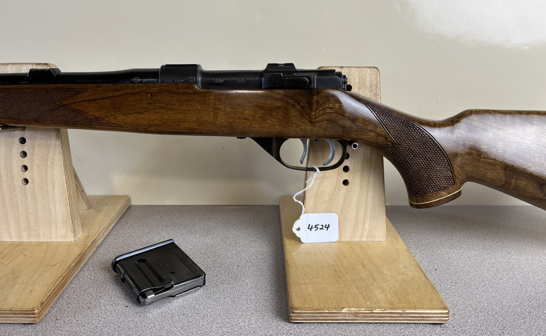 CONDITION: VG OVERALL INCL BORE. SPECS: 24IN BBL WITH THREADED MUZZLE, DOUBLE SET TRIGGERS, WALNUT MONTE CARLO STOCK WITH CONTRASTING FOREND AND GRIP CAP. INCL 1X MAGAZINE. EXTRAS: NONE. S/N: 31001
