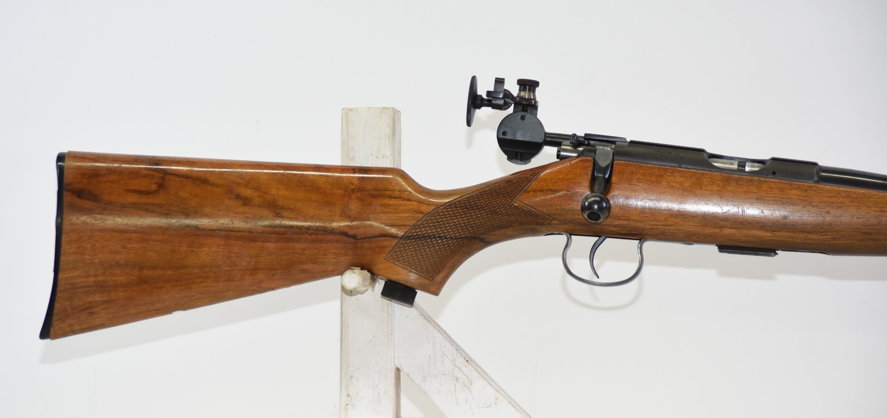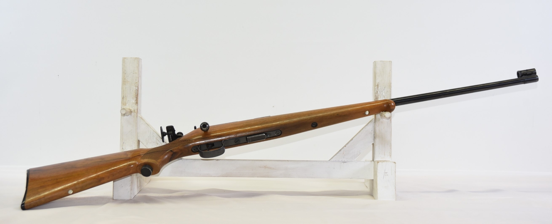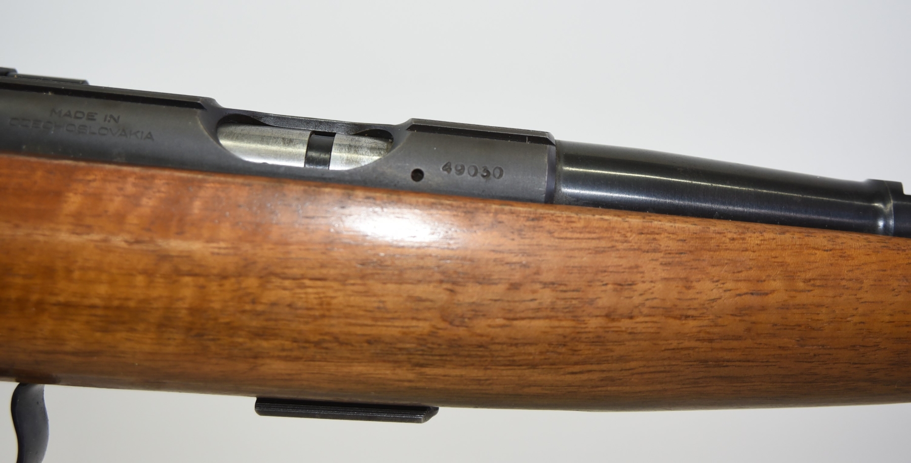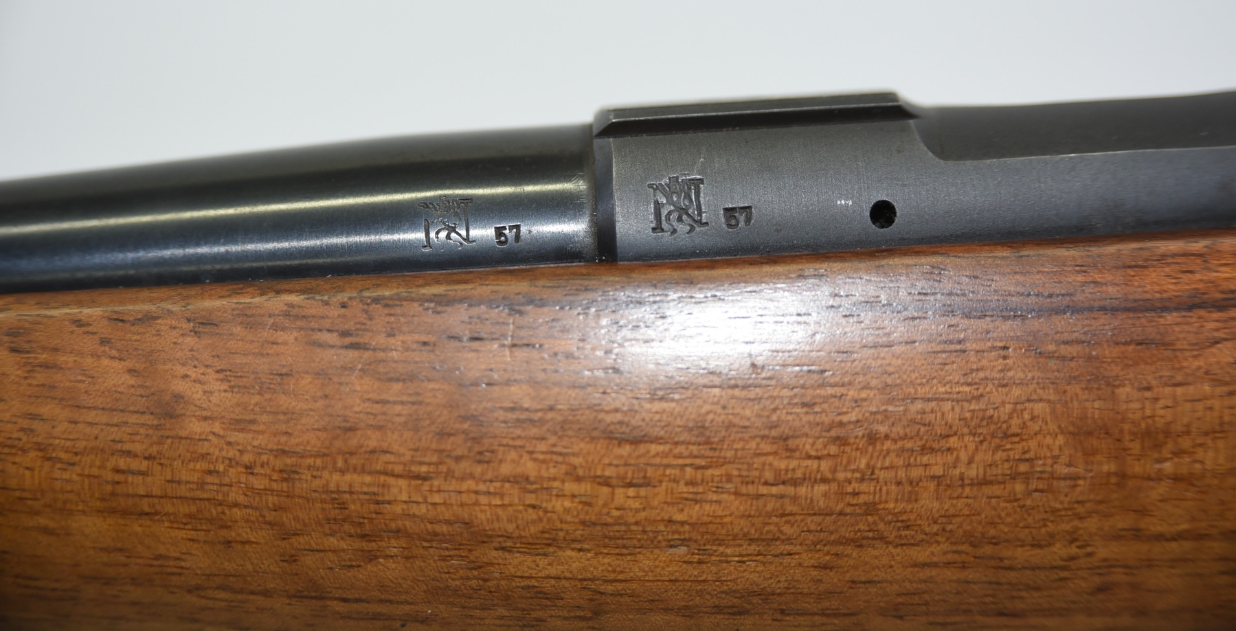 Wood stock shows few light scratches, scuffs, few light dents, sling mounts are filled in; condition is excellent.