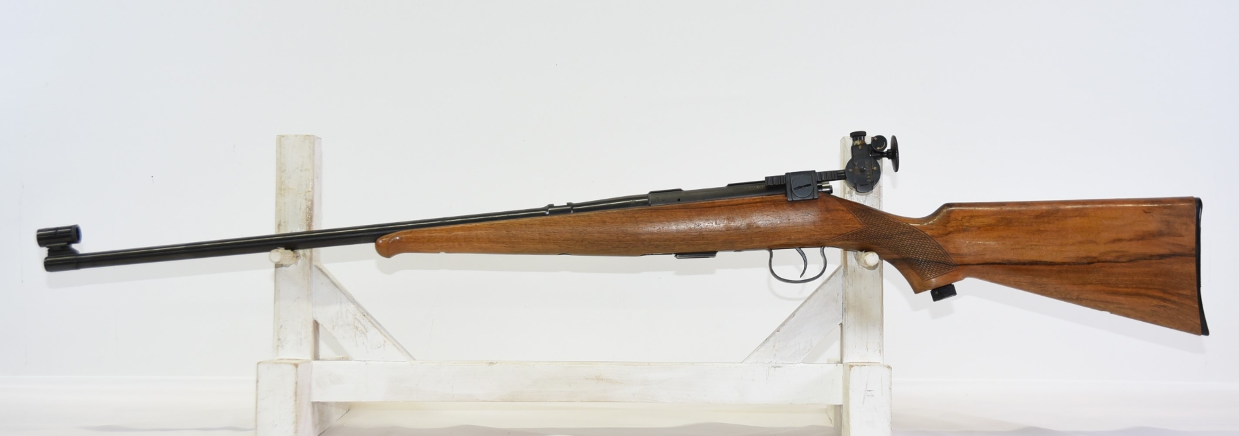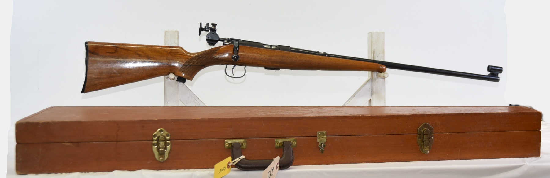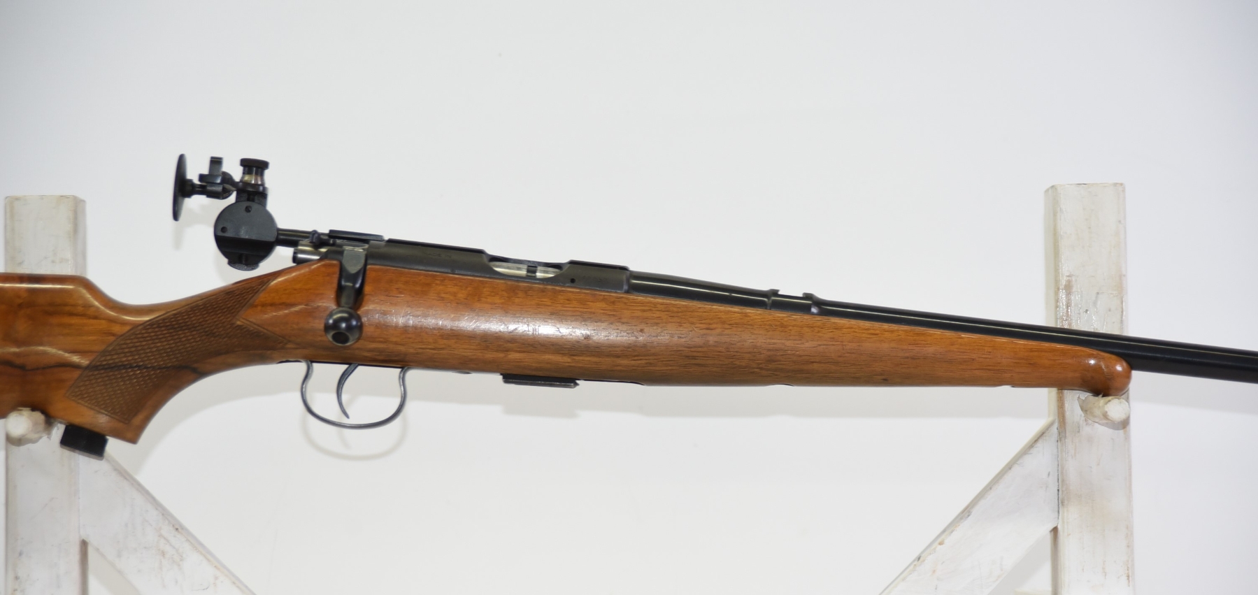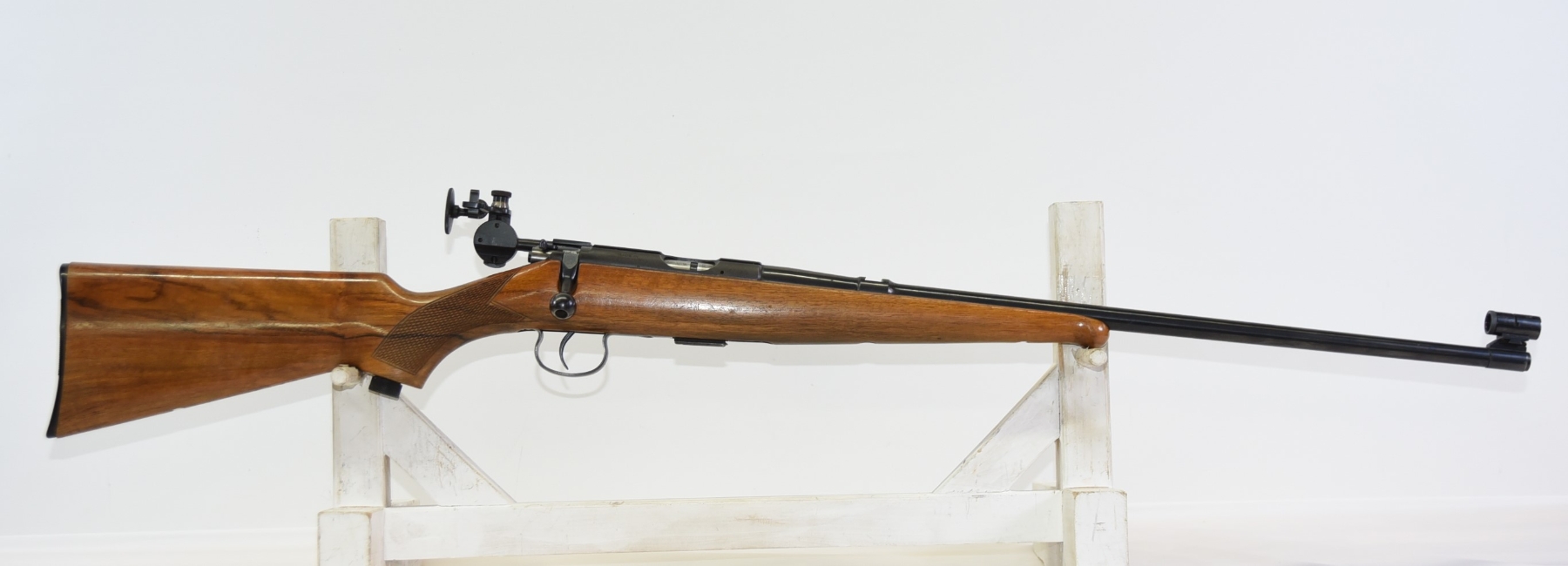 Wood stock shows few light scratches, scuffs, few light dents, sling mounts are filled in; condition is excellent.