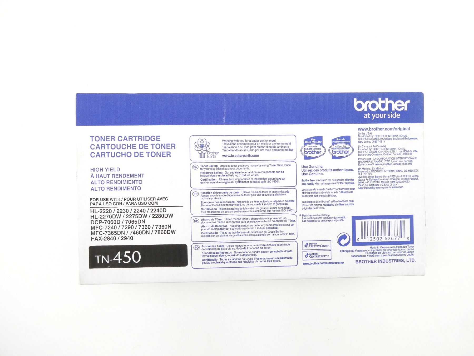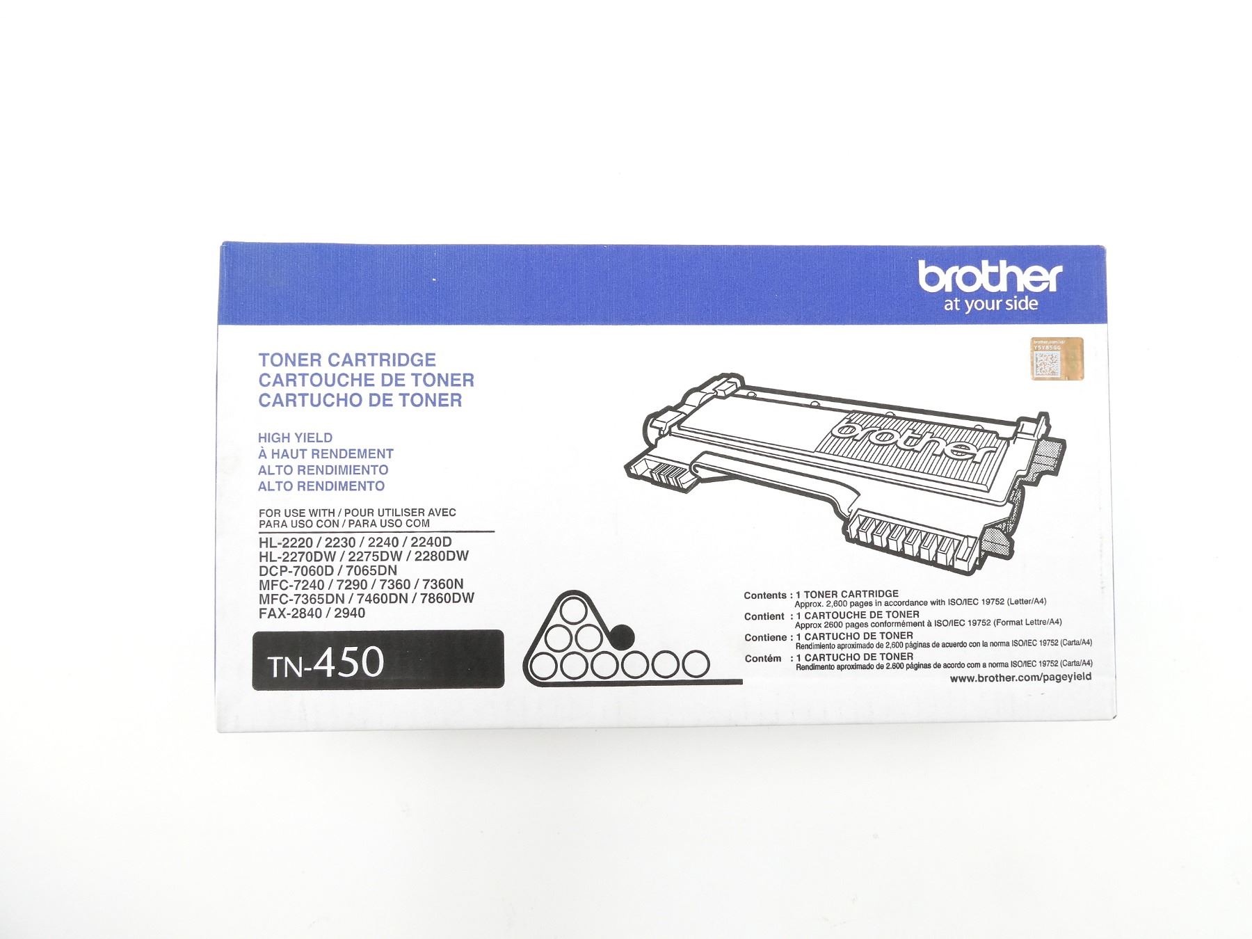 (1) BROTHER TN-450 TONER CARTRIDGE, NEW OLD STOCK, SEALED IN ORIGINAL PACKAGING. SEE PHOTOS.