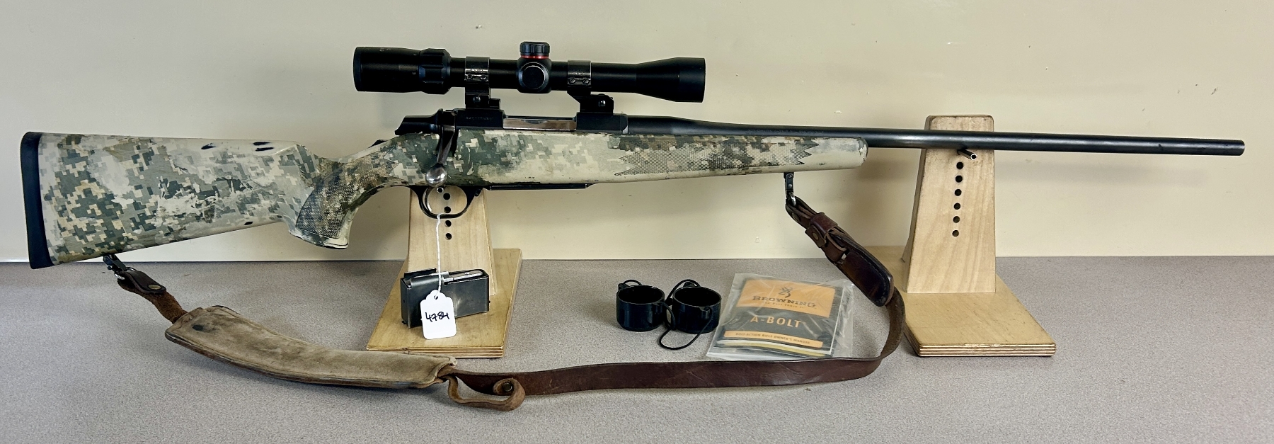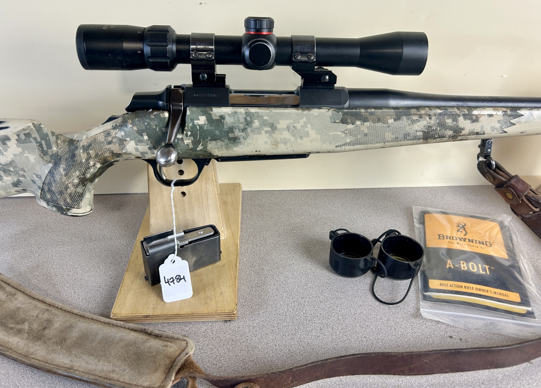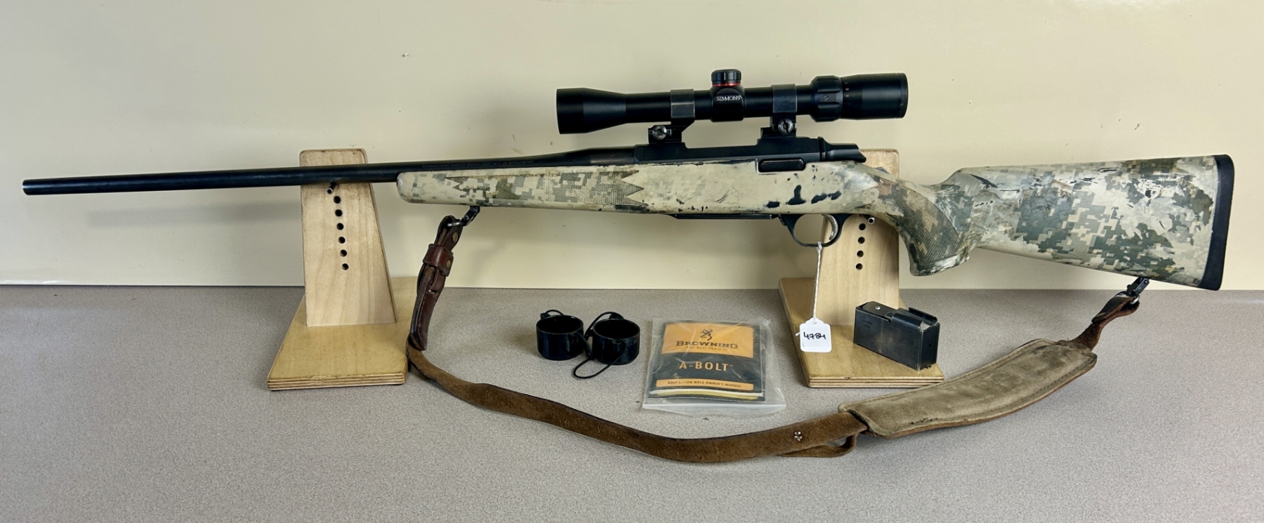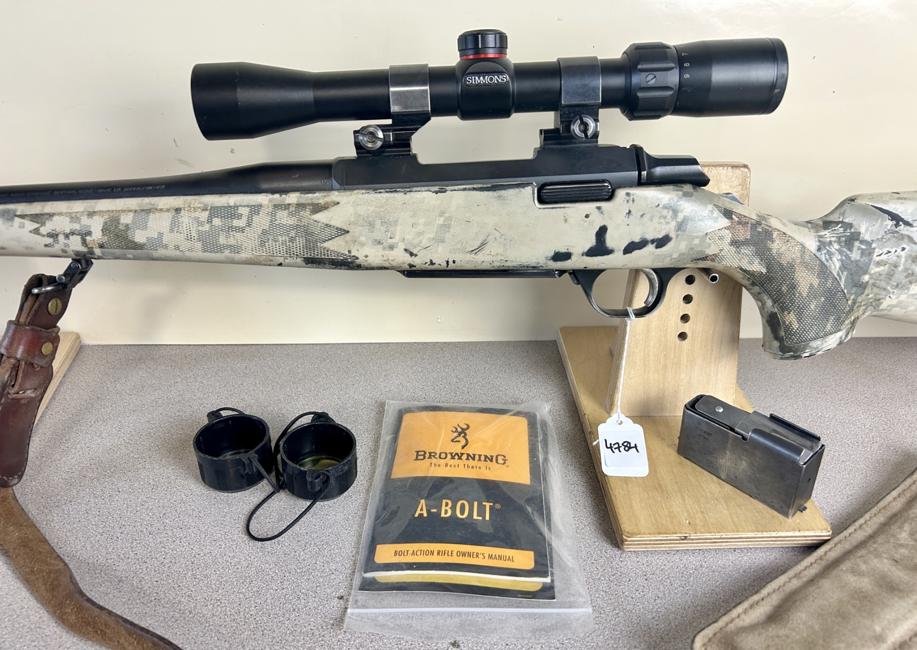 CONDITION: F-G OVERALL, BORE G. NOTE: SHOWS MANY SCRATCHES, FINISH IS FADED. SPECS: 23IN BBL. SYNTHETIC STOCK. EXTRAS: LEATHER SLING, SIMMONS 3-9X32 SCOPE CLEAR WITH DUPLEX RETICLE, SCOPE LENSE COVERS, MANUAL. S/N: 84017MN351