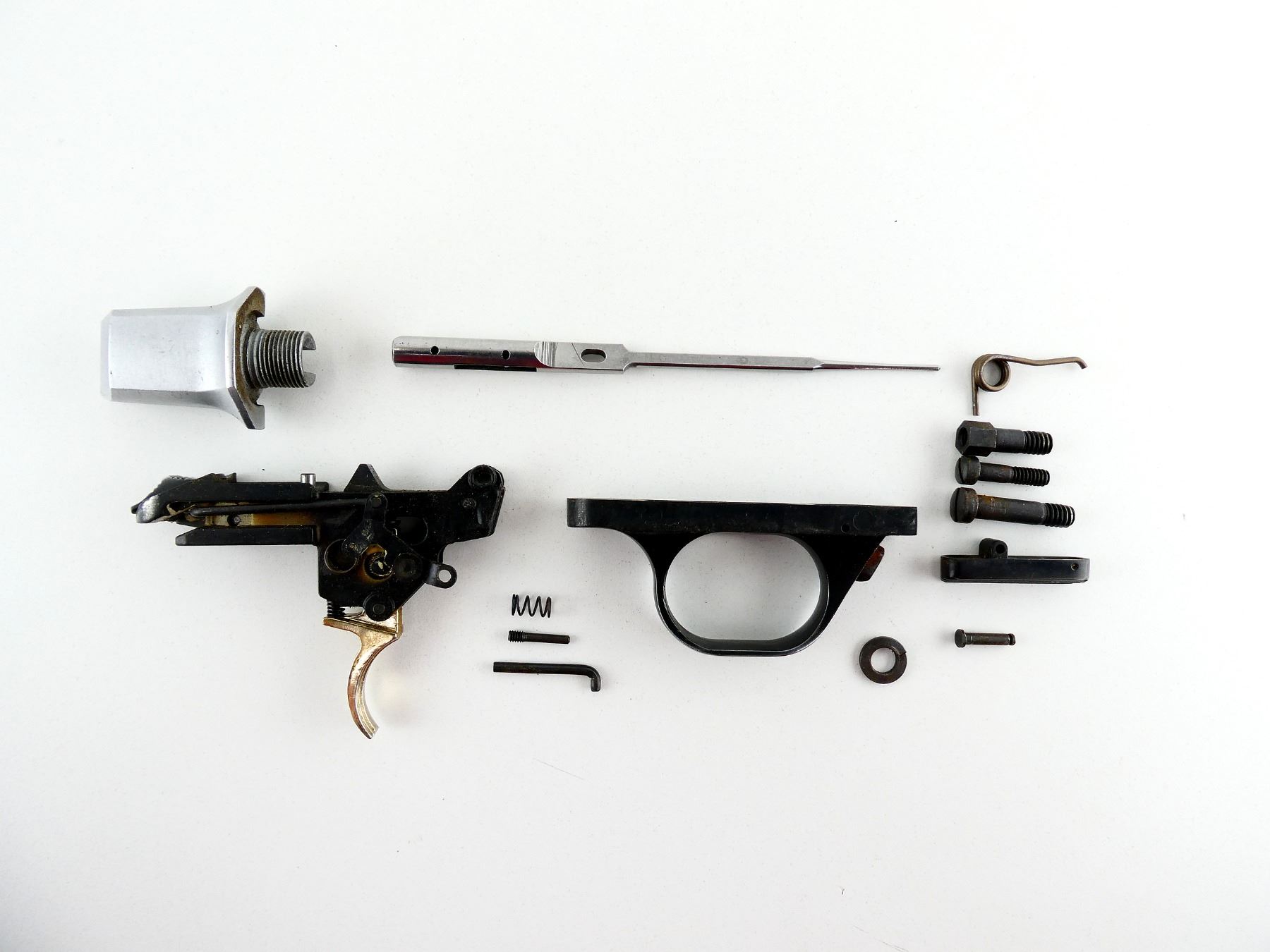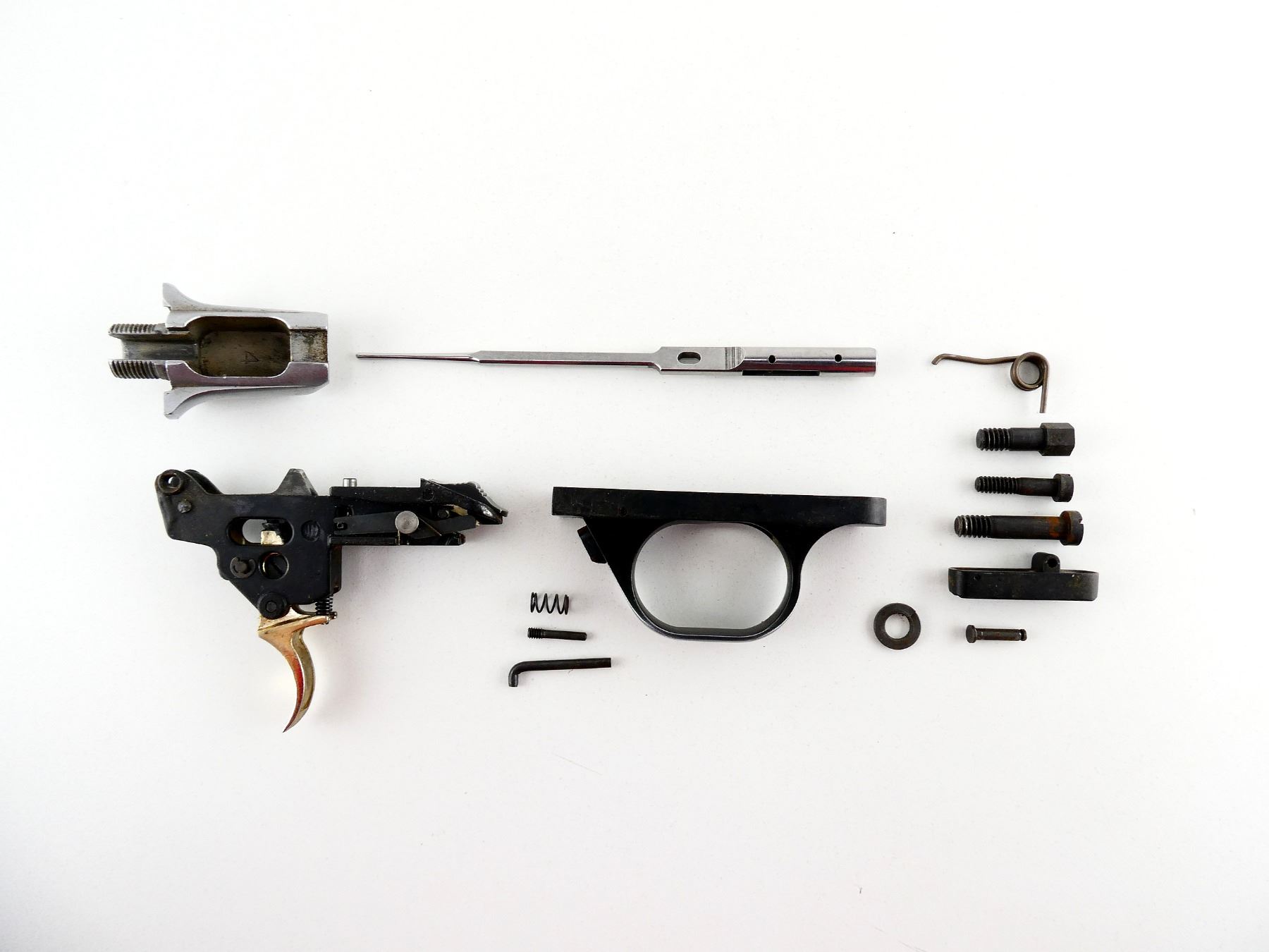 LOT INCLUDES; FIRING PIN, BOLT SHROUD, TRIGGER MECH., TRIGGER GUARD, ACTION SCREWS, BOLT STOP, VARIOUS PINS / SPRINGS, ETC. MAY REQUIRE FITTING. SEE PHOTOS.