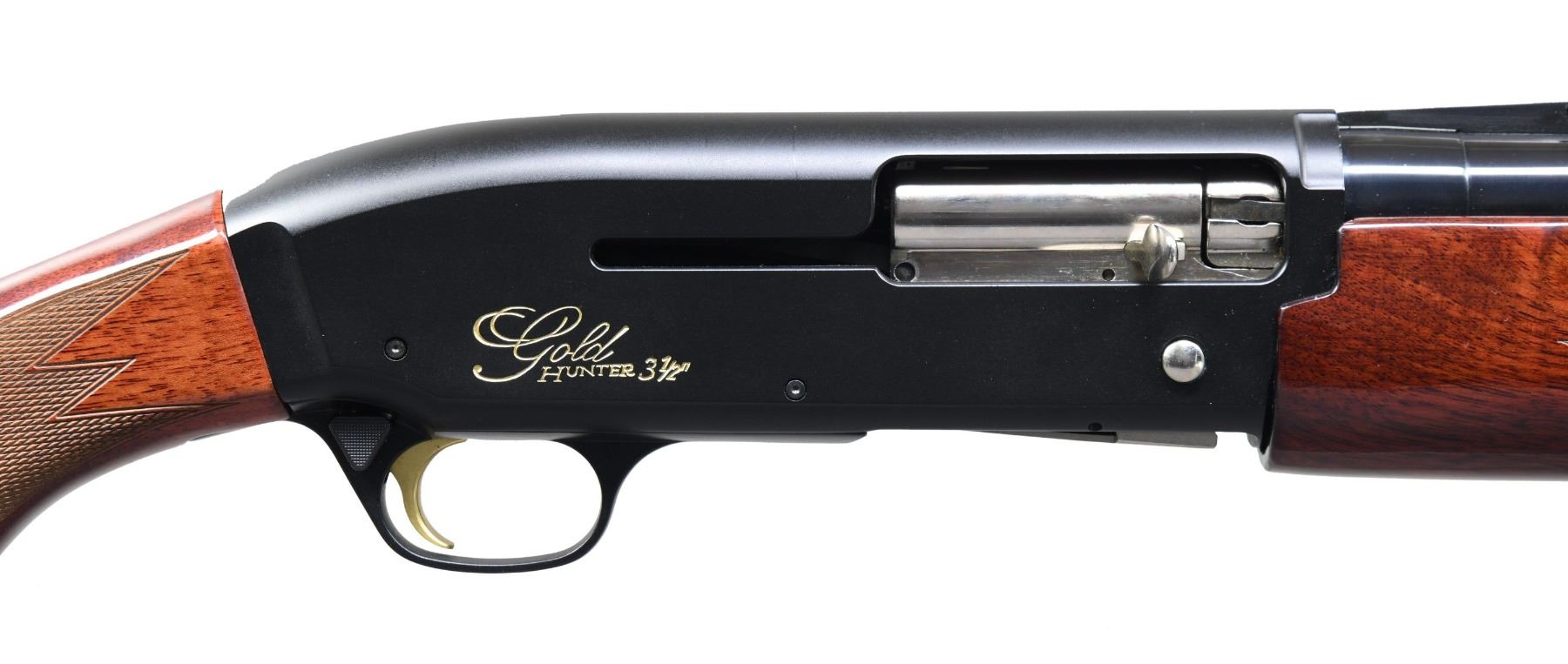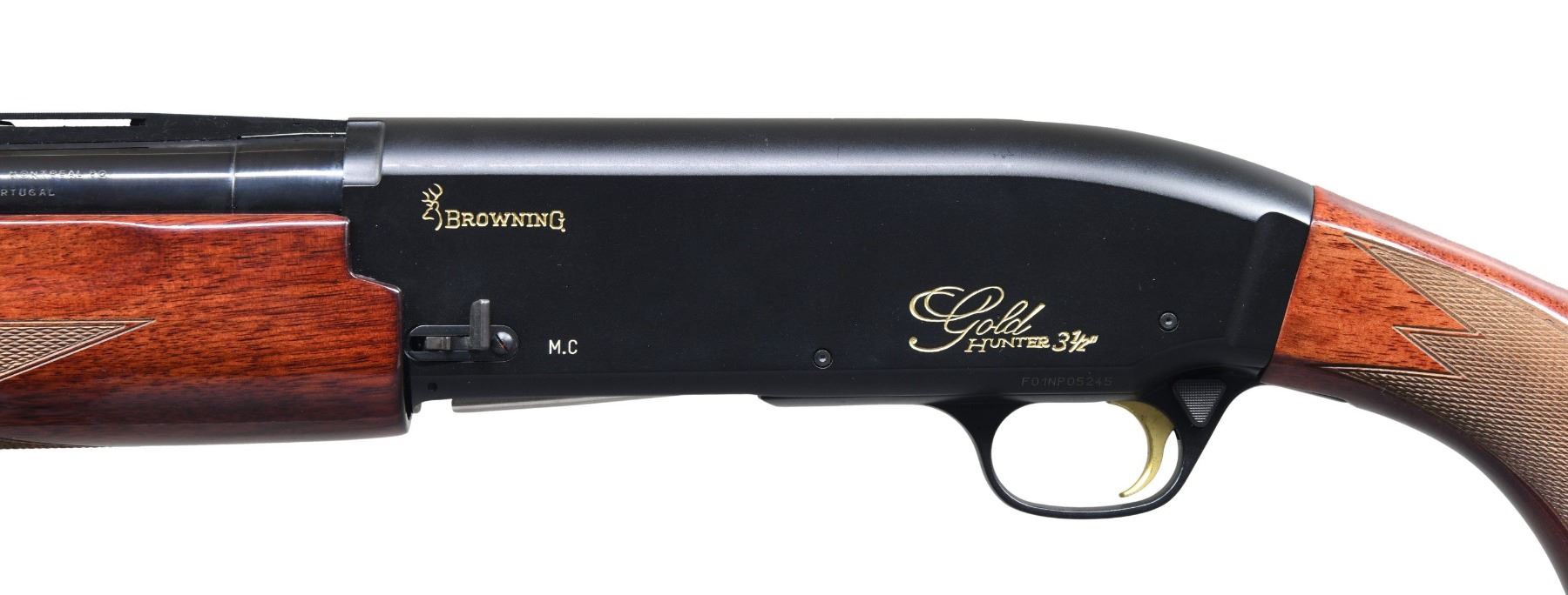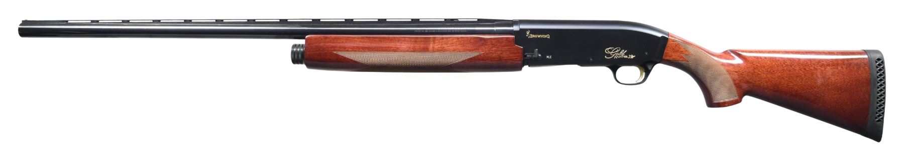 Cal. 12 GA, 2 3/4", 3", & 3 1/2". S# F01NP05245. Bbl. 28" V/R with Invector chokes. Full choke tube installed. Gloss blued bbl. with matte black finished gas operated alloy action and gold finished trigger. Gloss finished forearm and pistol grip stock with original Browning recoil pad. Mfg. 1998-2005. UNATTACHED ACCESSORIES: Full Mod. and IC tubes along with choke wrench. CONDITION: over 98% metal finish. Stocks have very good finish showing small marks. Very good bright bore. (25-3707/DS). MODERN. $500-700.