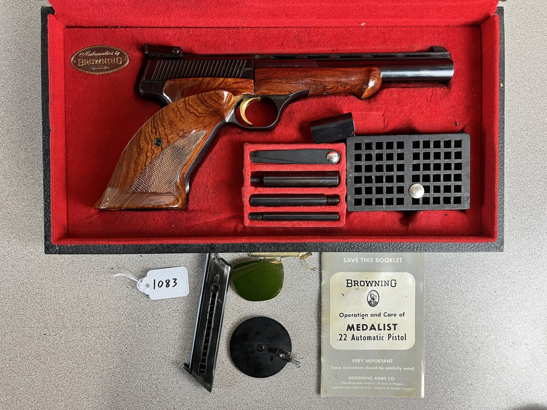 CONDITION: VG OVERALL INCL BORE. SPECS: 175MM BBL. LEFT-HANDED GRIP. INCL 1X MAG. EXTRAS: PRESENTATION CASE, ORIGINAL MANUAL, ASSORTED ACCESSORIES - SEE PICS. S/N: 47598U5S