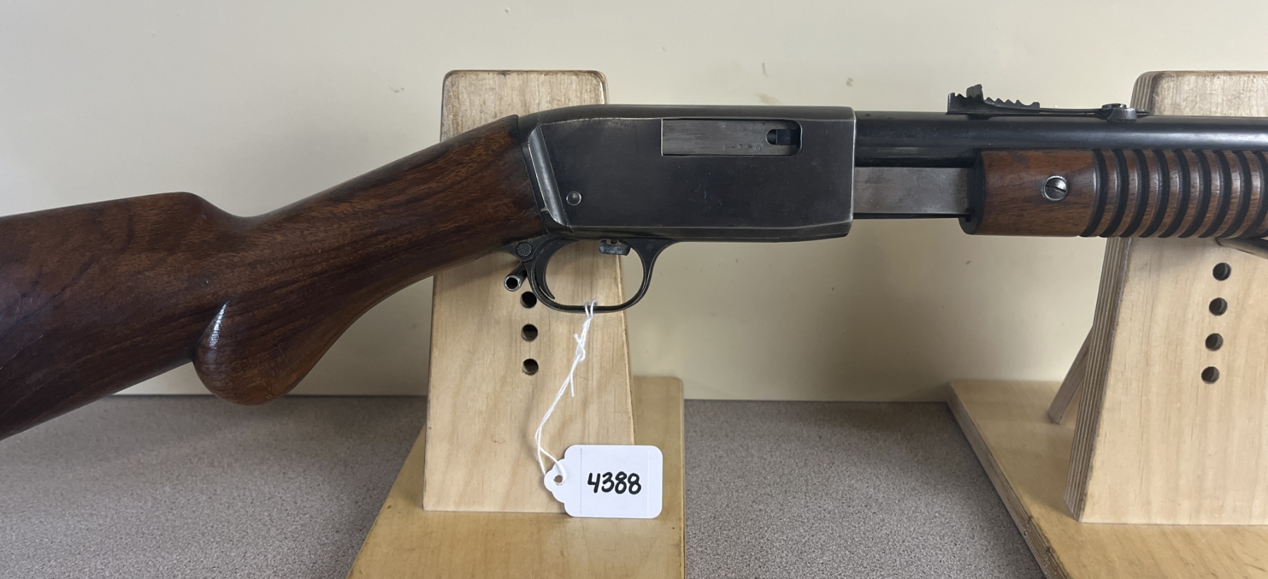 CONDITION: G OVERALL INCL BORE. REPAIR AT WRIST. HANDLING MARKS THROUGHOUT. SPECS: 22IN BBL W/ IRON SIGHTS. EXTRAS: NONE. S/N: 73659.