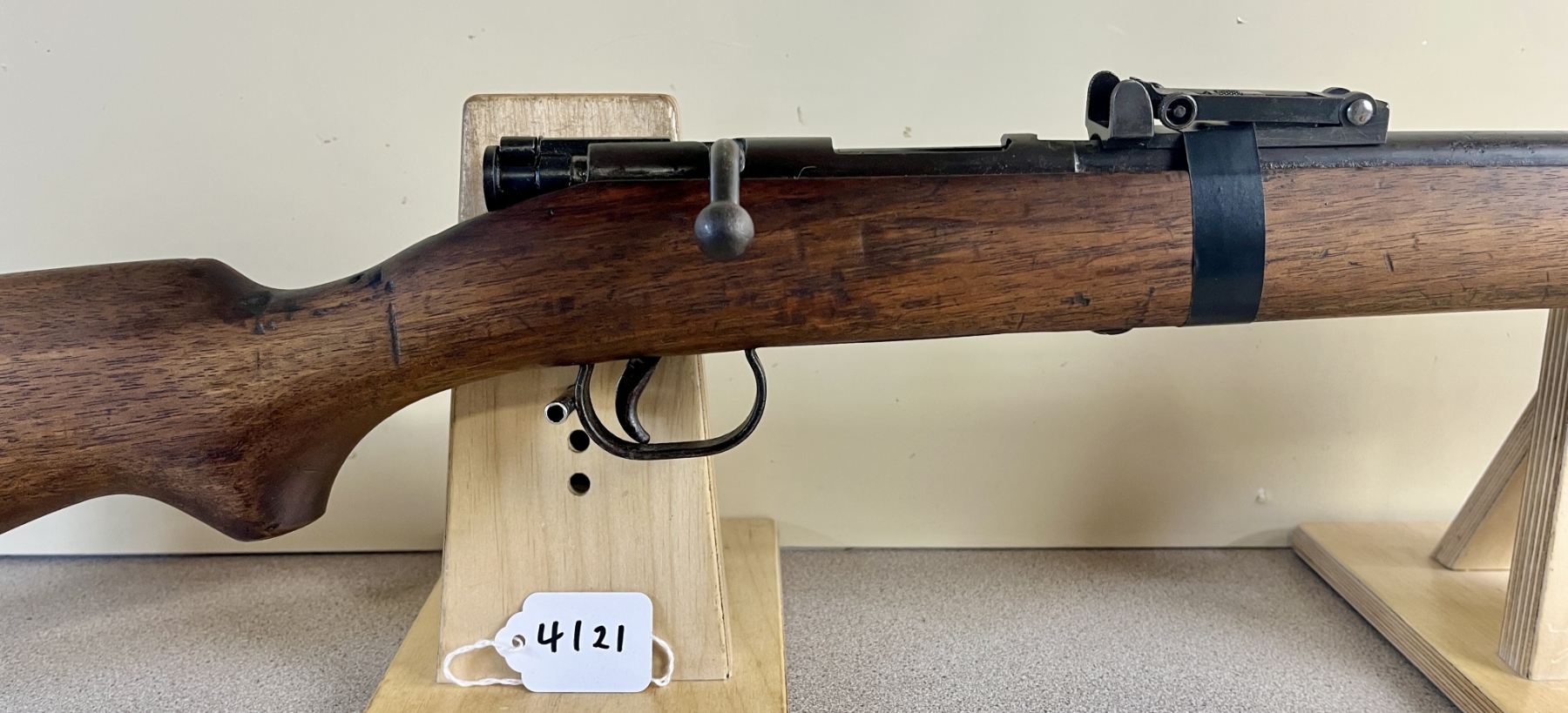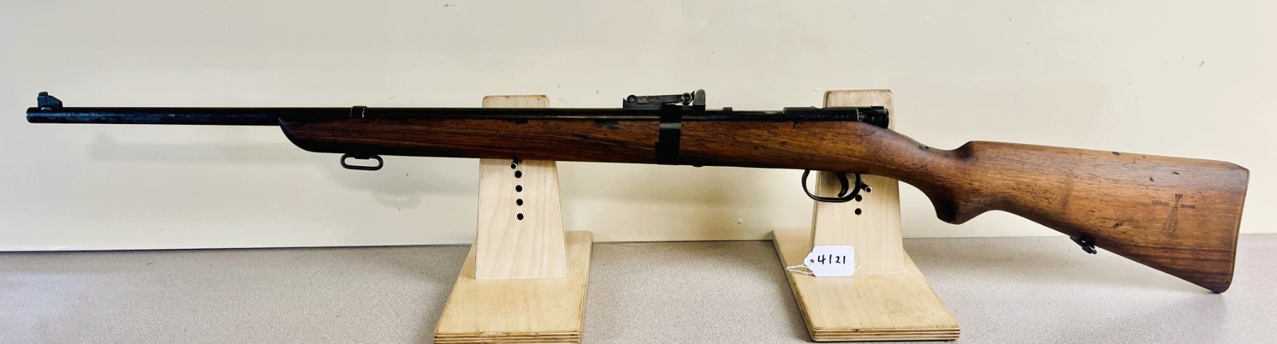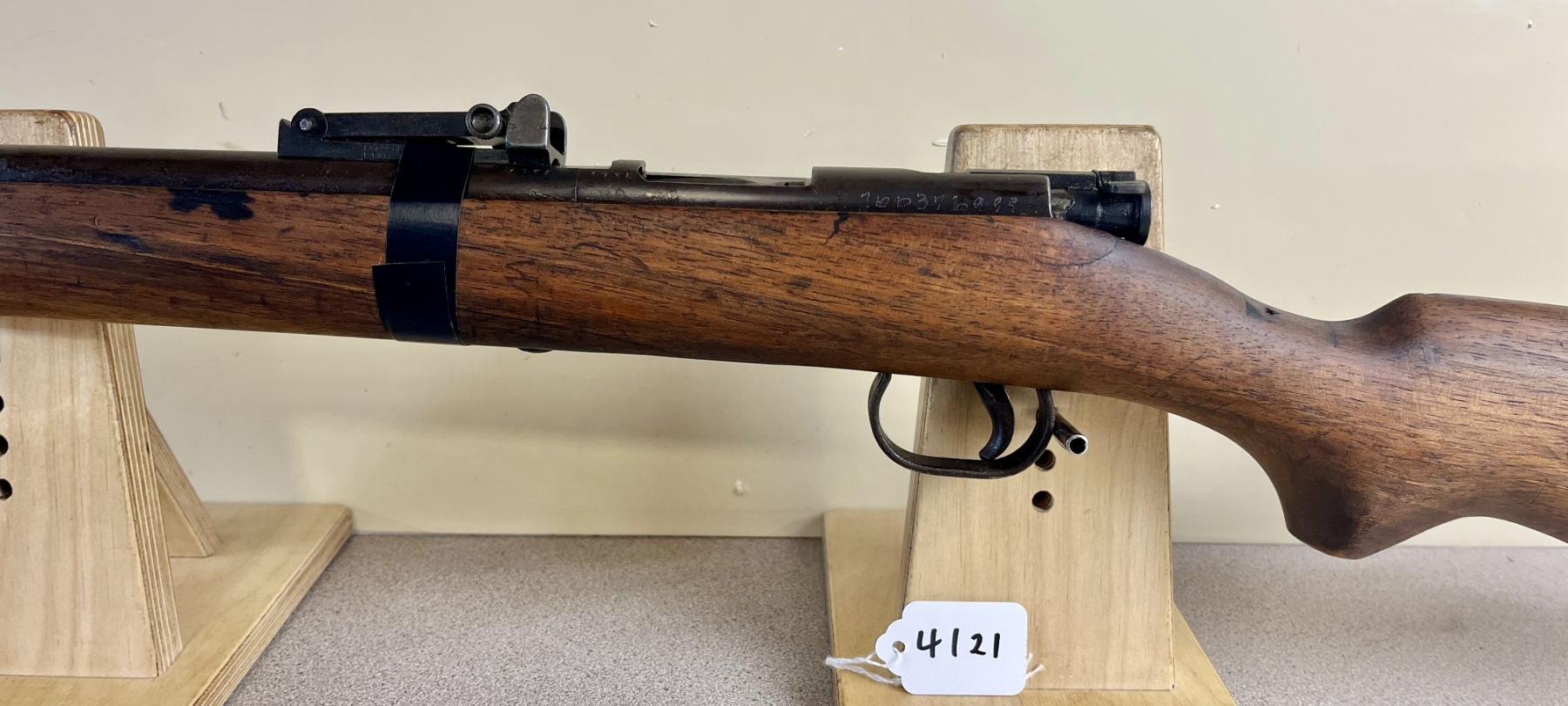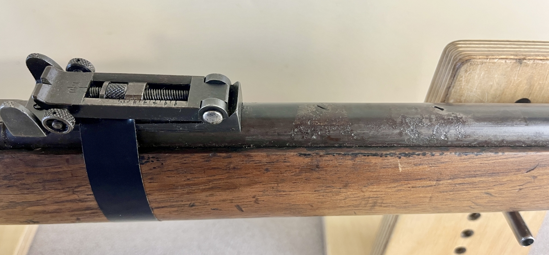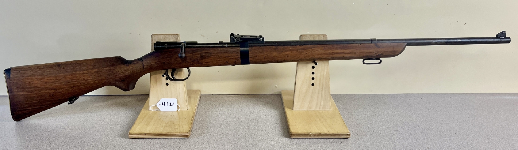CONDITION: G OVERALL, BORE F. NOTE: REAR SIGHT HELD ON BY TAPE. SPECS: 23-1/2IN BBL. EXTRAS: NONE. S/N: 1738
