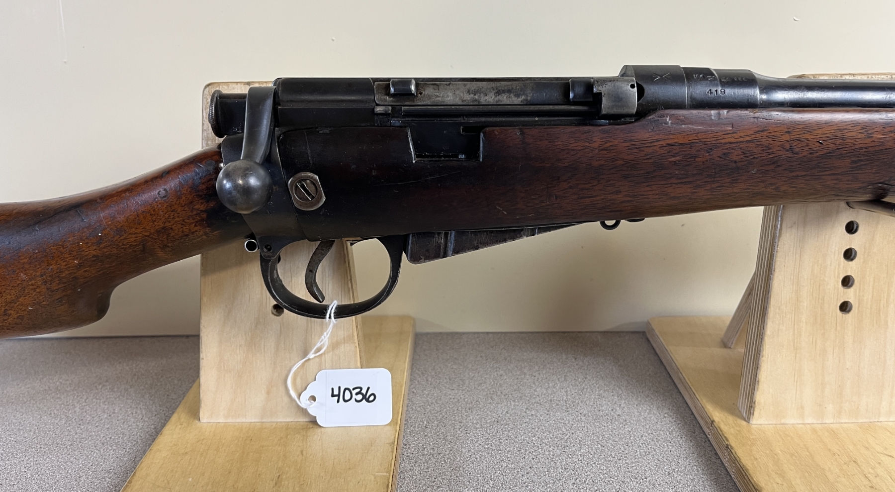 CONDITION: F OVERALL INCL BORE. SPECS: 25 1/4IN BBL. INCL 1X MODIFIELD MAG BODY - MISSING FOLLOWER. EXTRAS: NONE. S/N: 418 ON BBL.