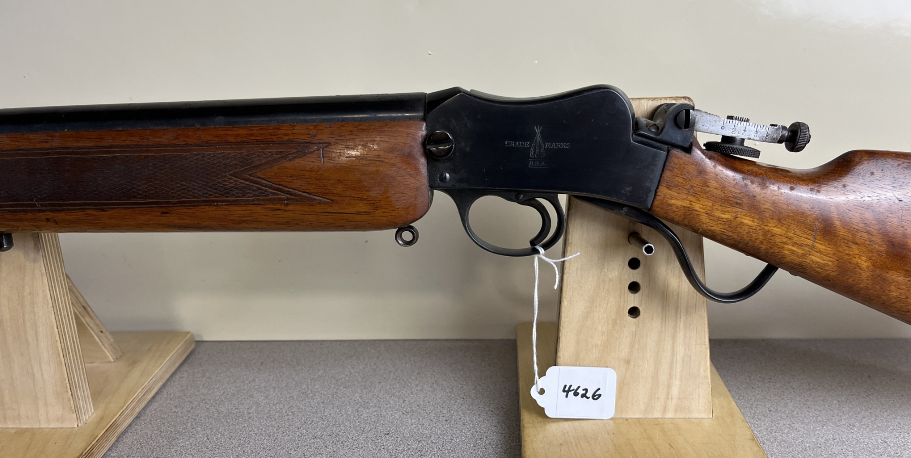 CONDITION: G OVERALL VG BORE. SPECS: 26-3/4IN BBL. TANG MOUNTED PEEP SIGHT. EXTRAS: NONE. S/N: 135