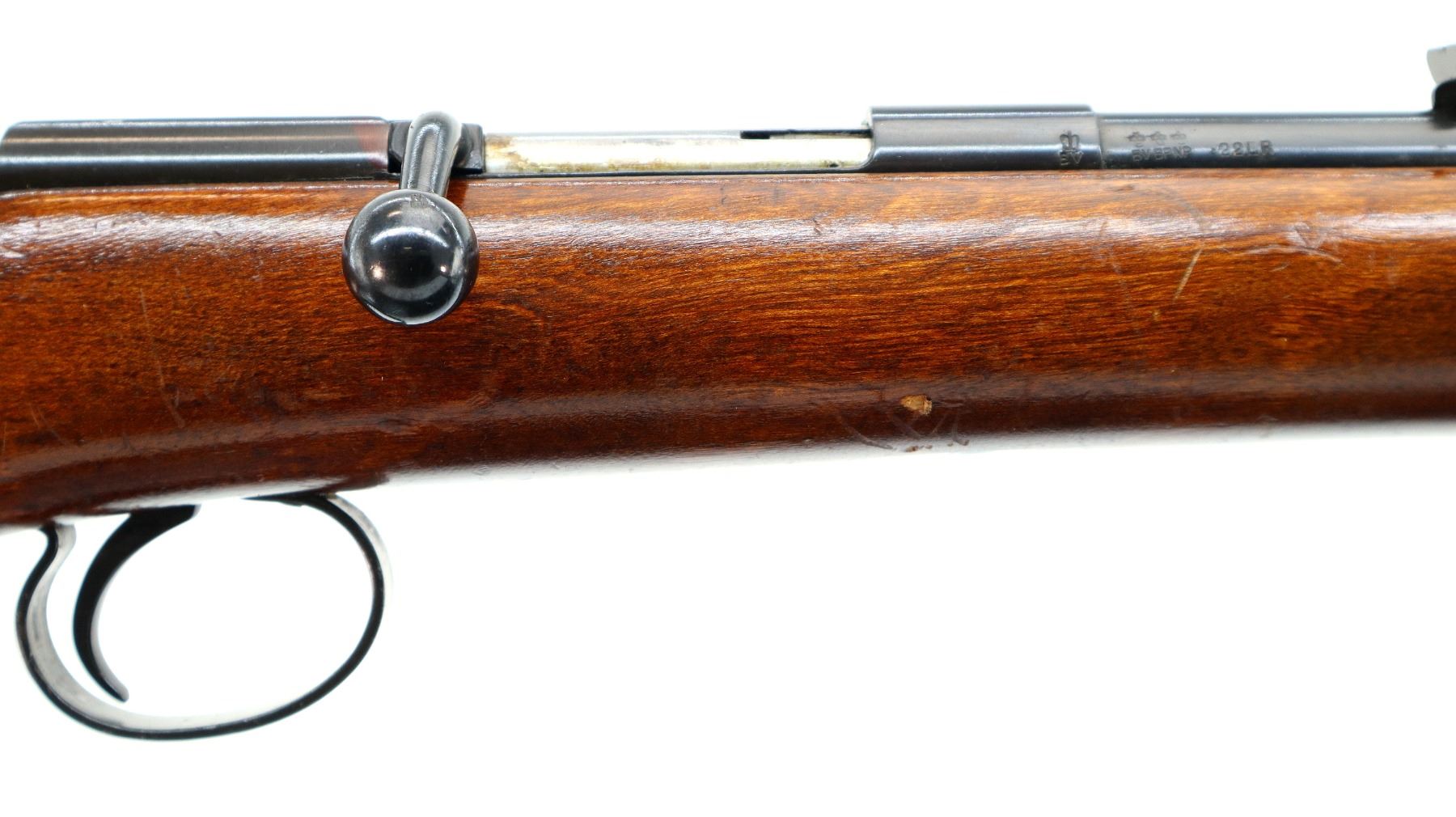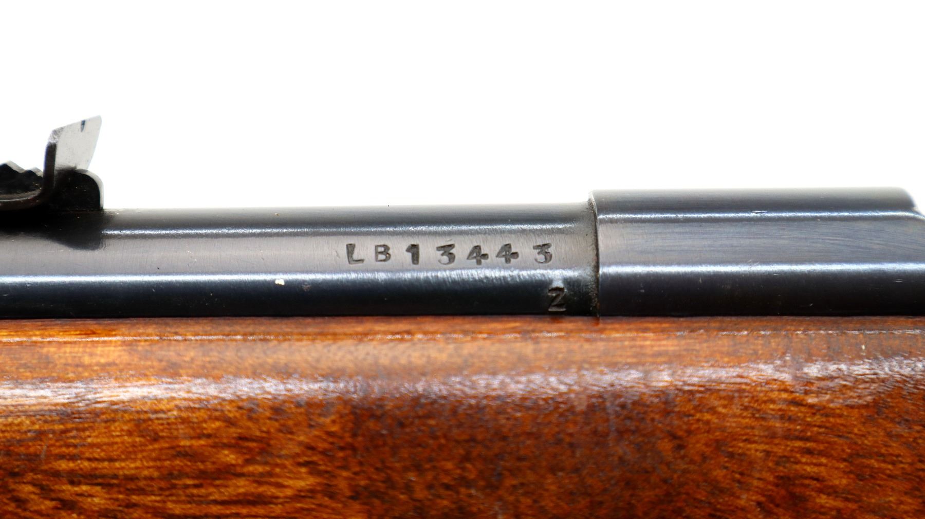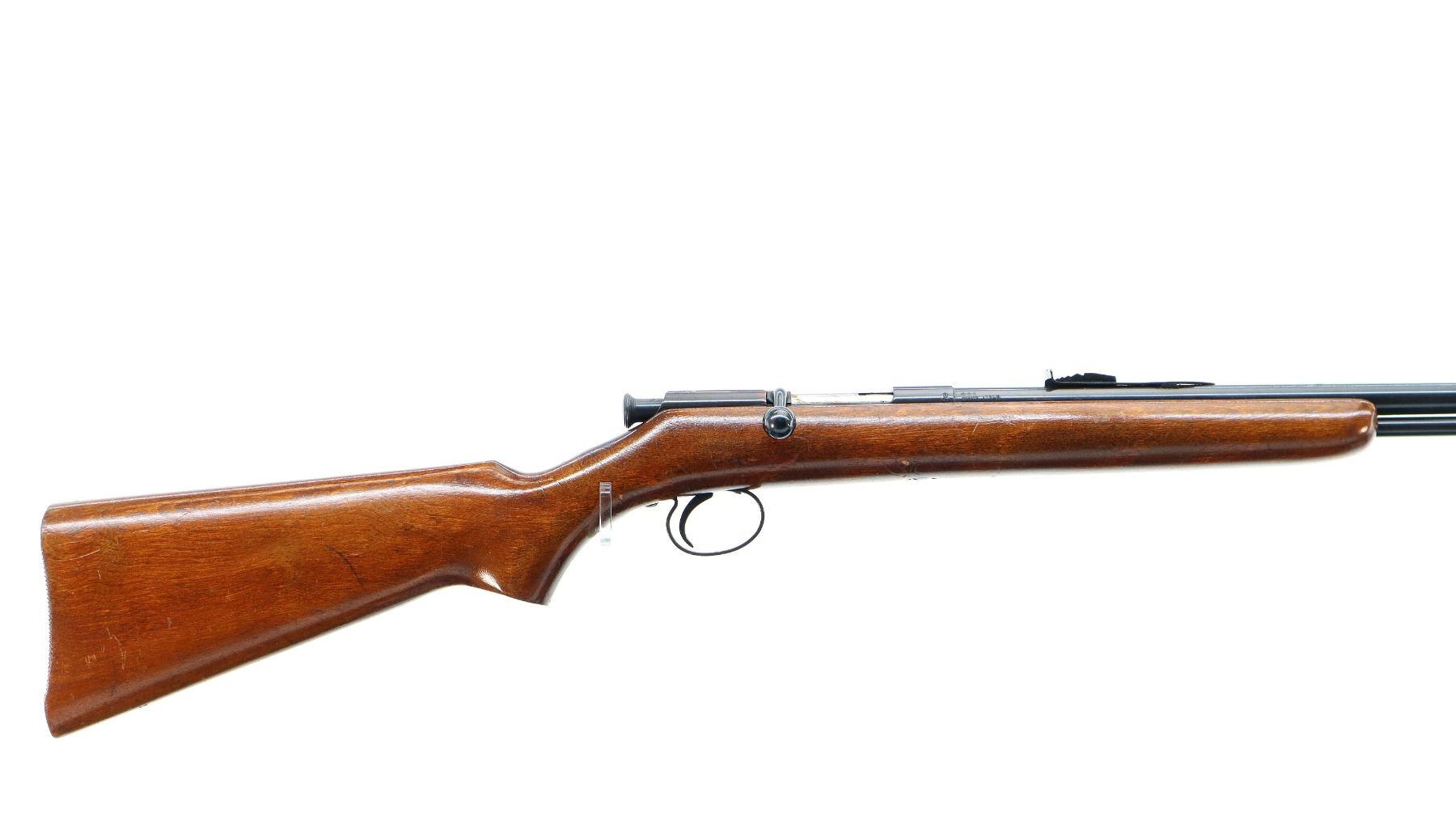 Main Description: Blade front sight, adjustable u notched rear sight, blued finish, smooth bolt knob. One piece wood stock, pistol grip, grooved butt.