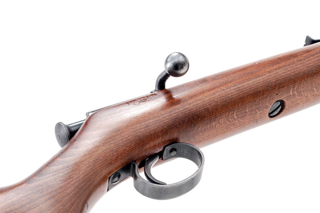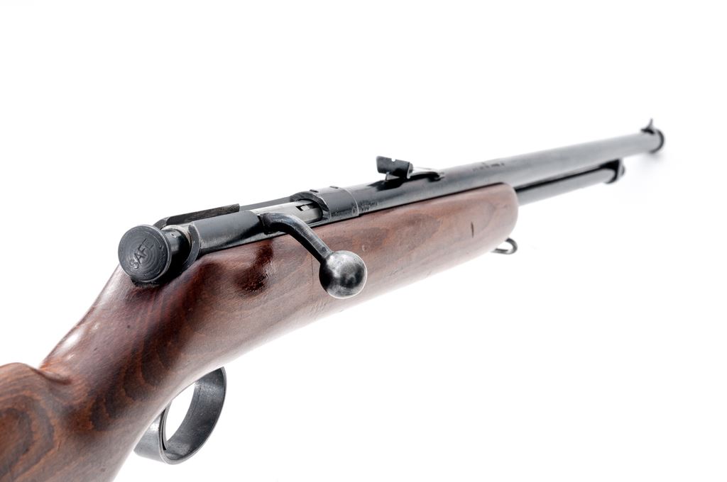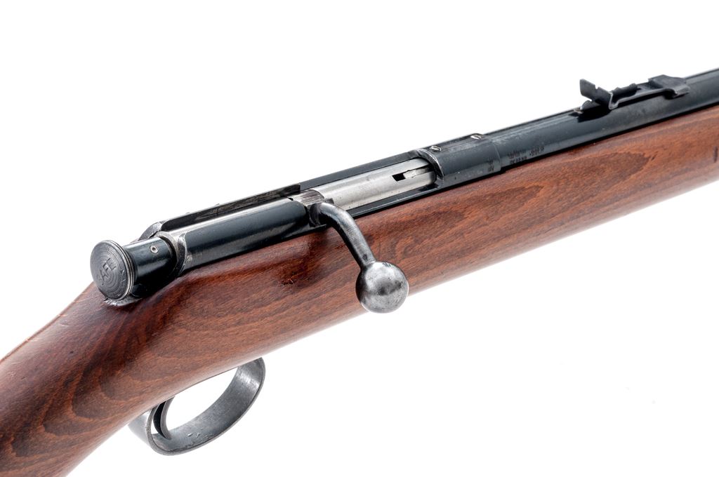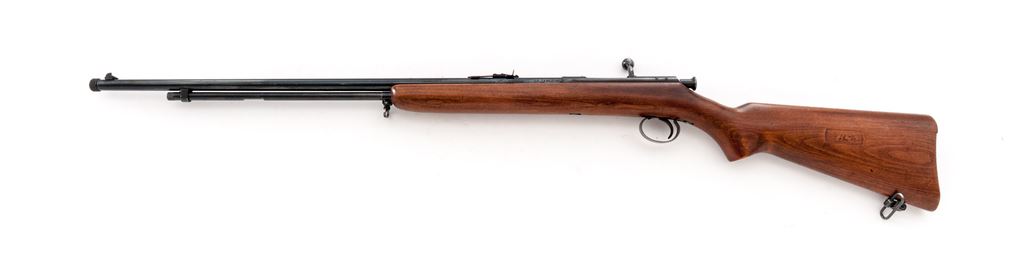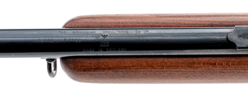 BSA Sportsman I Bolt Action Rifle, #LE61899, .22 LR cal., 25'' barrel, blue finish, smooth pistol-grip Beechwood stock, tube-fed, with sling swivels and standard sights. Condition is excellent. Metal surfaces retain approx. 96% blue. BSA cartouched stock with just light general overall nicks. Good action, bright bore. Est.: $150-$300. (C&R)