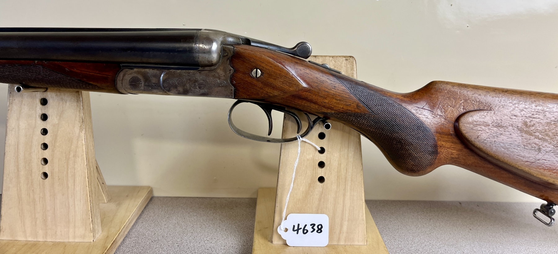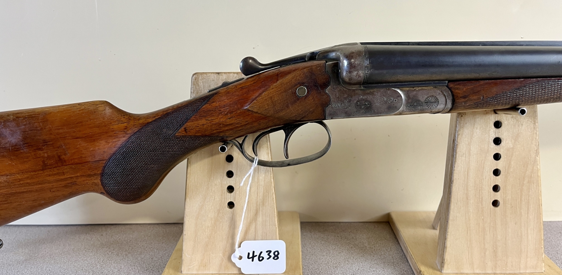 CONDITION: F-G OVERALL INCL BORE. NOTE: ACTION RELEASE LEVER RETURN SPRING MALFUNCTIONING, SHOWS 1X CRACK AT UPPER TANG, 2X SMALL CHIPS AT LOWER TANG. SPECS: 29-1/2IN SXS BBLS FIXED FULL BY FULL CHOKES. EXTRAS: NONE. S/N: 44660