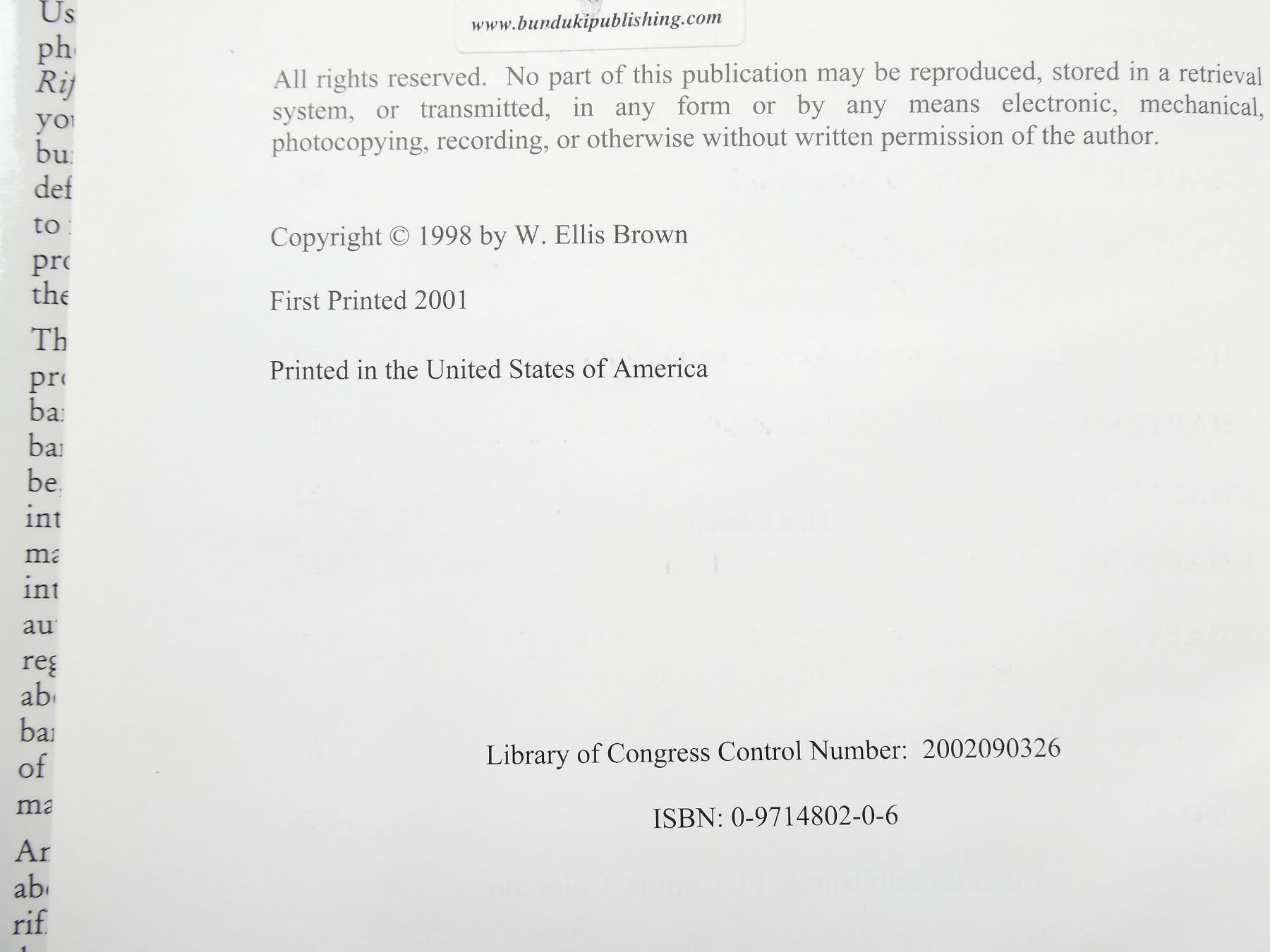 (1) BY W. ELLIS BROWN, HARD COVER WITH DUST COVER, FIRST EDITION, INSCRIBED & SIGNED BY AUTHOR, ISBN: 0-9714802-0-6