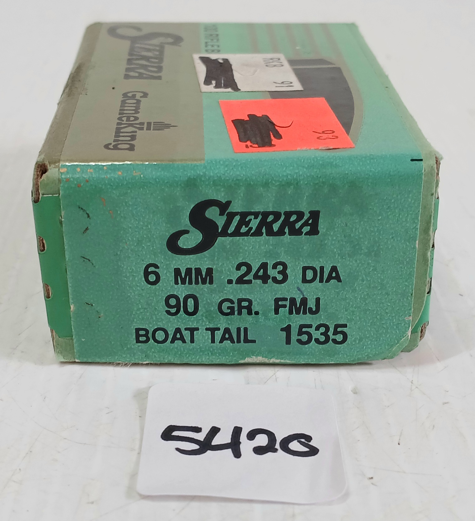 BULLETS: 100X SIERRA 6MM - 90GR - FMJ BT - SEALED
