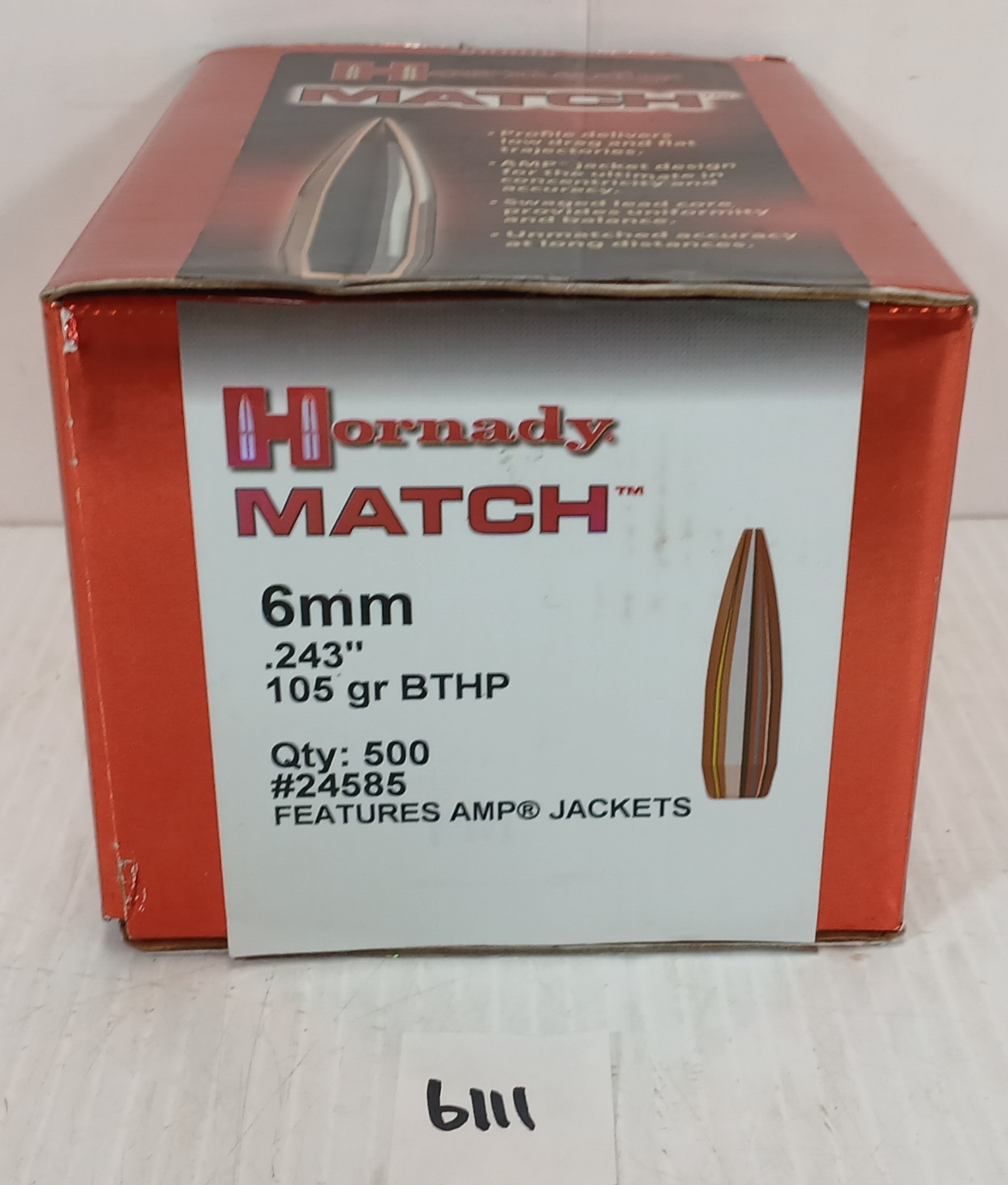 BULLETS: 500X HORNADY MATCH 6MM - 105GR - BTHP - SEALED