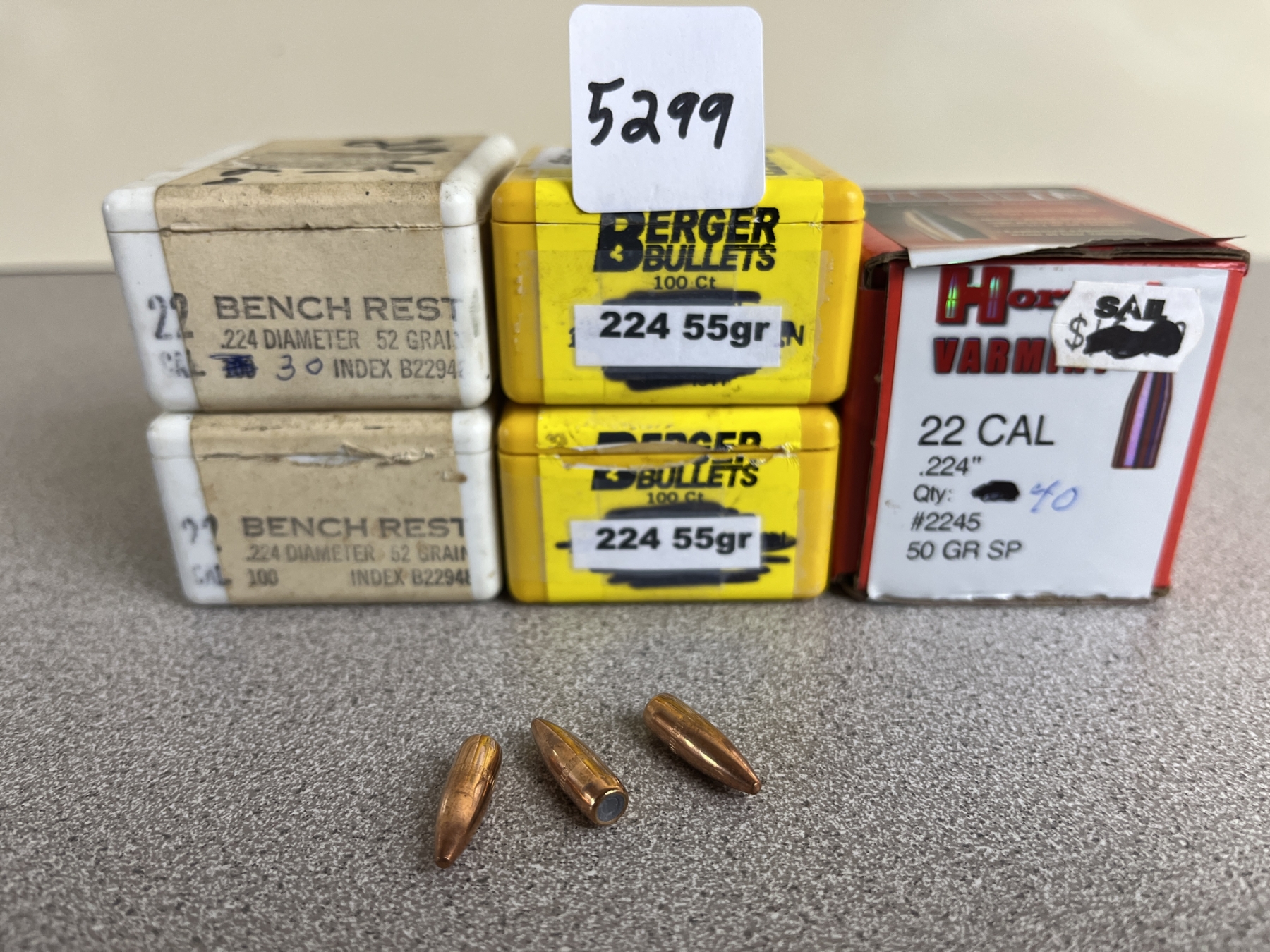 BULLETS: APPROX 350X MIXED .224 52,55,50 GR.