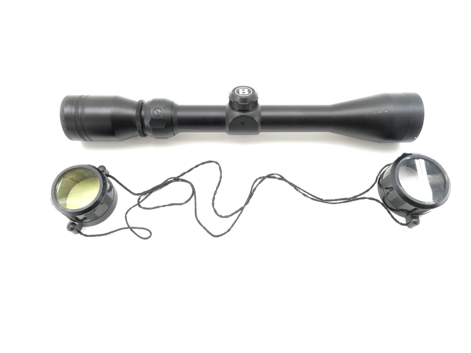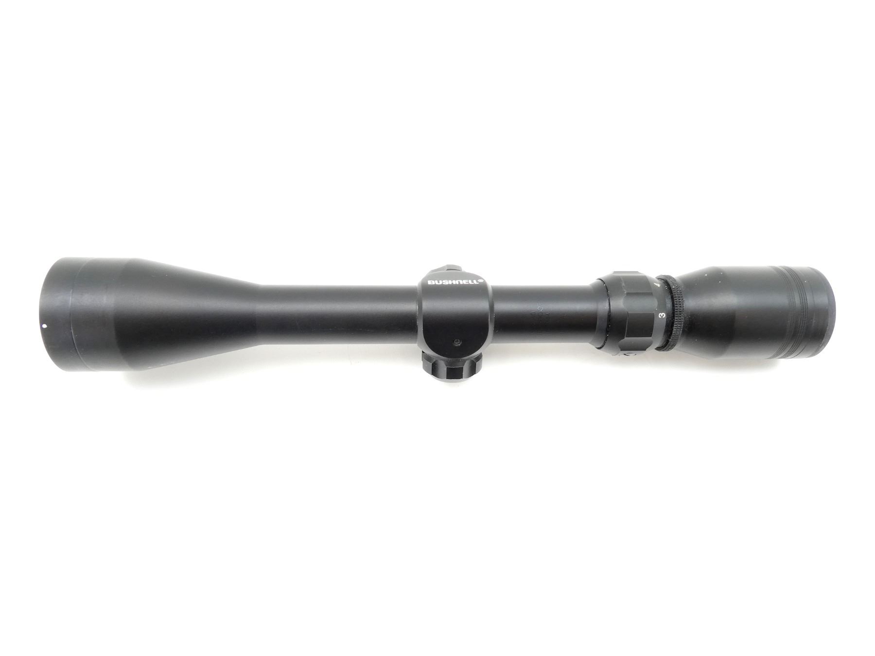 (1) CLEAR OPTICS, MULTI-X RETICLE, 1" TUBE DIAMETER, WORKING MAGNIFICATION RING, WINDAGE & ELEVATION KNOBS TURN, MARKED: "BUSHNELL", "76-3944", ETC., SHOWS WEAR & TEAR / USE MARKS, WITH LENS COVERS. MAY REQUIRE FITTING. SEE PHOTOS.