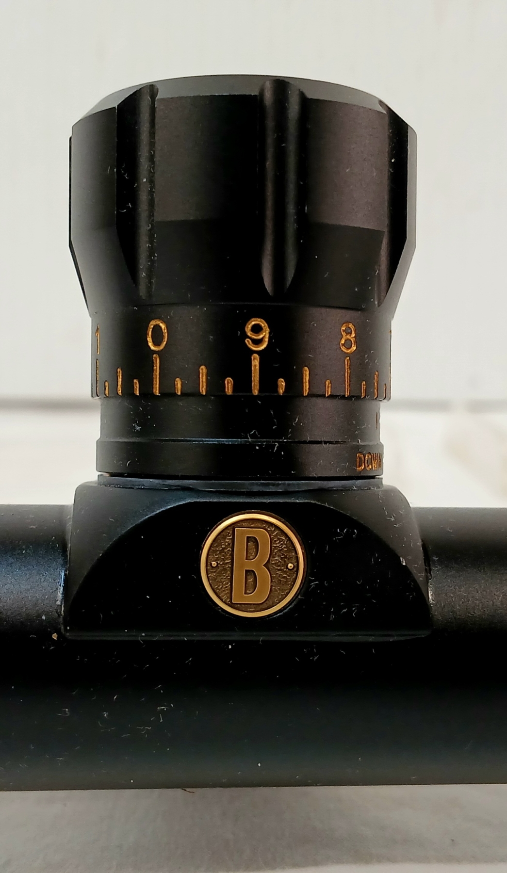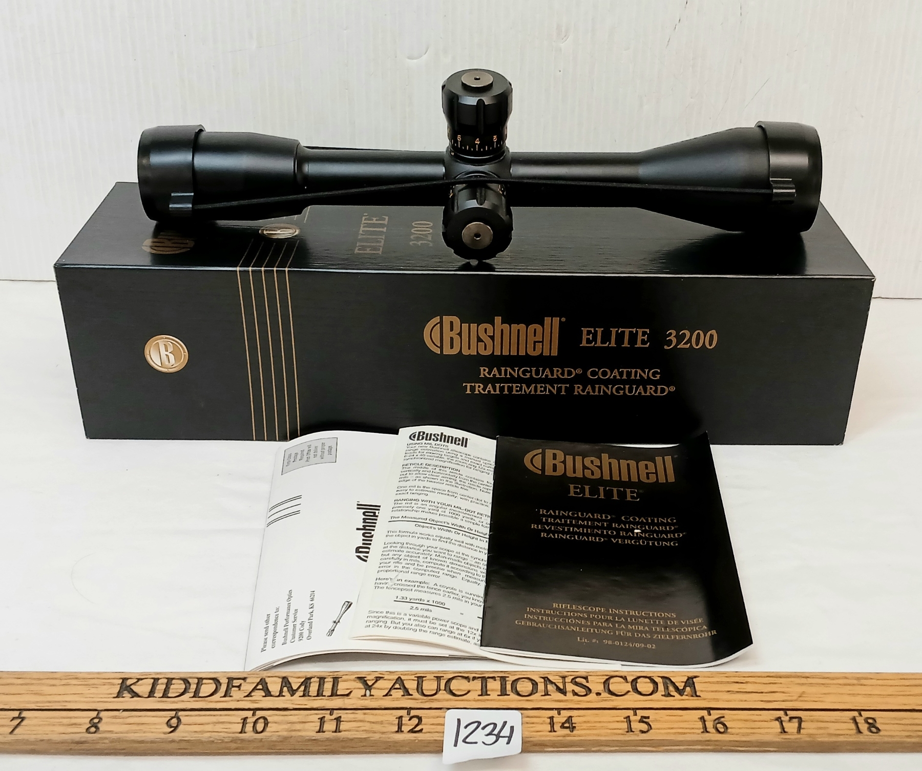 NOTE: CLEAR LENS W/ MIL DOT RETICLE - NO. 32-1040M - MATCHES BOX. WITH QUICK ADJUST TURRETS.