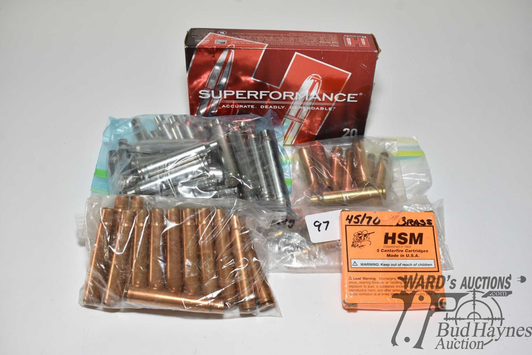 Bag of mixed rifle brass including 41 .300 win mag, 20 .338 win mag and 5 .45-70