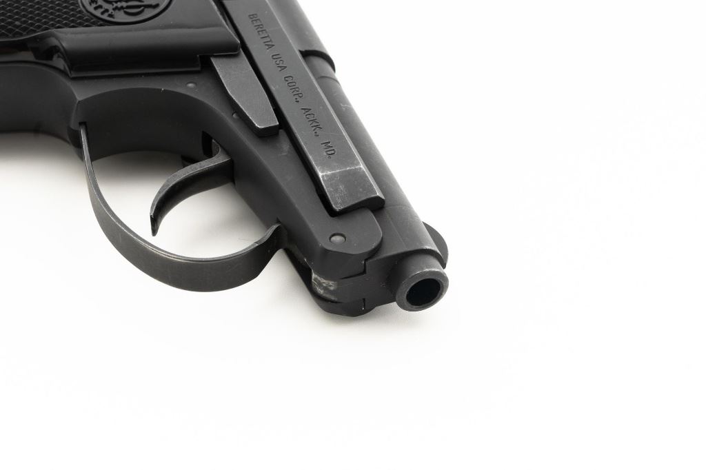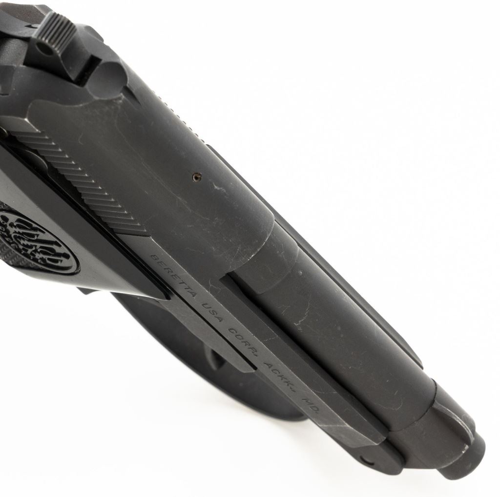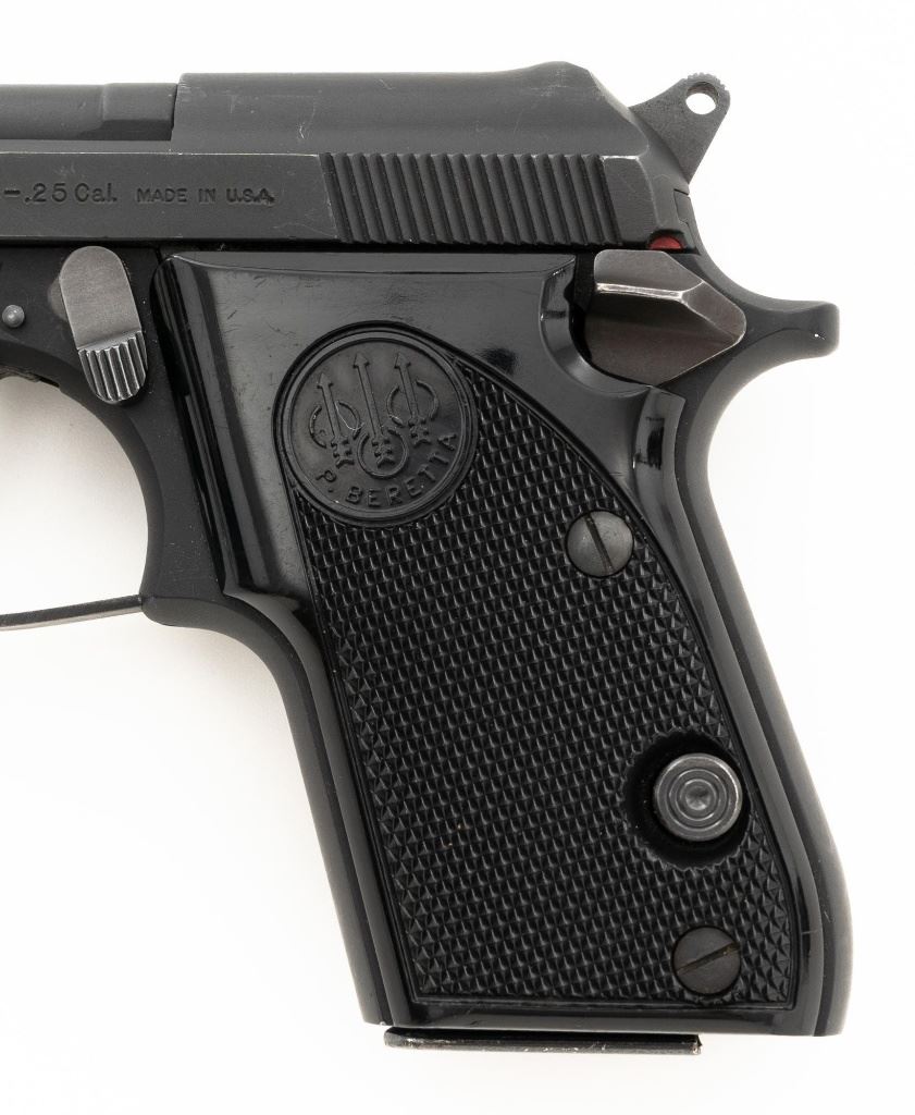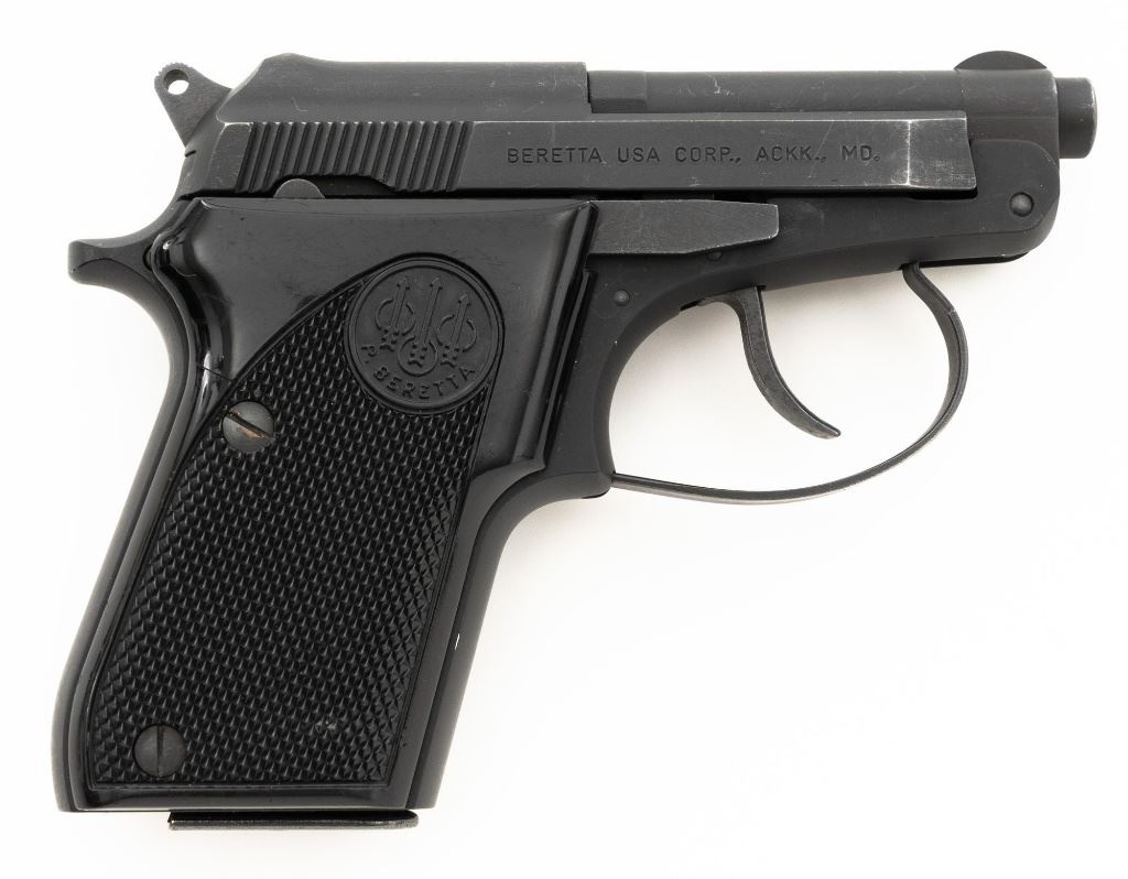 Beretta Model 21A Bobcat Double Action Tip-Up Semi-Automatic Pistol, #BES04937V, .22 LR cal., 2.4" barrel, matte blue finish, checkered plastic Beretta grips, low profile blade front sight, fixed square-notch rear sight, with one 7-round magazine. Pistol is in excellent overall condition, retaining approx. 97%-98% factory blue, with scattered light scratches and handling marks. Factory lettering is crisp. Grips are excellent with sharp checkering. Action functions smoothly. Bore is bright with excellent rifling. Est.: $300-$500. (Modern) (Not available to Calif. residents.)