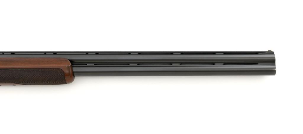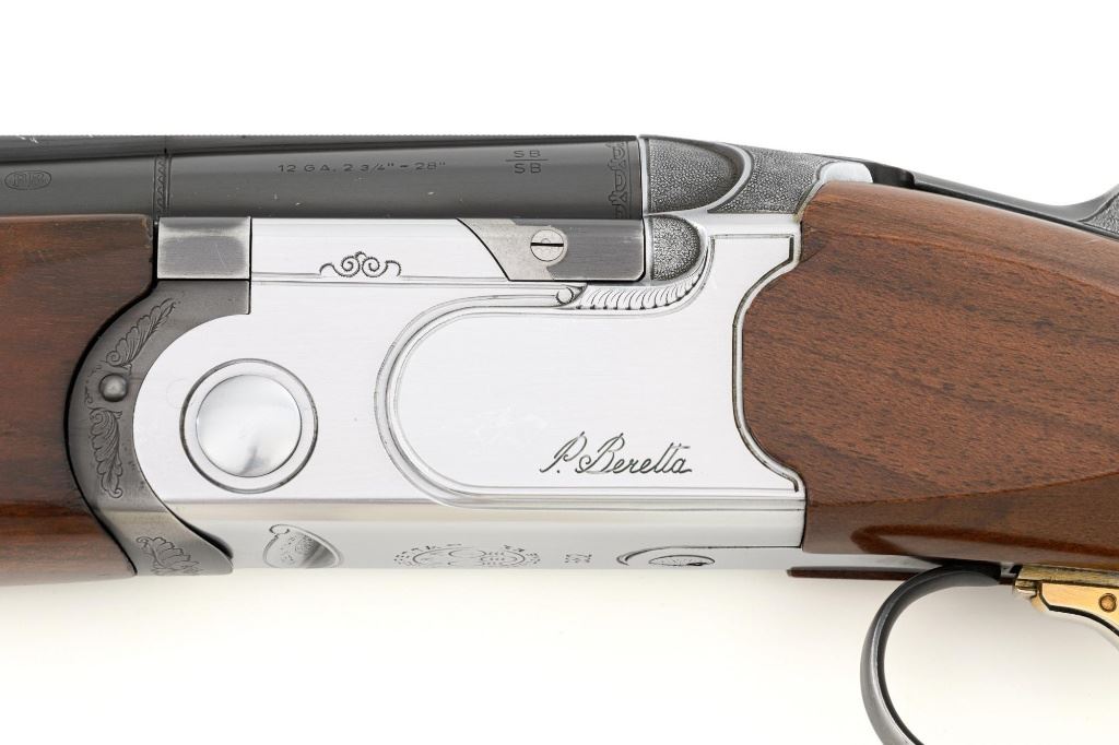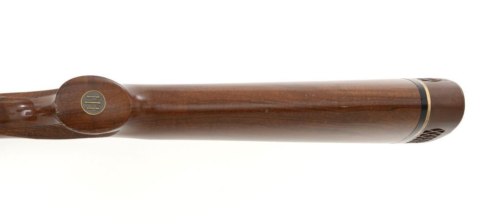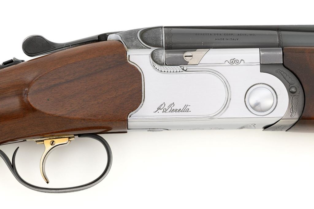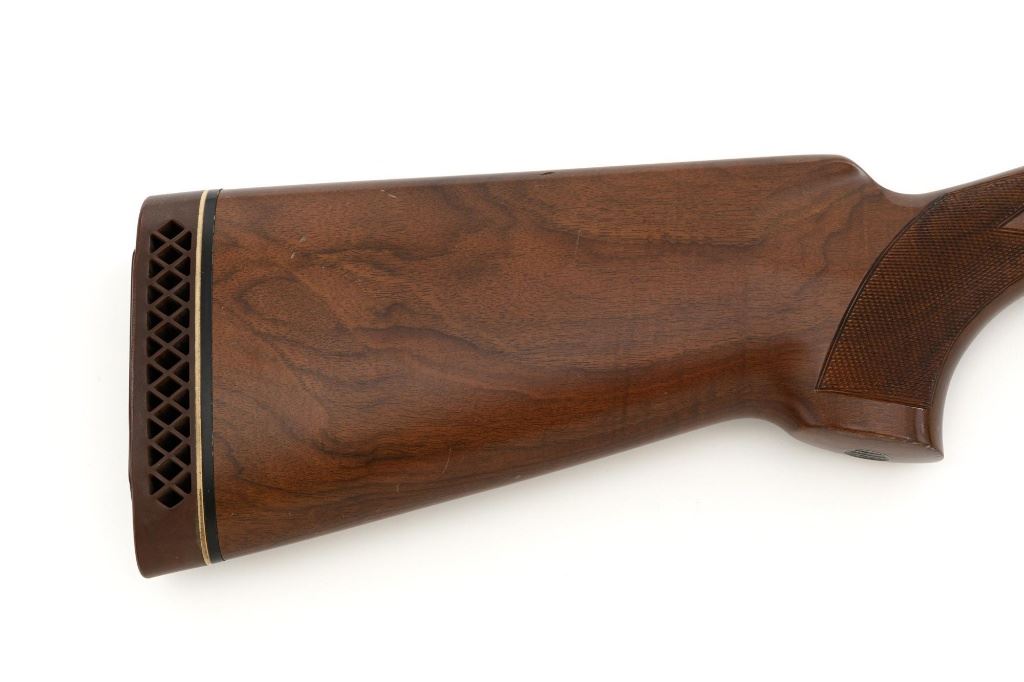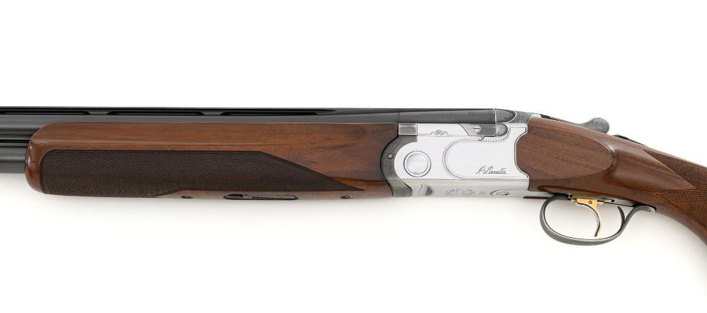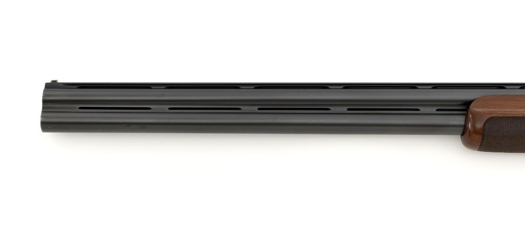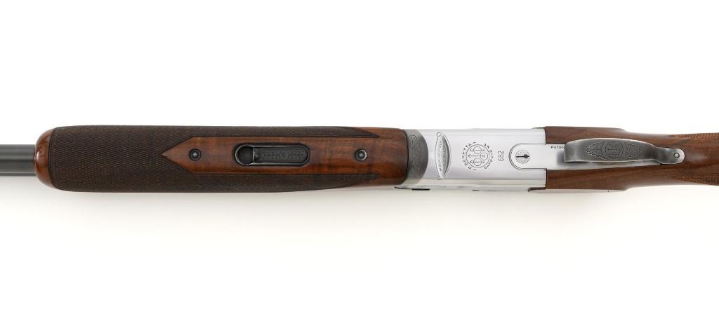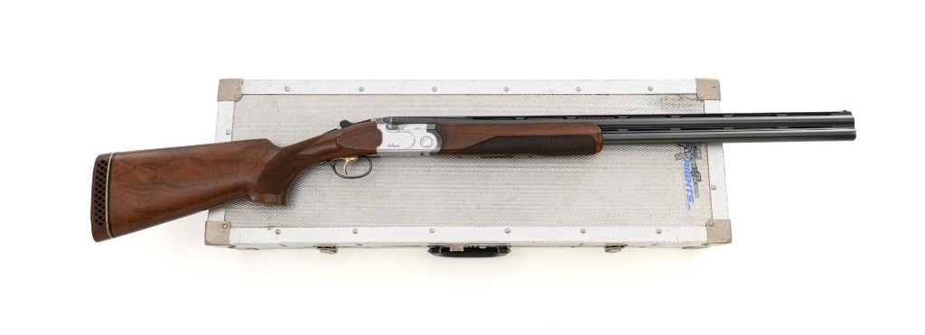 Beretta "Special Skeet" Model 682 Gold Skeet Gun with Three Pairs of Sub-scale Skeet Tubes, #H04632B, 12 ga., 28" vent rib barrels have 2-3/4" chambers with lengthened forcing cones, target beads, and fixed Skeet chokes. The boxlock action uses two horizontal pins for lockup, and features a single selective, adjustable mechanical trigger, non-automatic safety, and selective ejectors. Includes three (3) pairs of Kolar skeet tubes, with tools to aid insertion and removal. Silver coin finished receiver is lightly engraved with Beretta logos, and is very reliable. Full finger groove forend and pistol grip buttstock are satin finished "C" grade walnut, with checkering at 20 LPI, Beretta grip cap, and a Beretta skeet model recoil pad. Stock dimensions are 14-1/2" x 1-1/2" x 2-1/4". Mfgd 1991 in Italy. Gun, tubes, tools, and accessories are all contained in a substantial metal hard case. Condition is very good. Wood has few handling marks, and has good balance despite its weight. Buttstock may be a replacement but it fits nicely on the gun. Action is completely broken in, and closes very tight; bores are bright. Est.: $1,400-$1,600. (Modern)