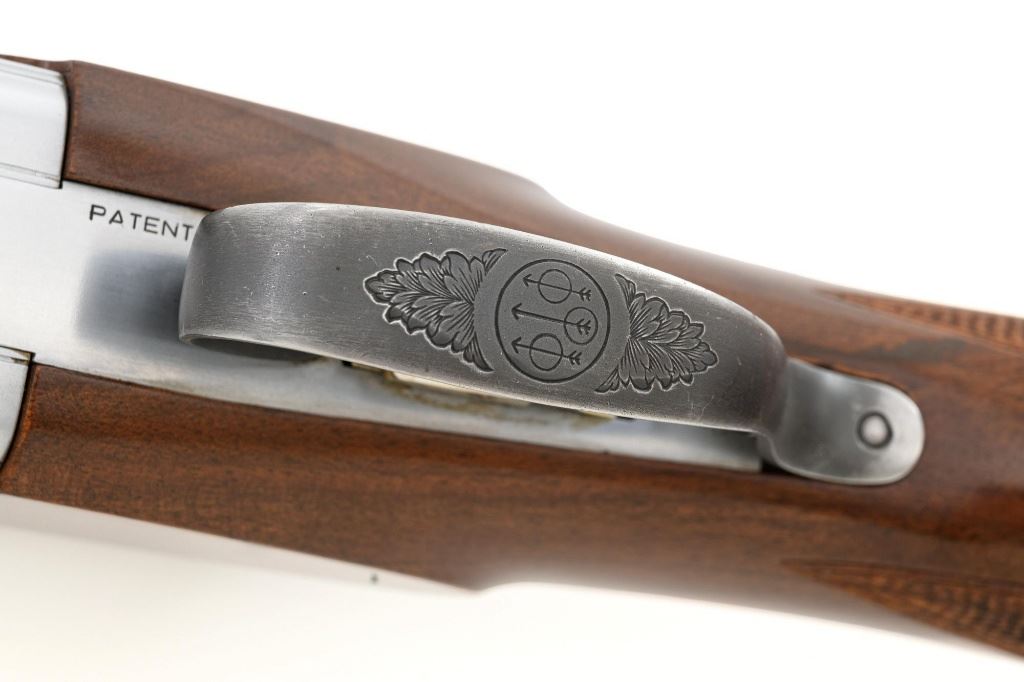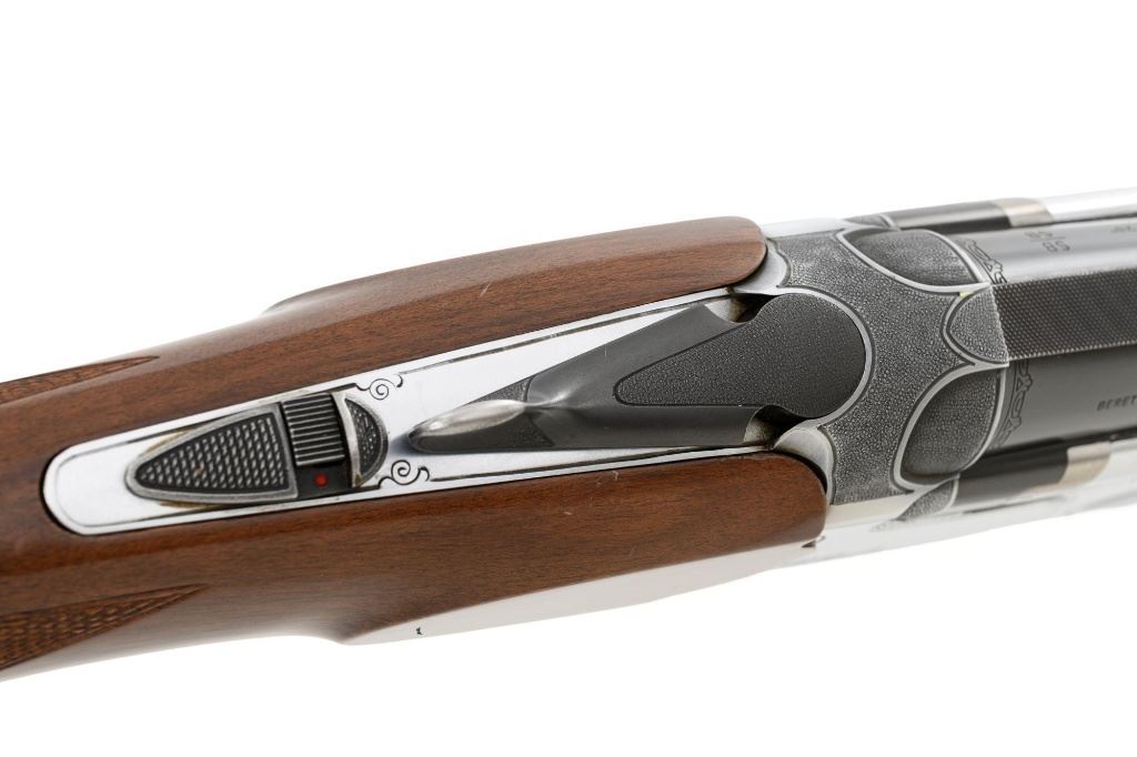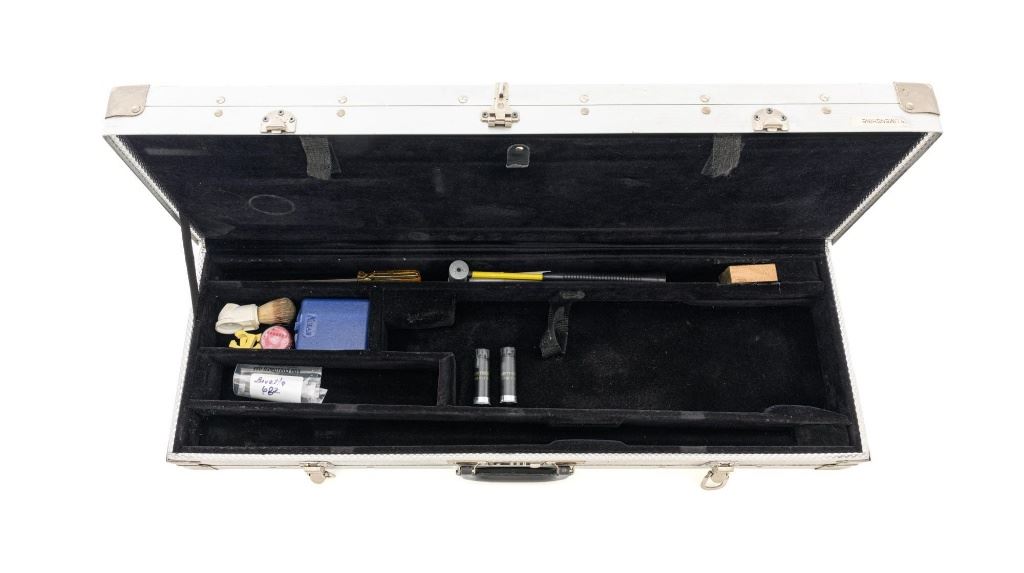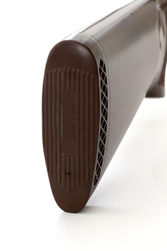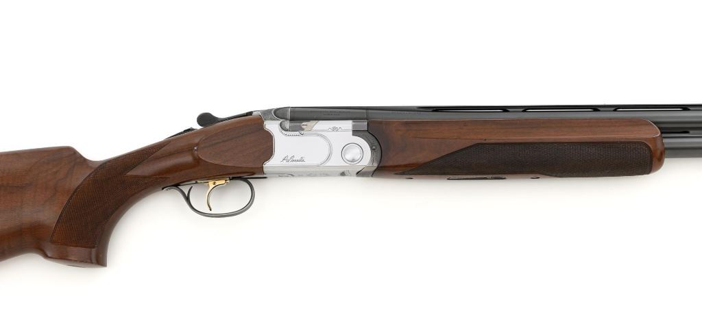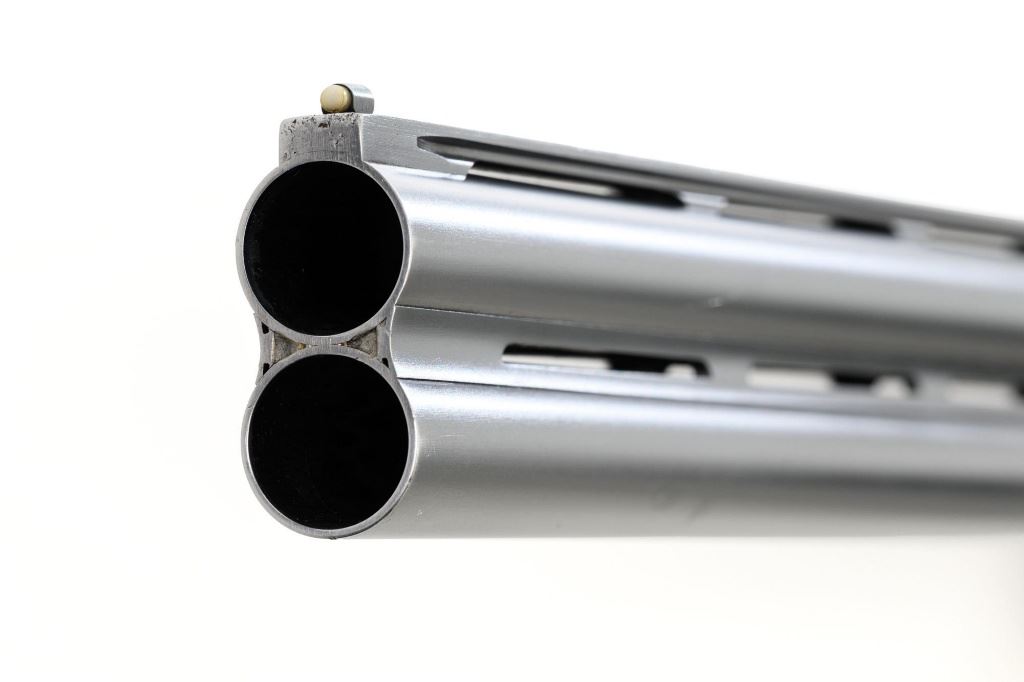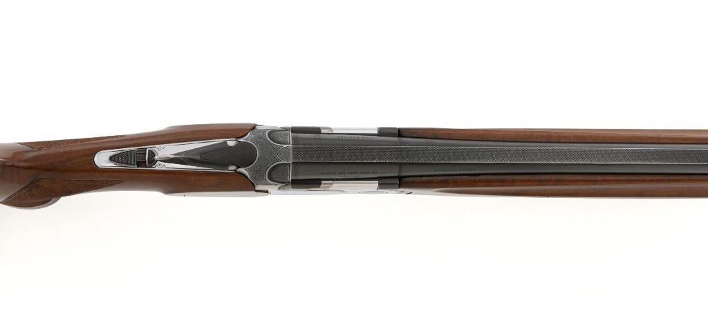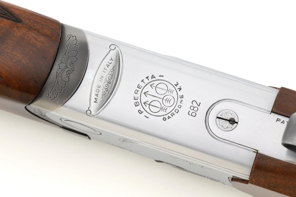 Beretta "Special Skeet" Model 682 Gold Skeet Gun with Three Pairs of Sub-scale Skeet Tubes, #H04632B, 12 ga., 28" vent rib barrels have 2-3/4" chambers with lengthened forcing cones, target beads, and fixed Skeet chokes. The boxlock action uses two horizontal pins for lockup, and features a single selective, adjustable mechanical trigger, non-automatic safety, and selective ejectors. Includes three (3) pairs of Kolar skeet tubes, with tools to aid insertion and removal. Silver coin finished receiver is lightly engraved with Beretta logos, and is very reliable. Full finger groove forend and pistol grip buttstock are satin finished "C" grade walnut, with checkering at 20 LPI, Beretta grip cap, and a Beretta skeet model recoil pad. Stock dimensions are 14-1/2" x 1-1/2" x 2-1/4". Mfgd 1991 in Italy. Gun, tubes, tools, and accessories are all contained in a substantial metal hard case. Condition is very good. Wood has few handling marks, and has good balance despite its weight. Buttstock may be a replacement but it fits nicely on the gun. Action is completely broken in, and closes very tight; bores are bright. Est.: $1,400-$1,600. (Modern)
