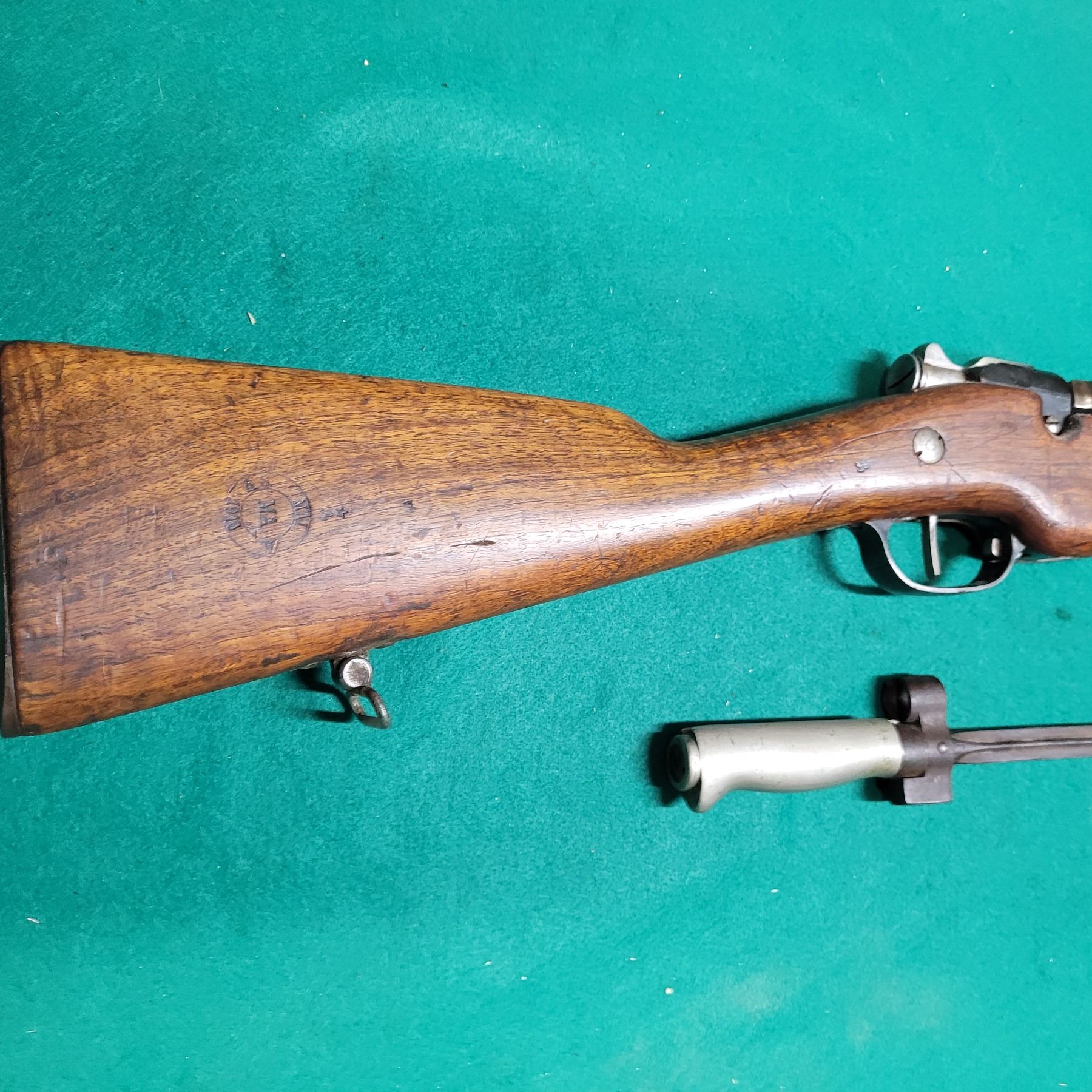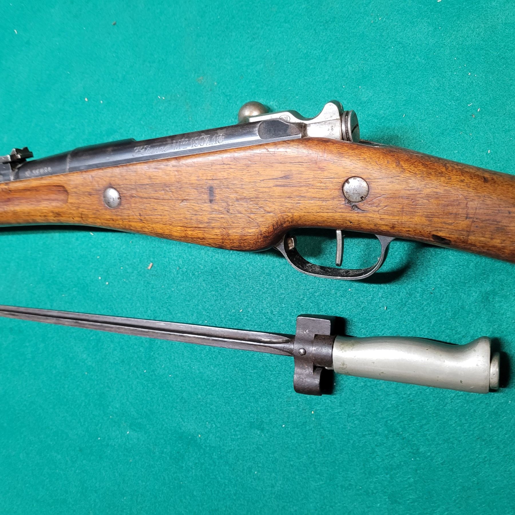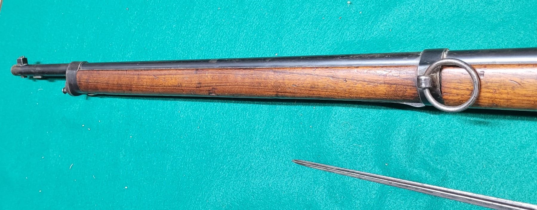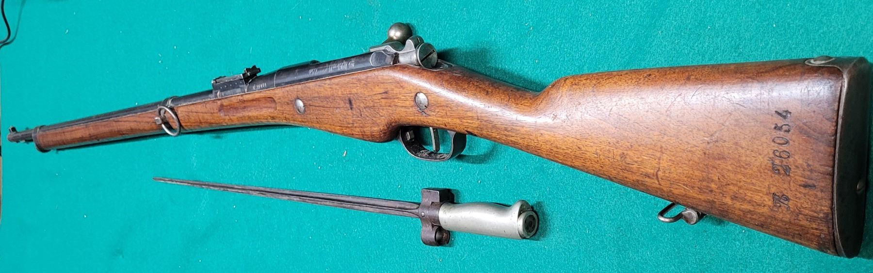 The Carbine was chambered in the 8mm Lebel and used by the French Army from 1890"s to WWII. The barrel is 18" Long.