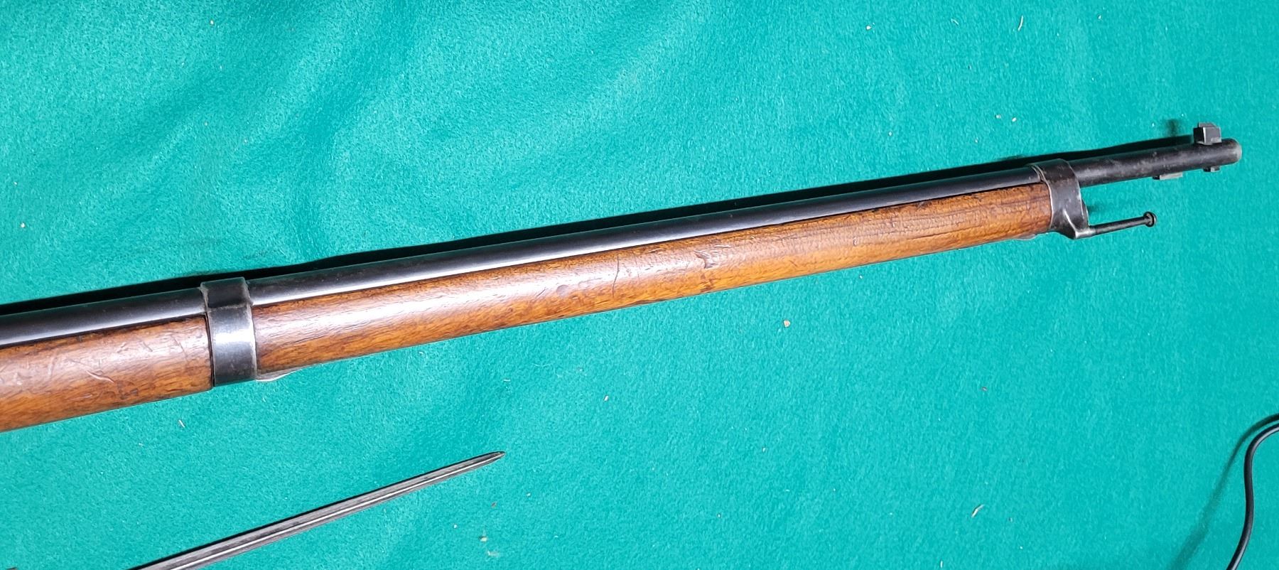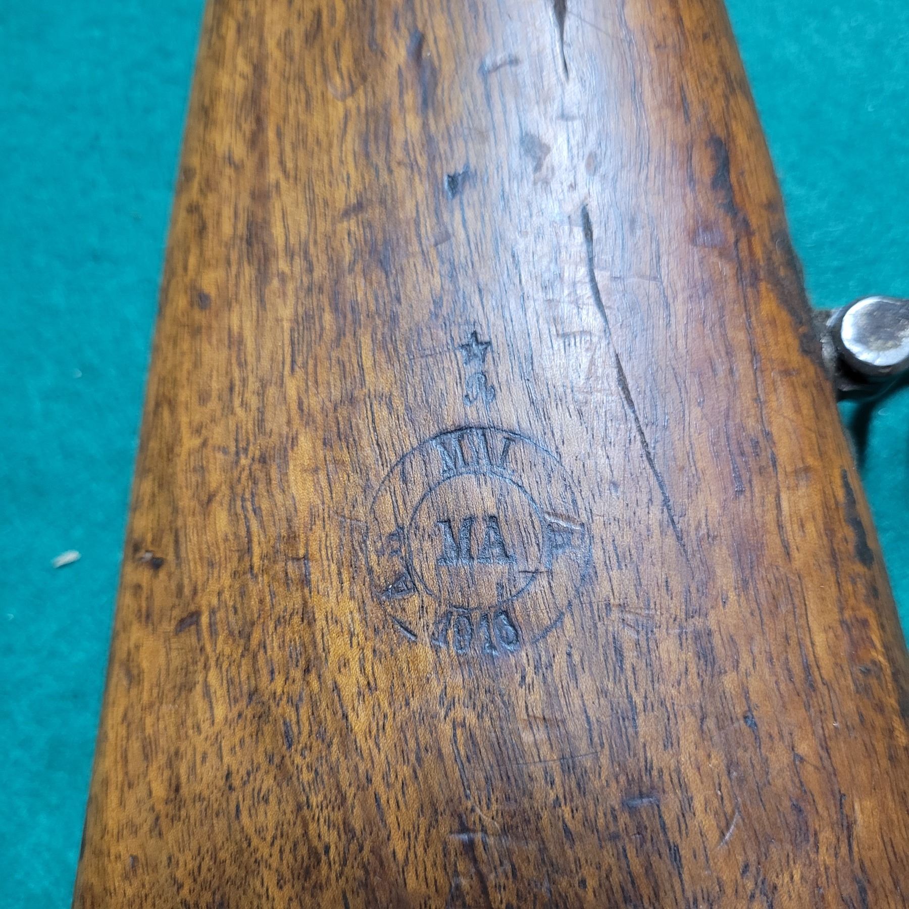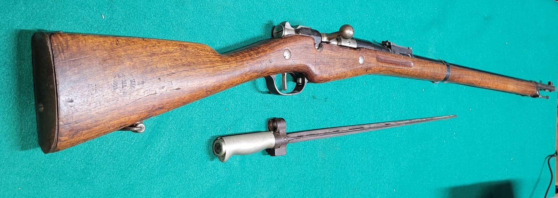 The Carbine was chambered in the 8mm Lebel and used by the French Army from 1890"s to WWII. The barrel is 18" Long.
