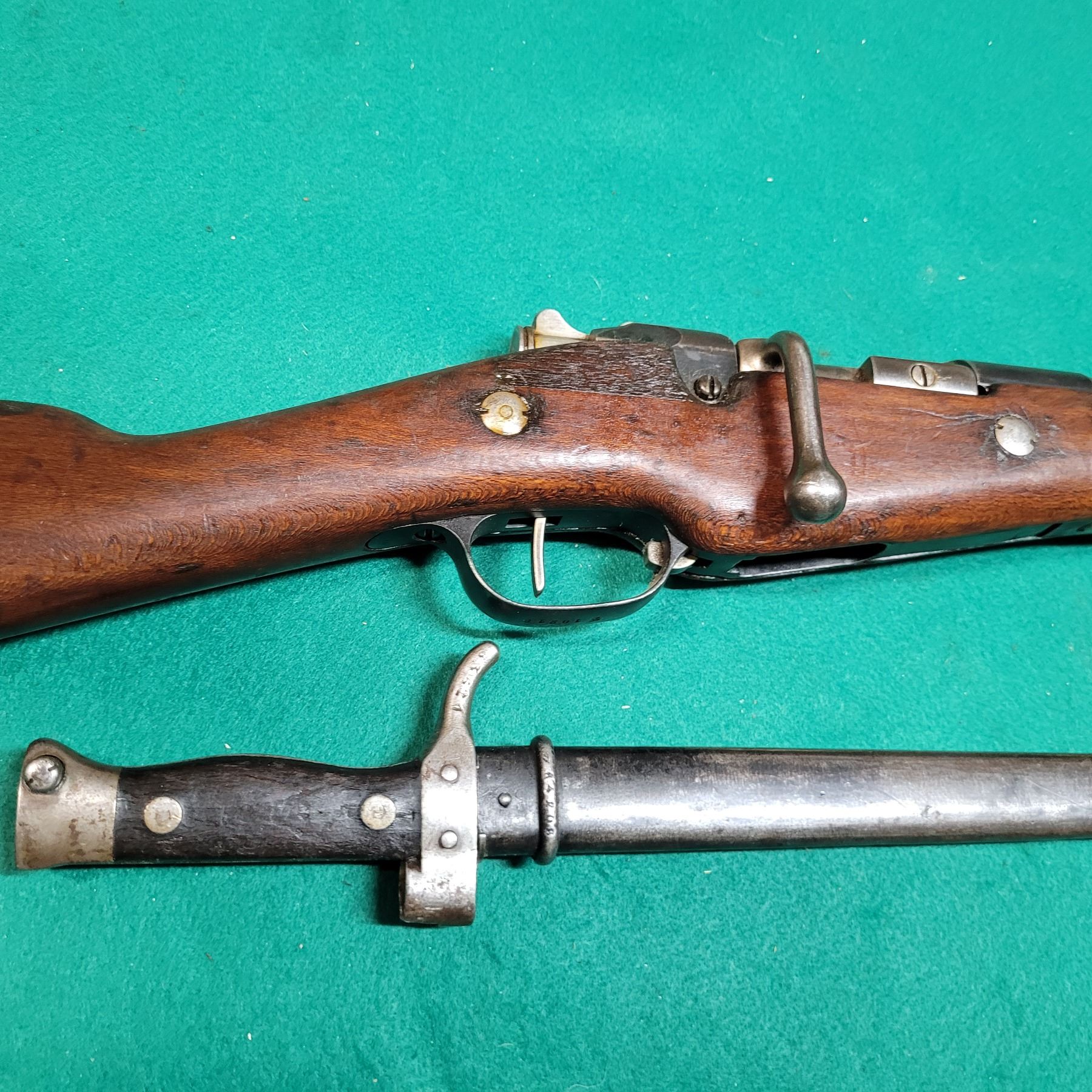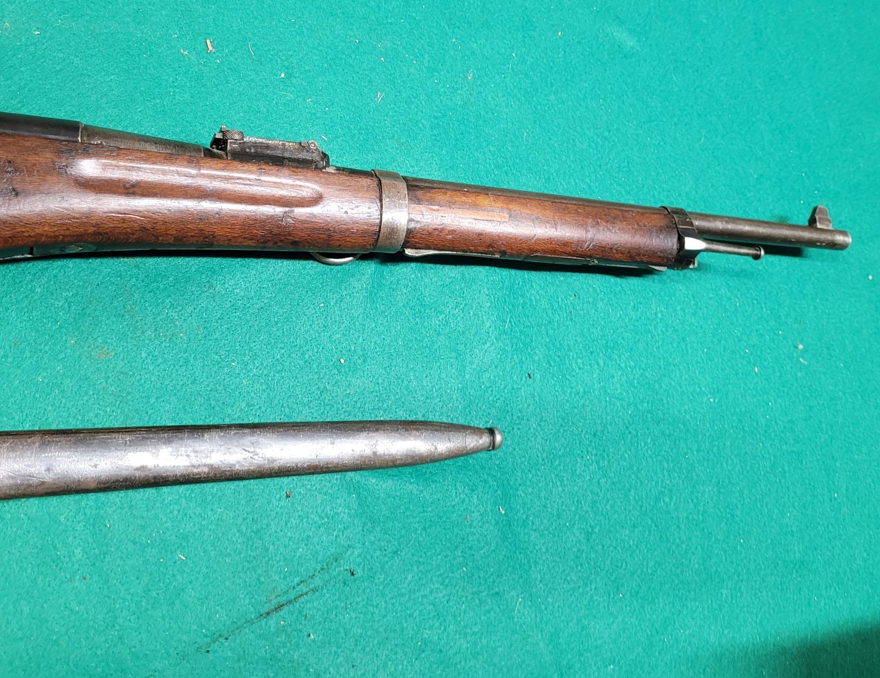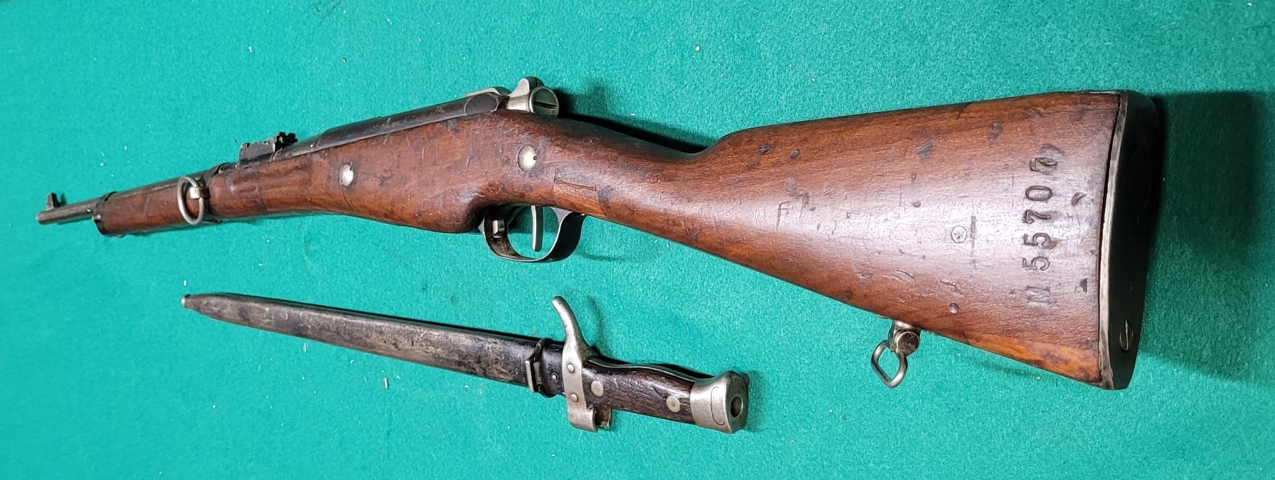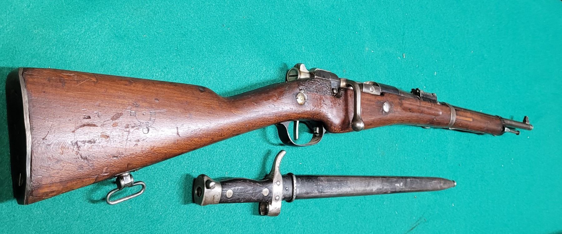 The Carbine was chambered in the 8mm Lebel and used by the French Army from 1890"s to WWII. The barrel is 18" Long.