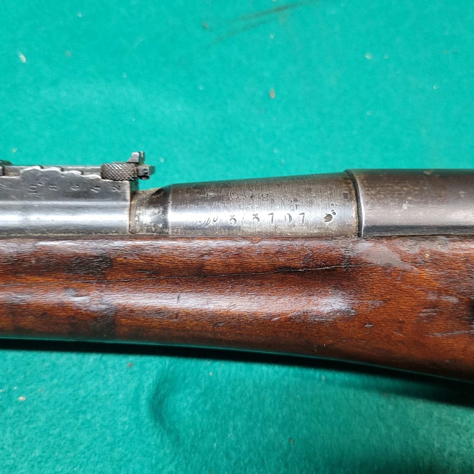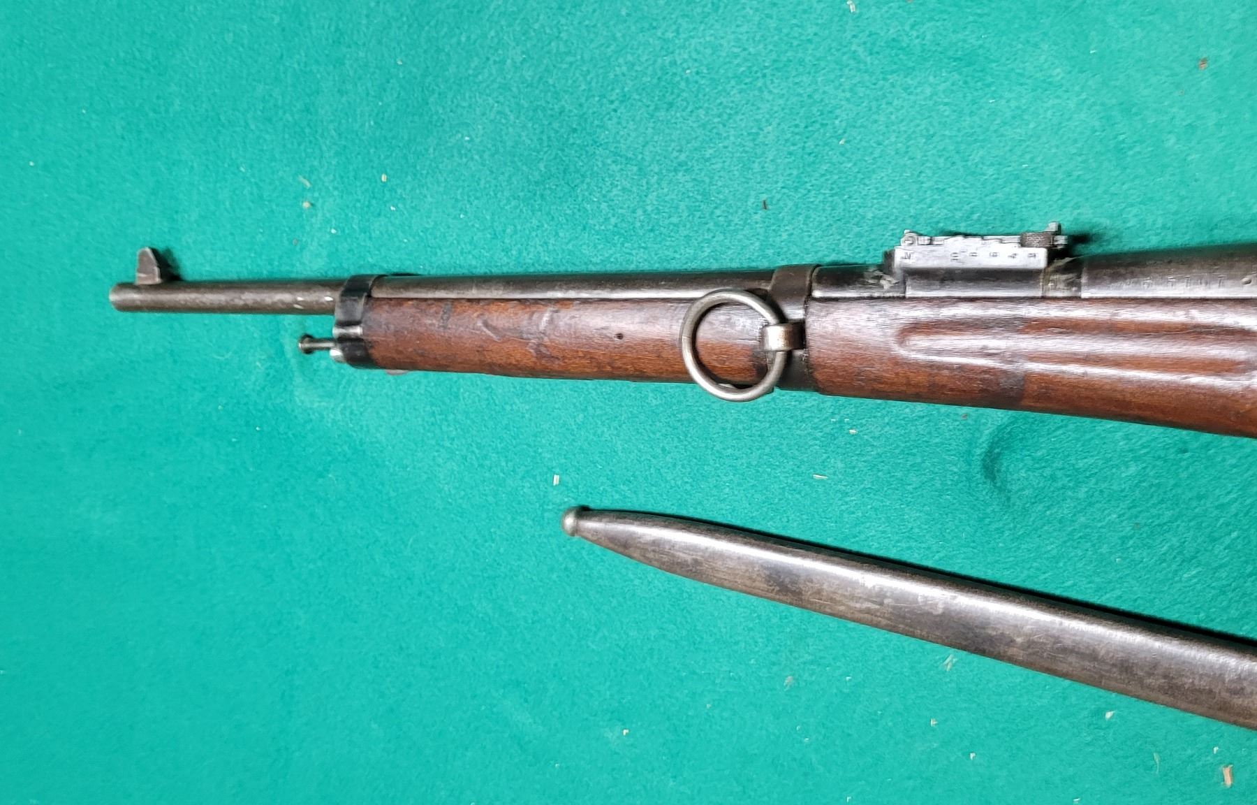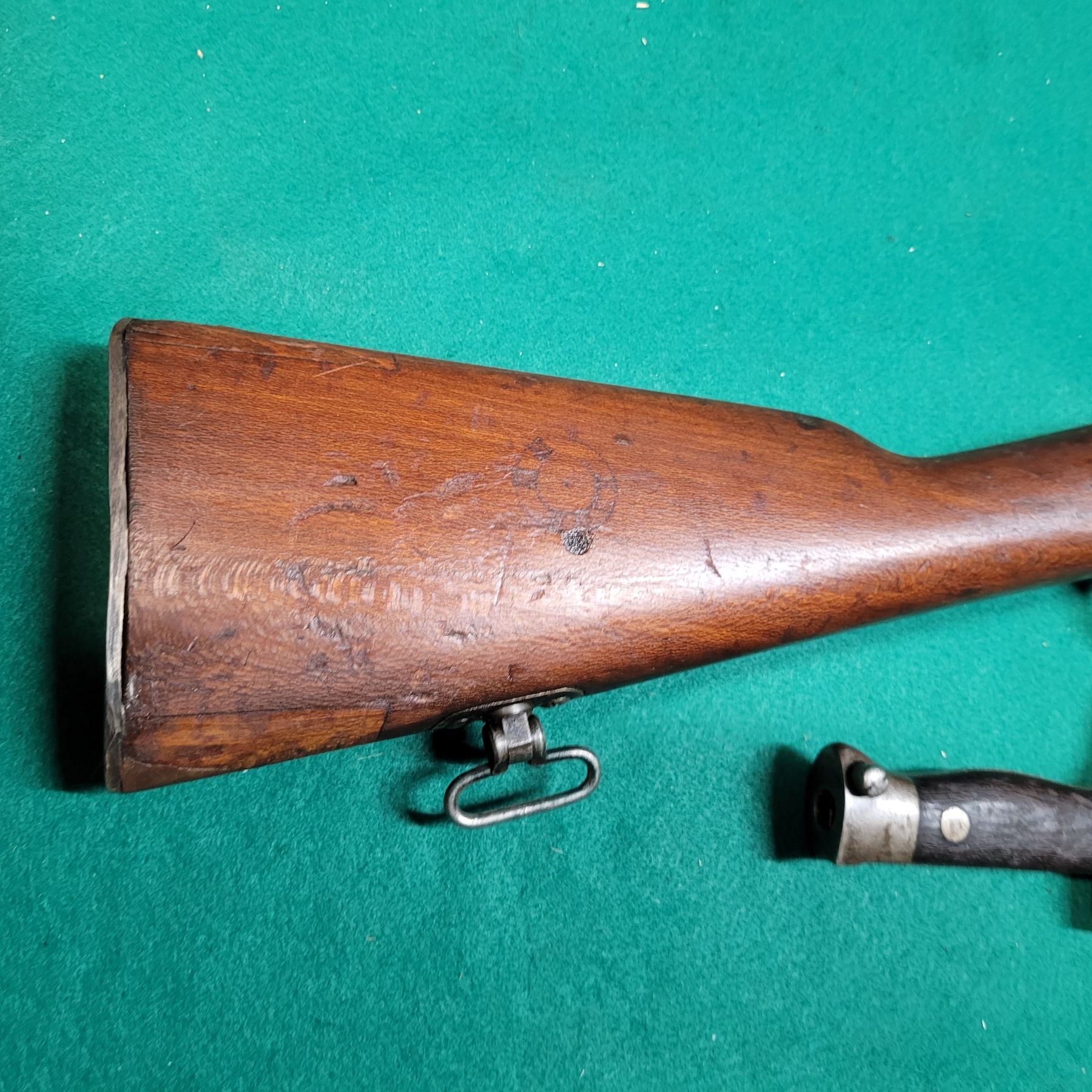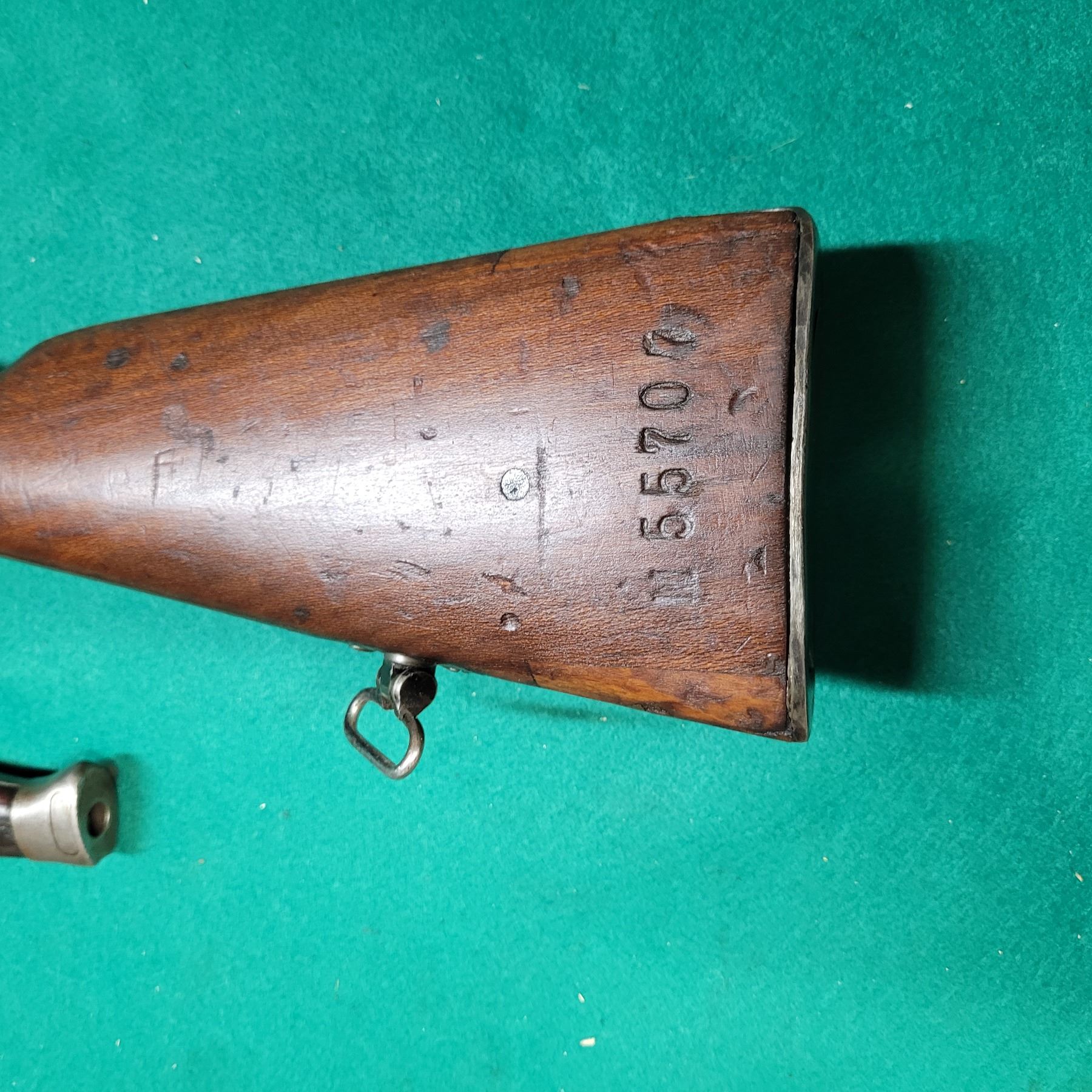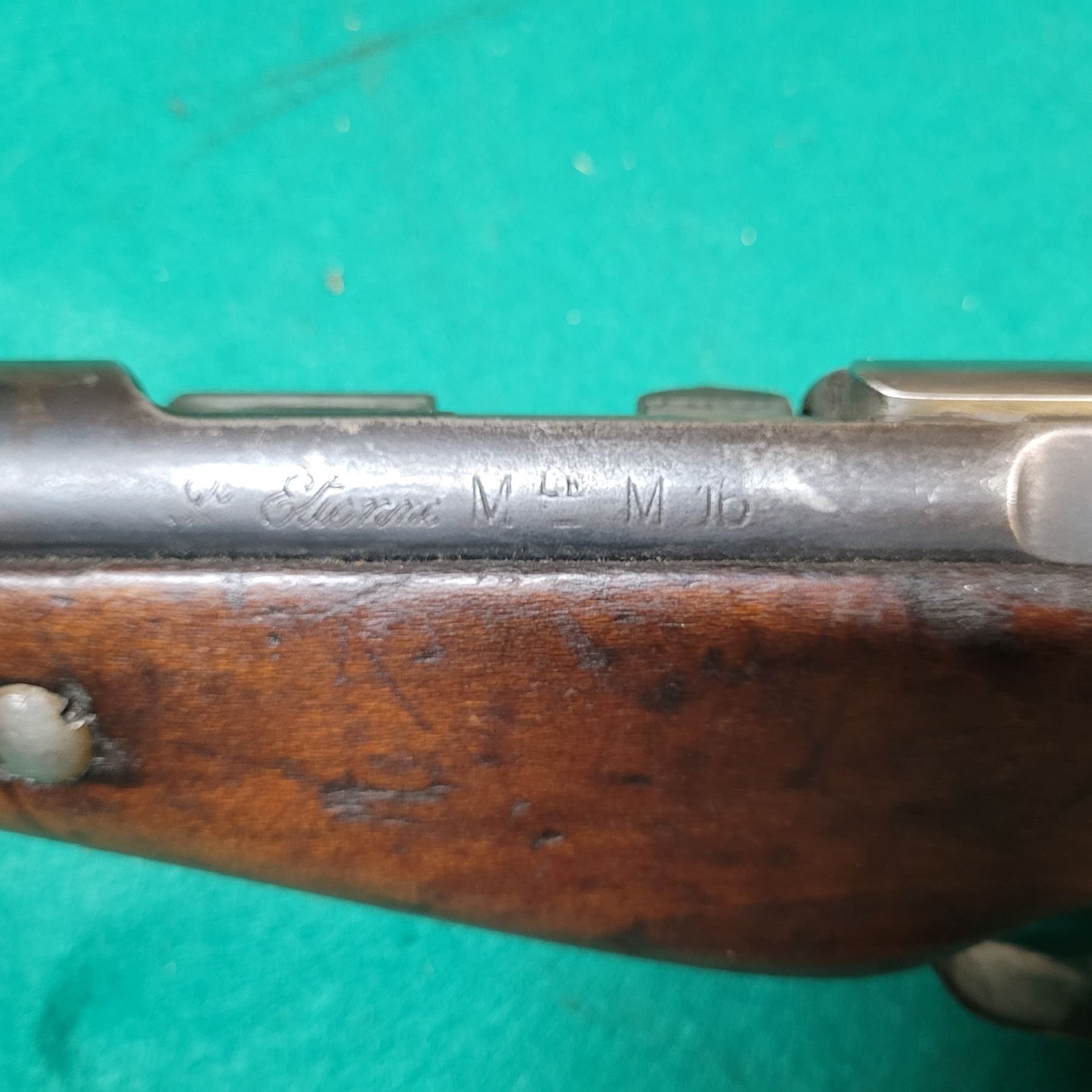 The Carbine was chambered in the 8mm Lebel and used by the French Army from 1890"s to WWII. The barrel is 18" Long.