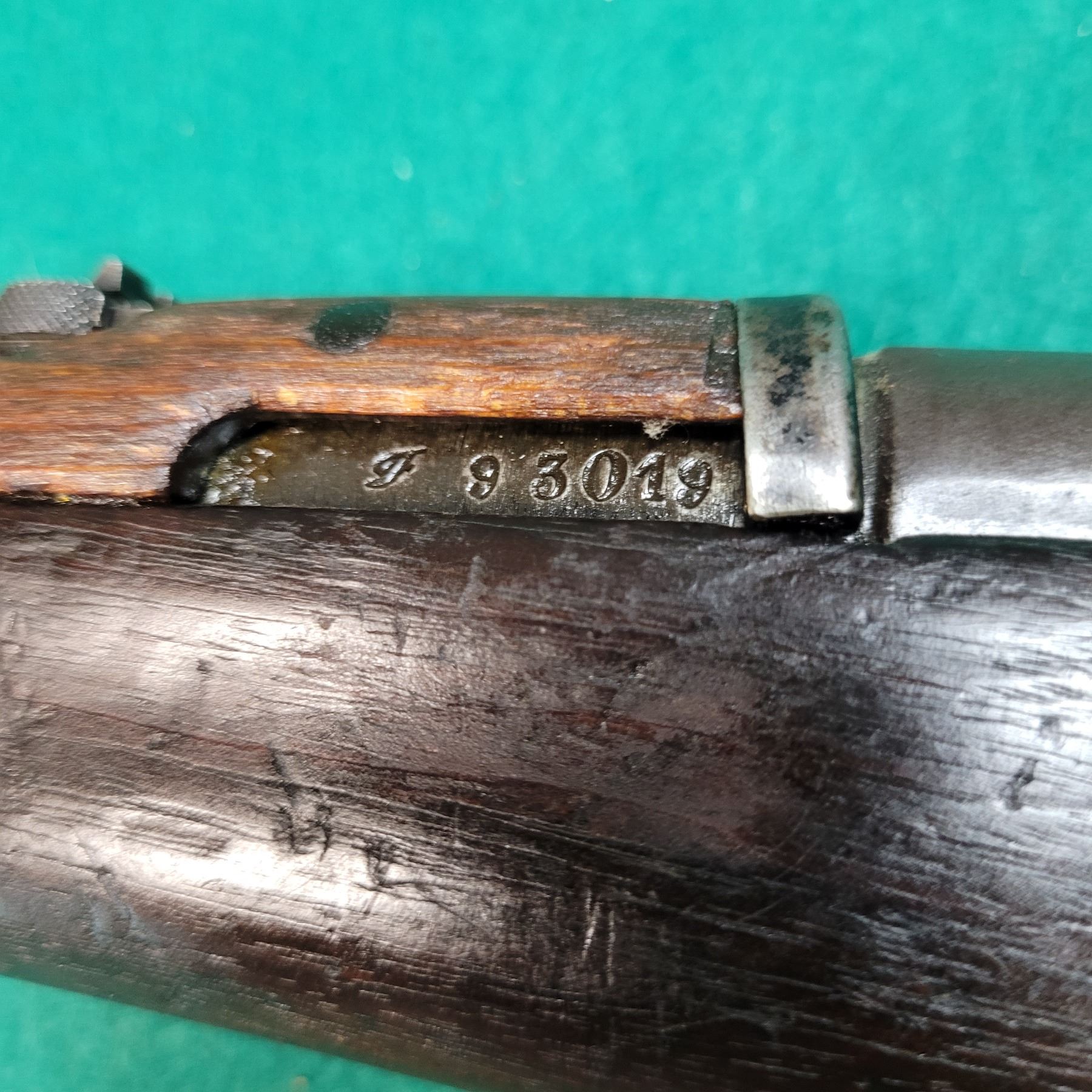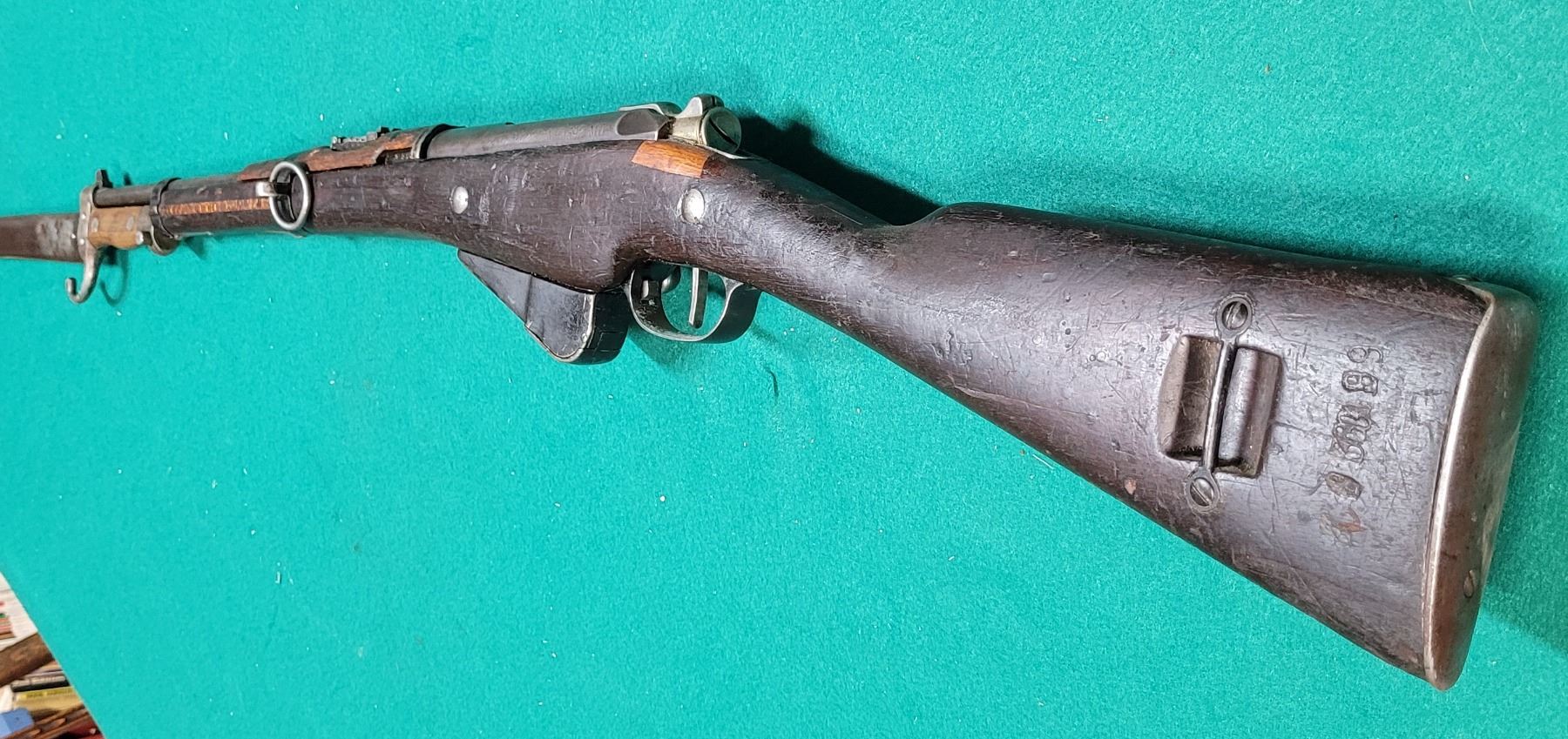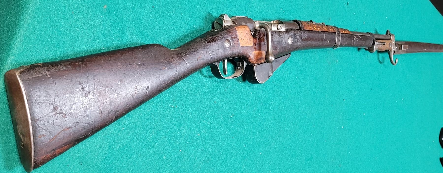 The Carbine was chambered in the 8mm Lebel and used by the French Army from 1890"s to WWII. The barrel is 18" Long.