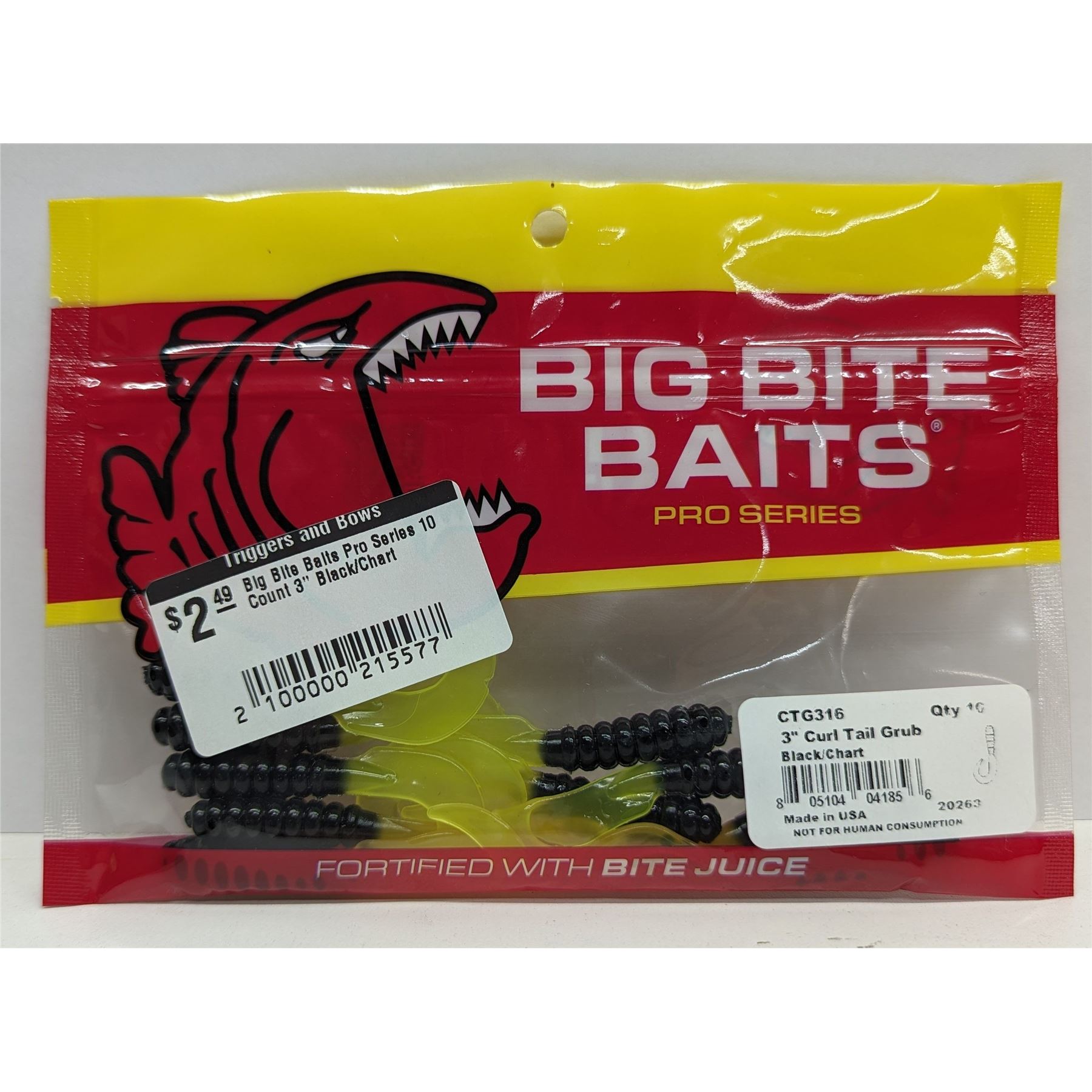 Big Bite Baits Pro Series Curl Tail Grub 10 Count 3" Black/Chart Sku CTG316This Lot is for One Brand new, sealed Unit. UPC : 805104041856