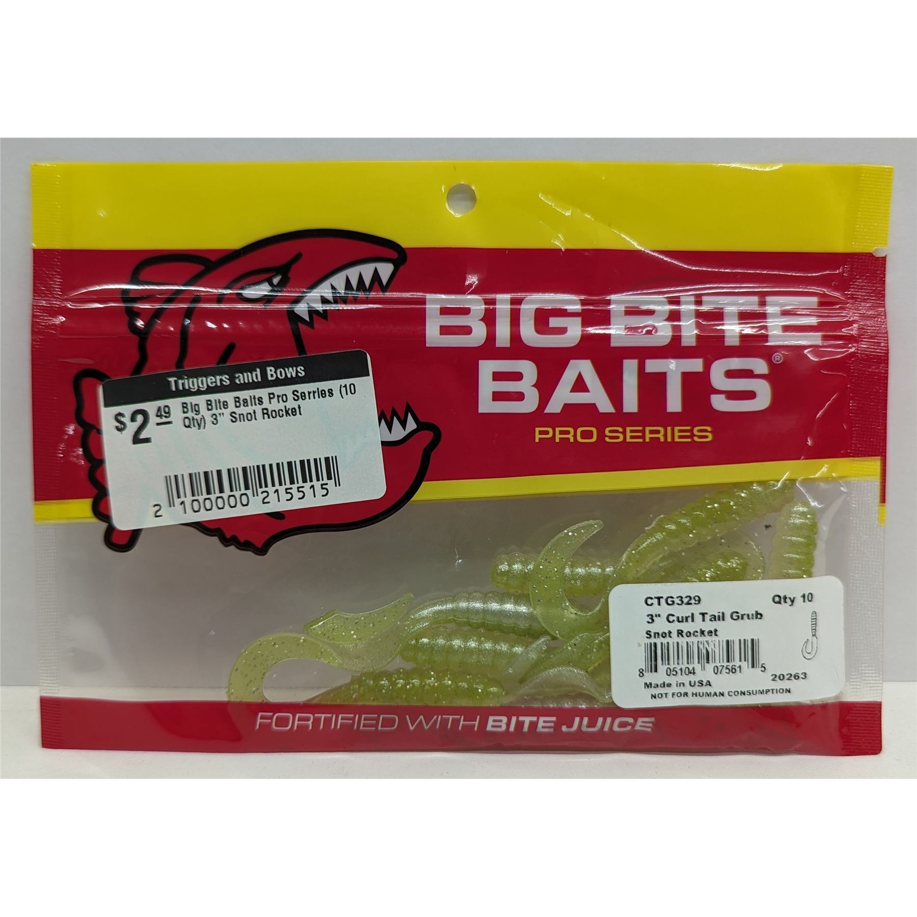 Big Bite Baits Pro Series Curl Tail Grub 10 Count 3" Snot Rocket Sku CTG329This Lot is for One Brand new, sealed Unit. UPC : 805104075615