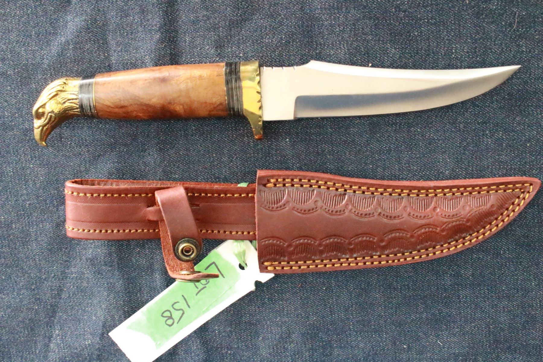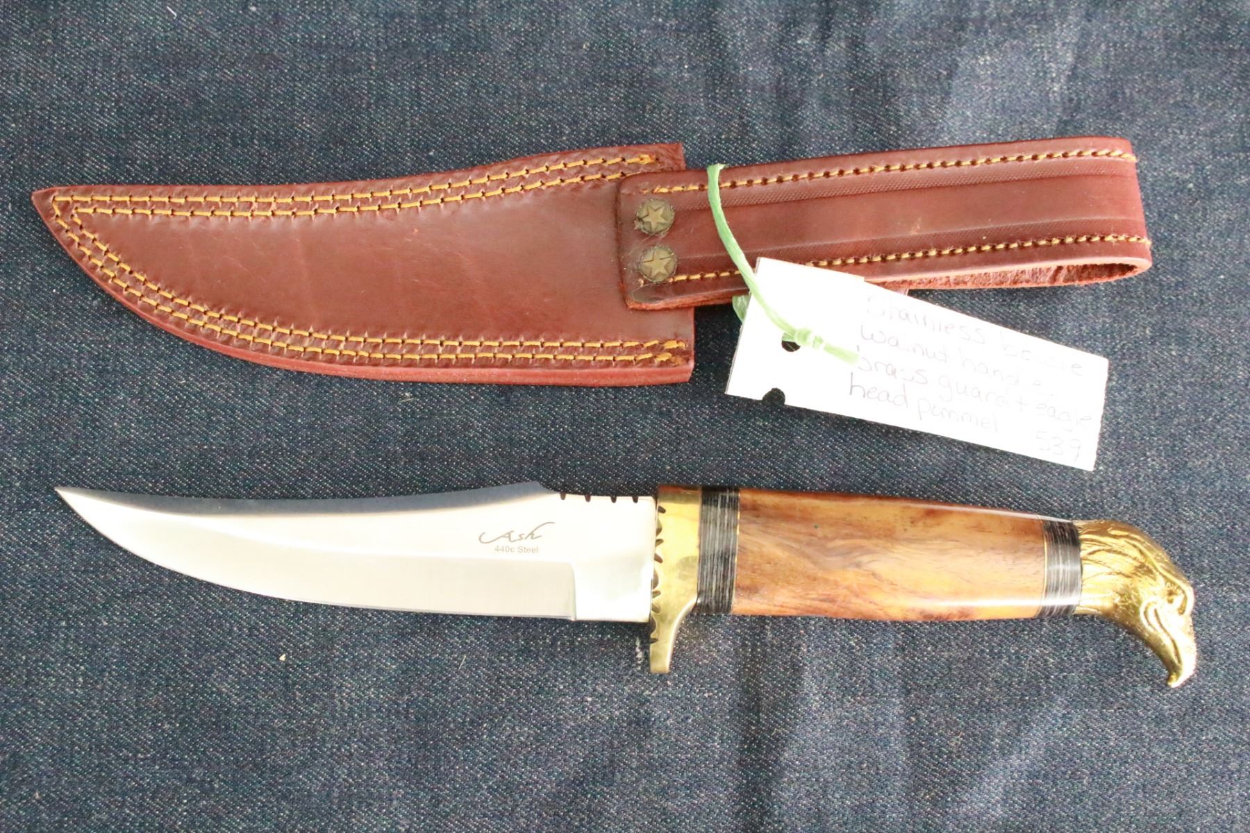6" - 440 Stainless Blade; Walnut & Brass Guard & Eagle Pommel Handle; with Sheath