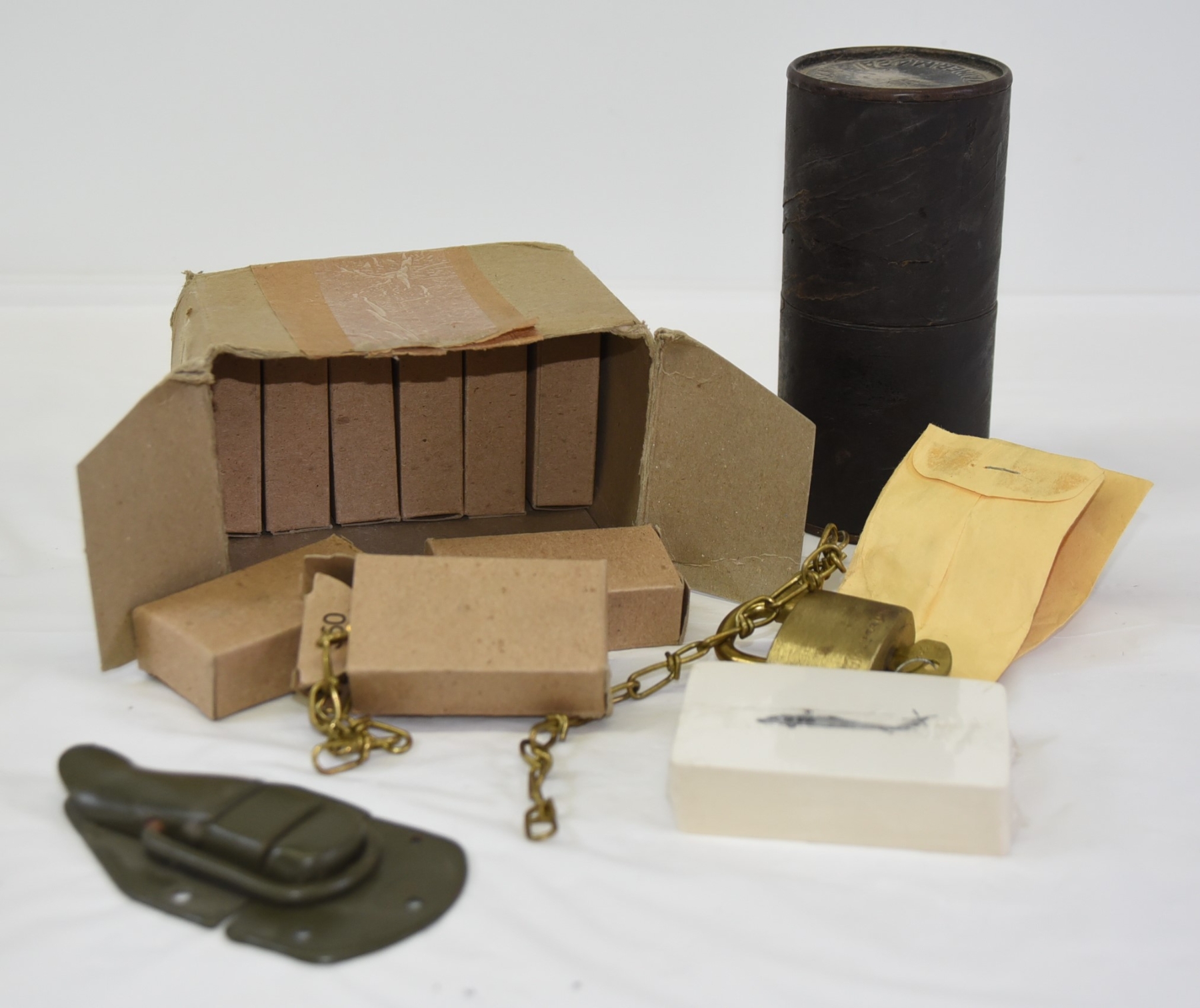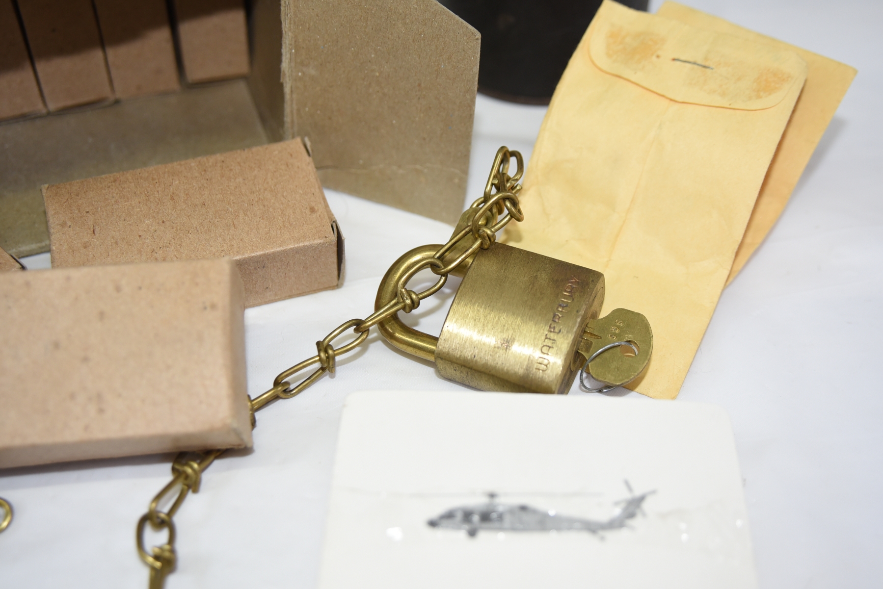 10 vintage brass military padlocks with chain