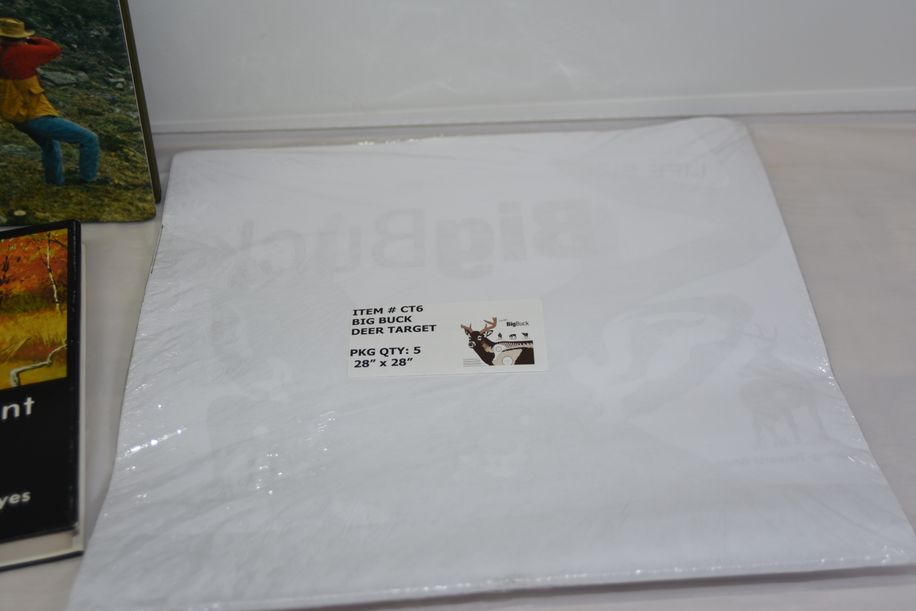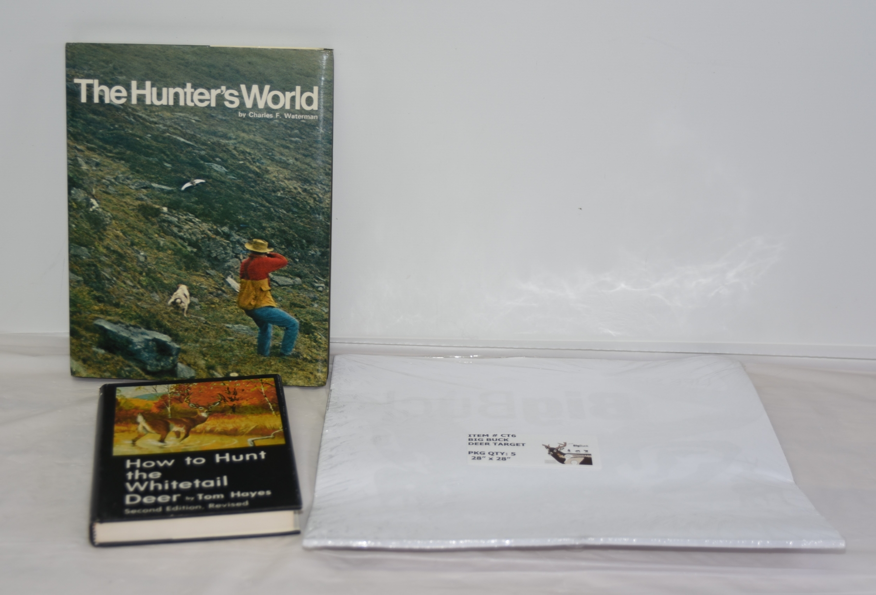 5- Big Buck Deer Targets 28"x28", 1- How to Hunt White Tail Deer H.C. Book, 1- The Hunters World H.C. Book